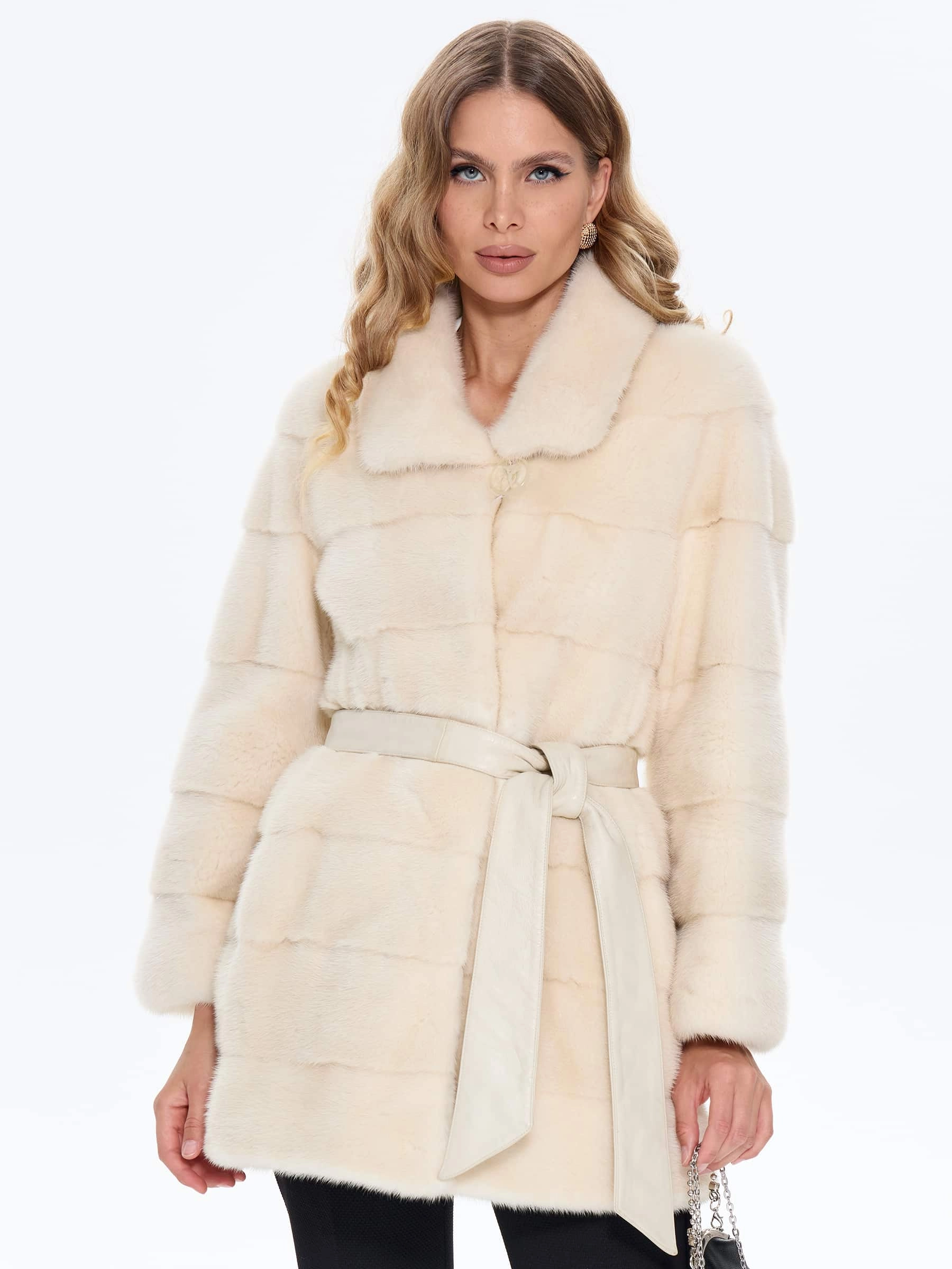 Белая женская норковая шуба MANAKAS 2478, размер 42, артикул 34280