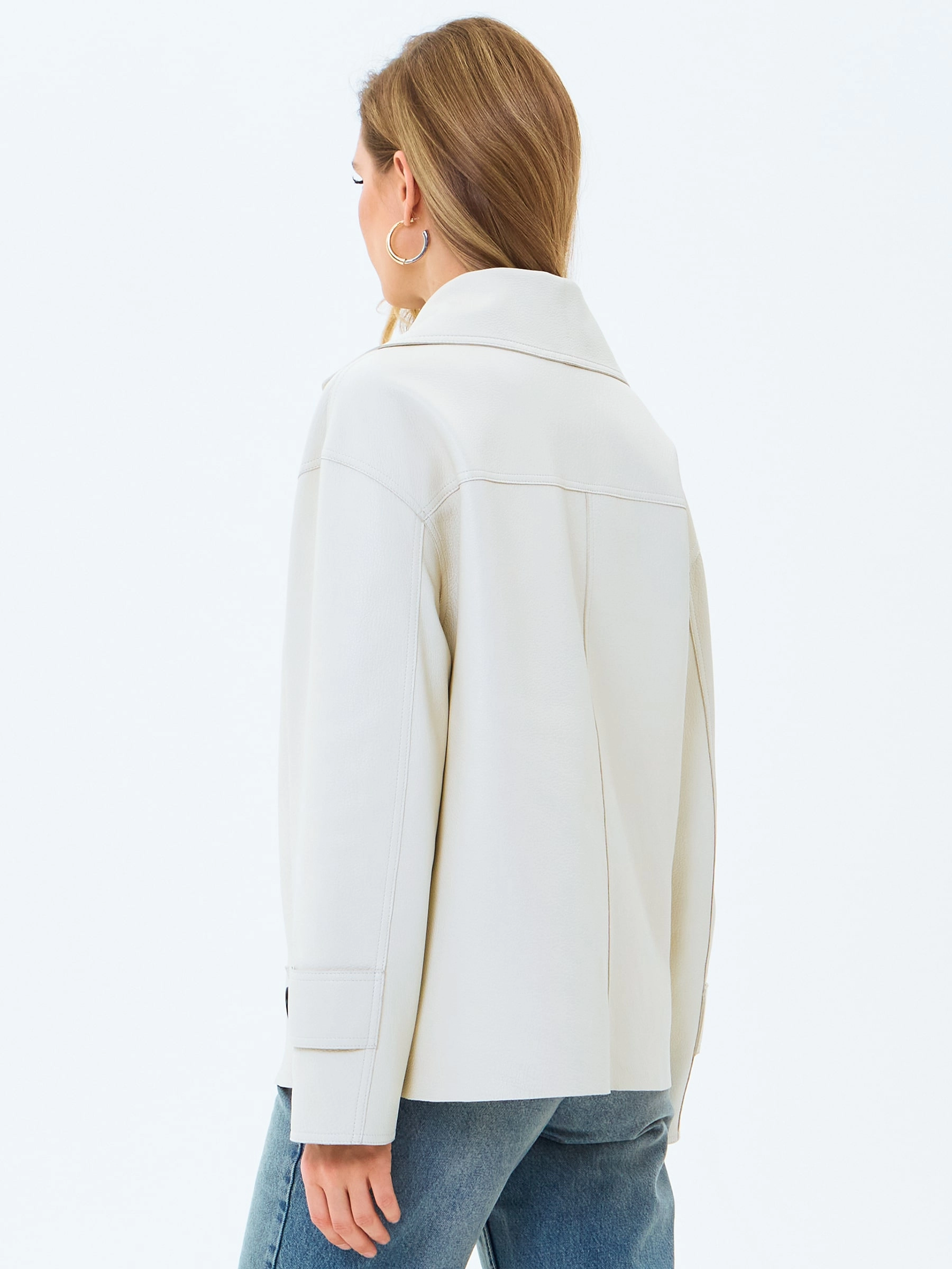 Белый кожаный женский пиджак премиум класса 3097, размер 44, артикул 24720