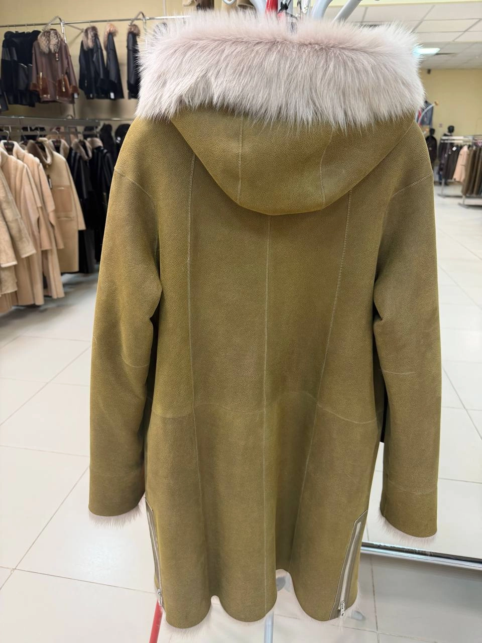 Товар бежевая женская дубленка с капюшоном из тосканы 2067, размер 46, артикул 92320 выполнен из овчина "тоскана" с застежкой молния. Рассчитан на сезон: зима. Длина изделия 95 см, силуэт полуприлегающий.