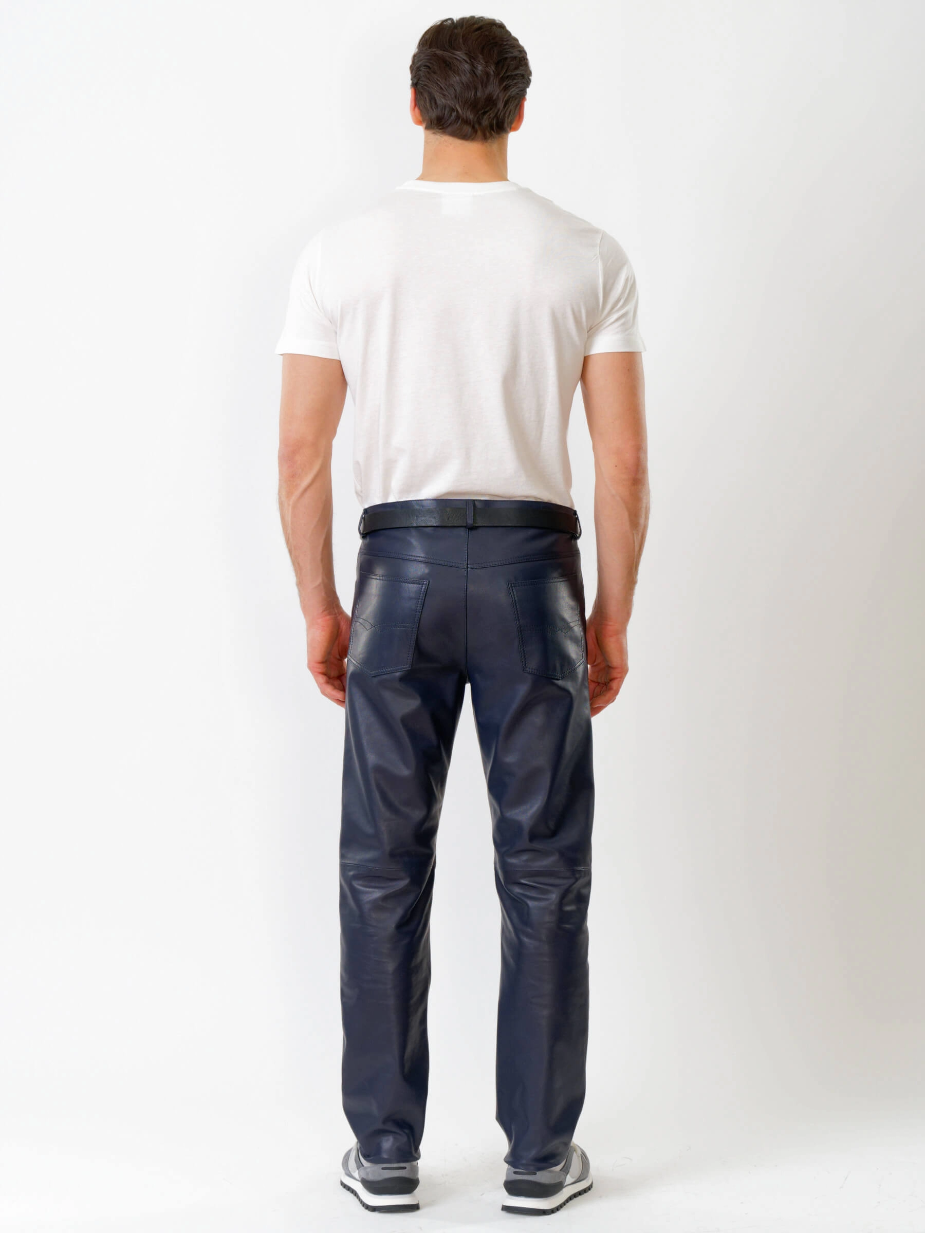 Мужские брюки из натуральной кожи премиум класса 01, синие, размер 48, артикул 120010