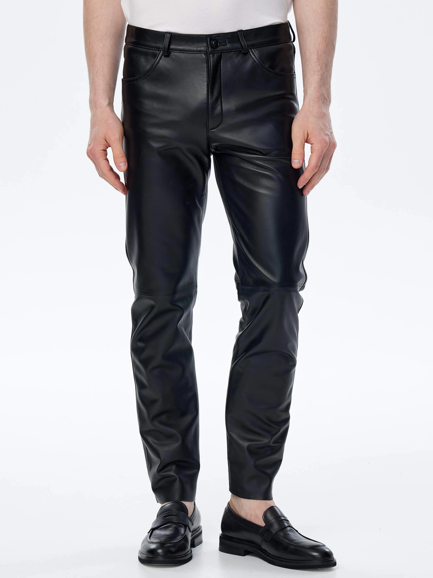 Мужские брюки из натуральной кожи премиум класса 01, черные, размер 48, артикул 120020