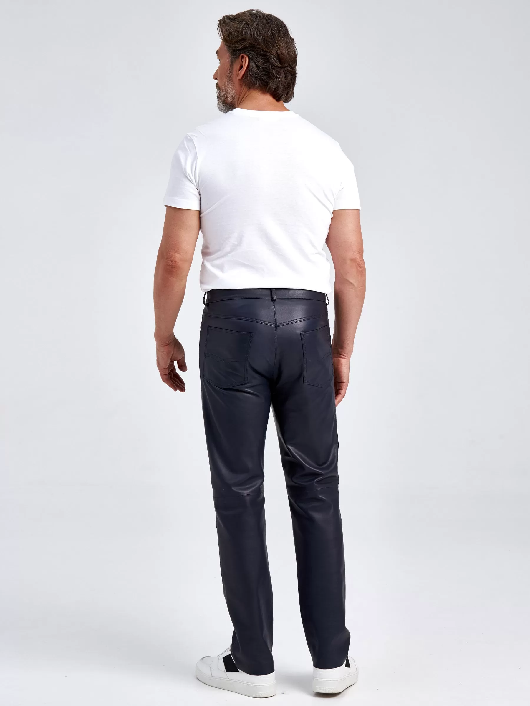 Мужские брюки из натуральной кожи премиум класса 01, синие, размер 48, артикул 120021