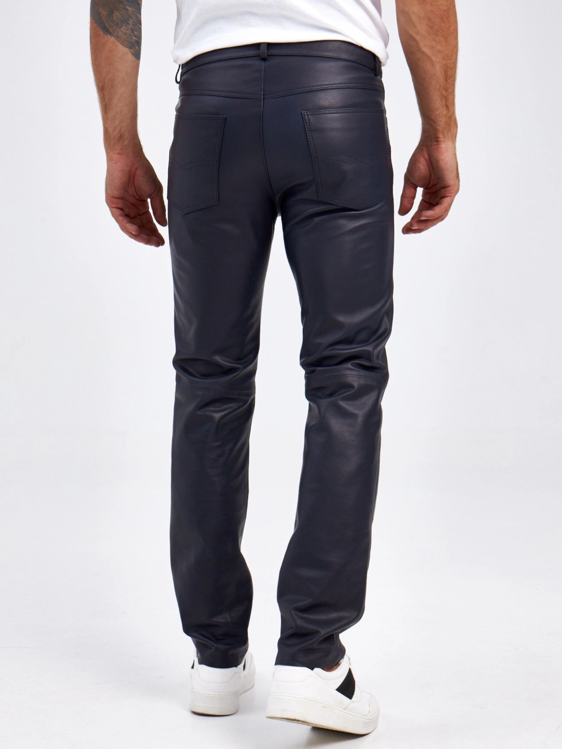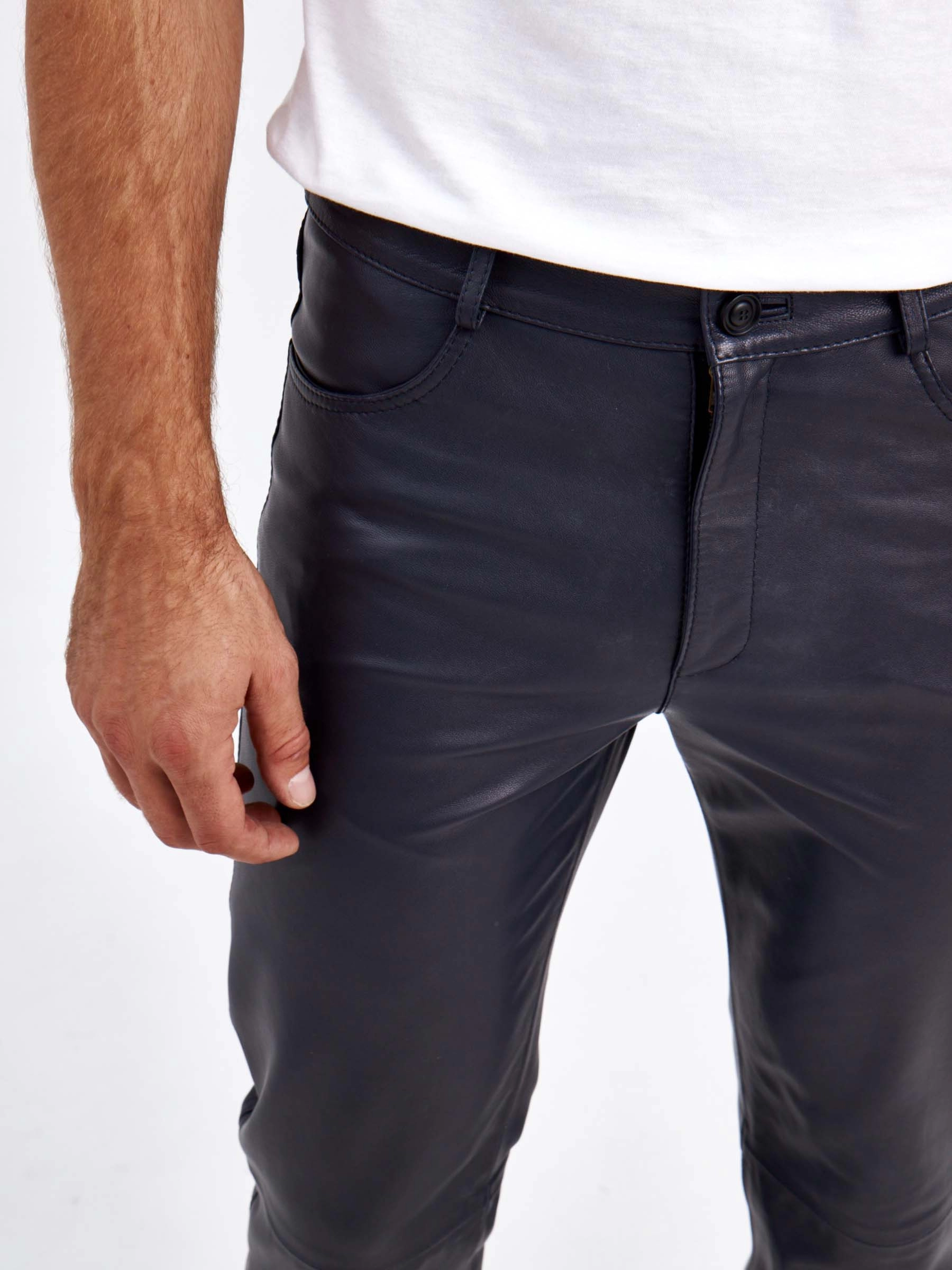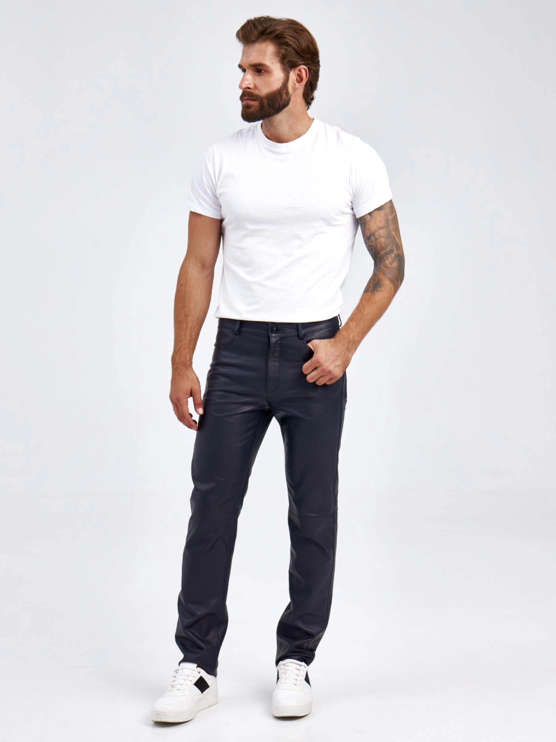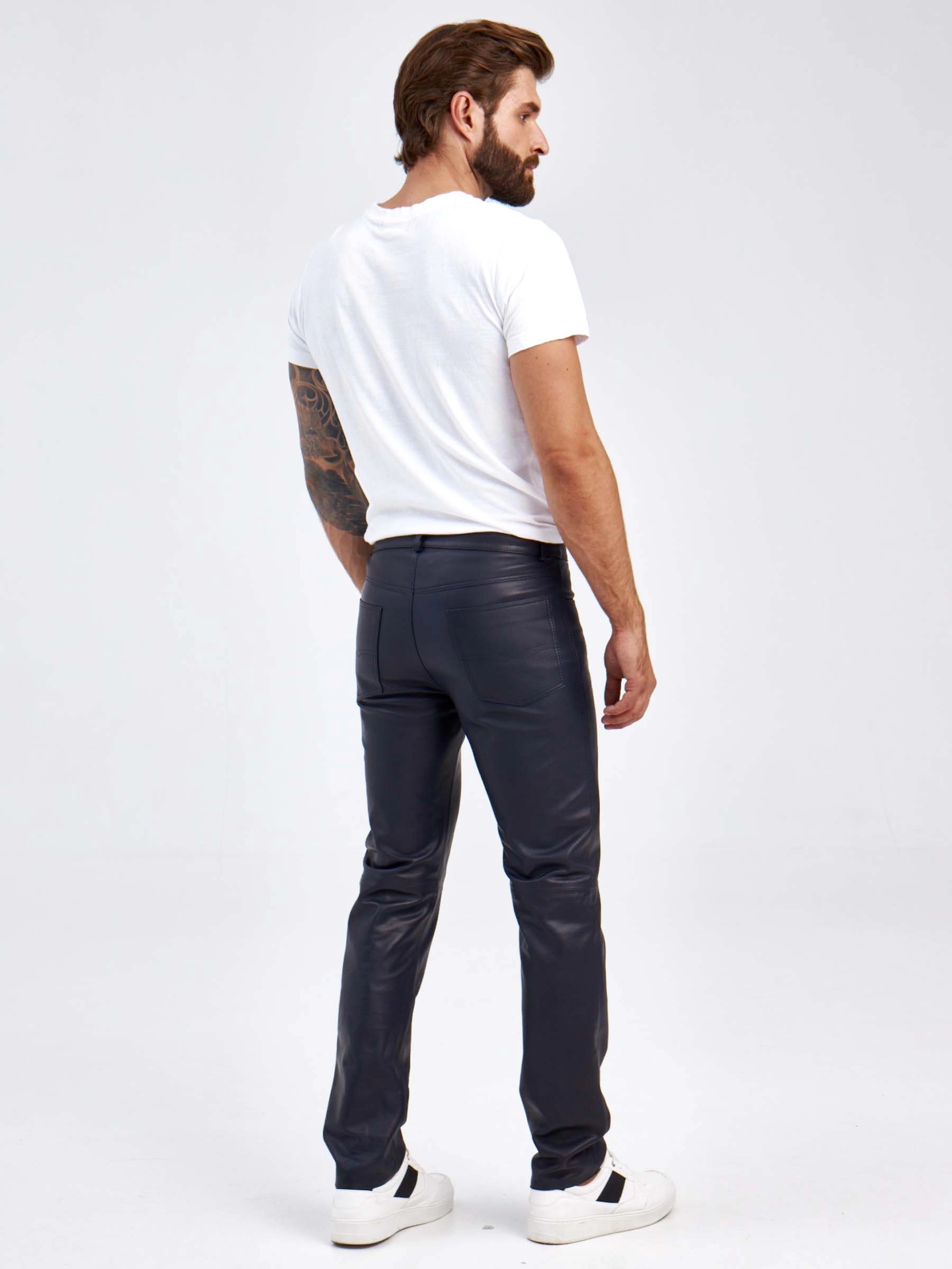 Мужские брюки из натуральной кожи премиум класса 01, синие, размер 48, артикул 120022