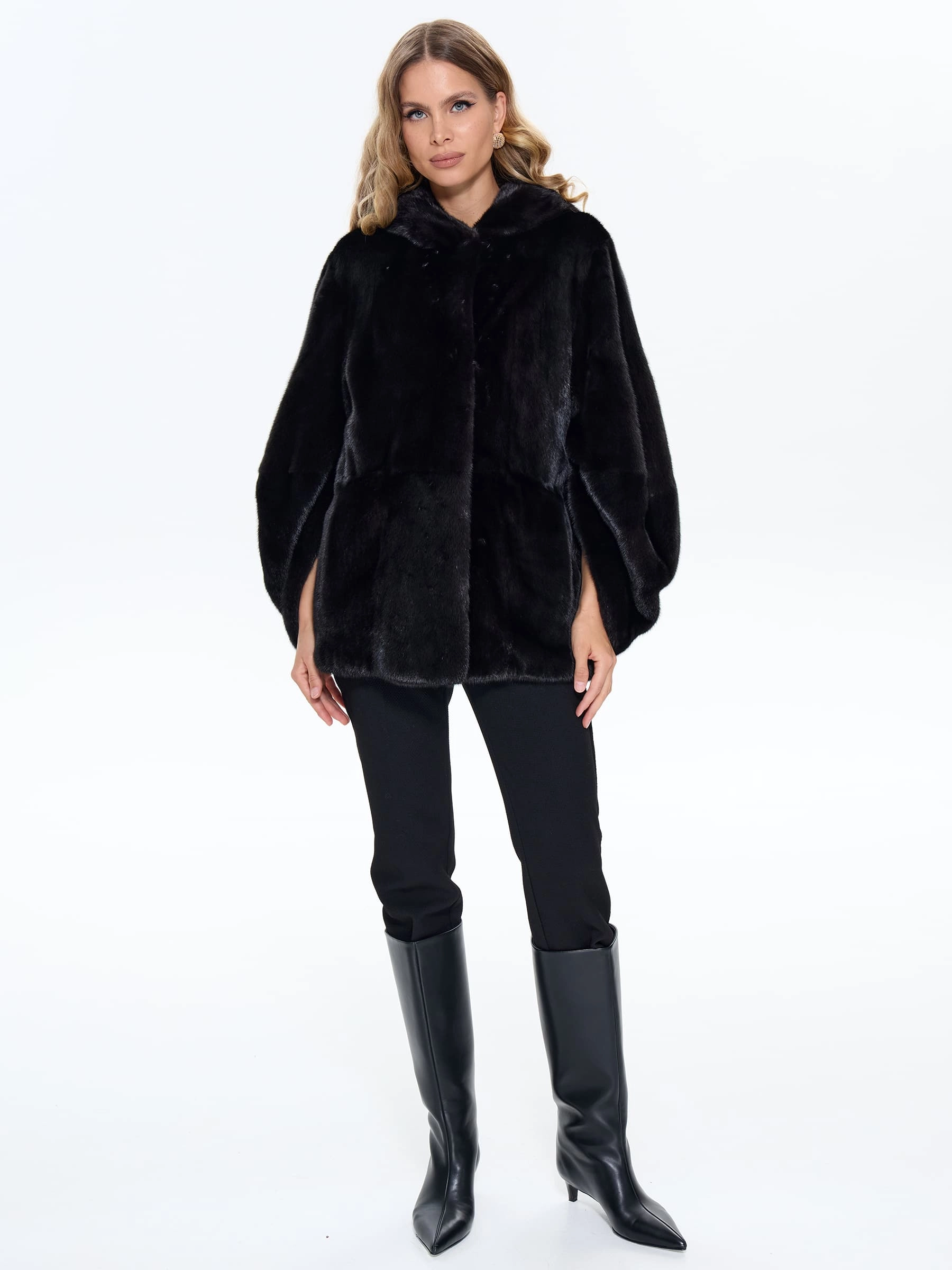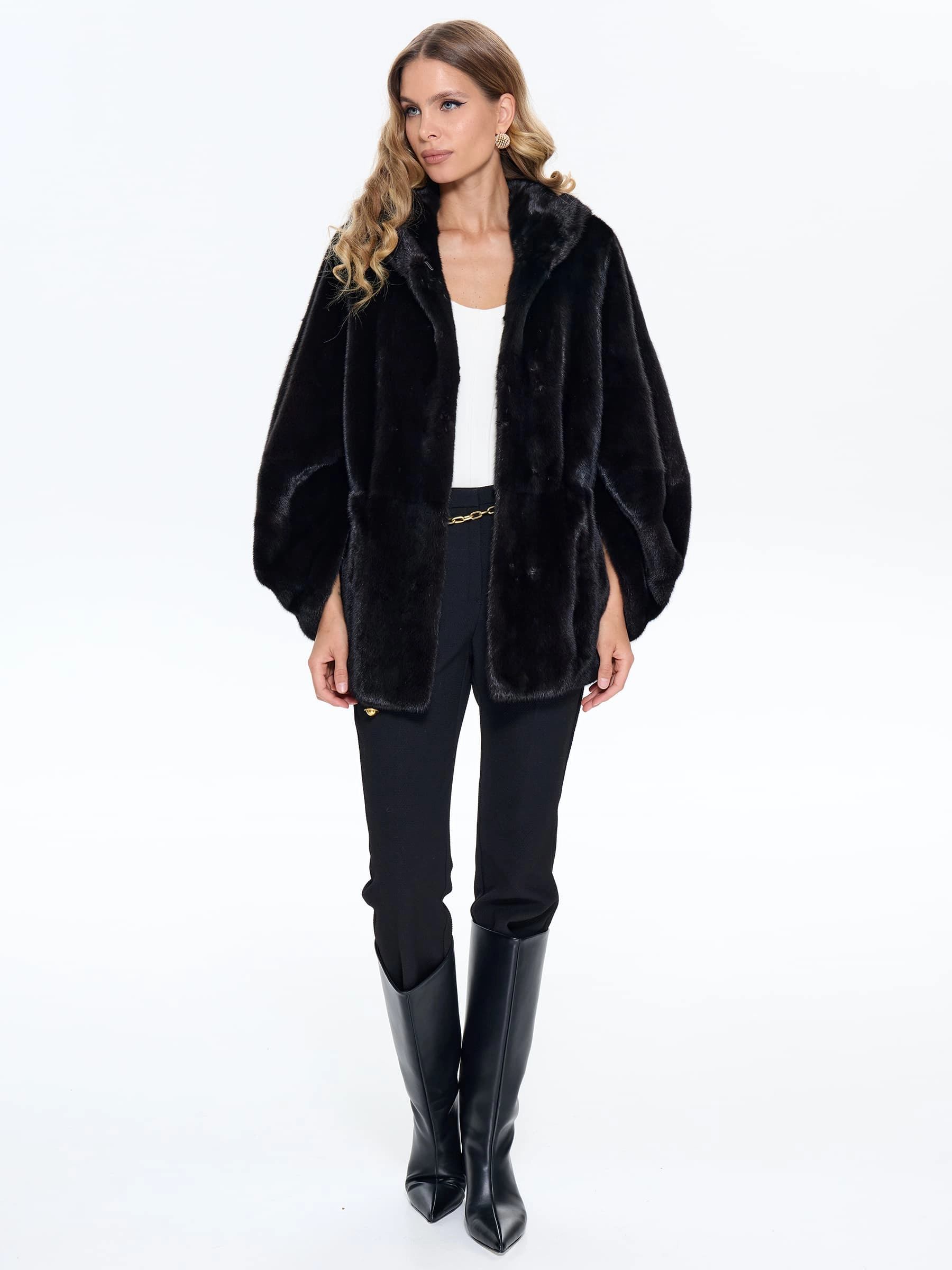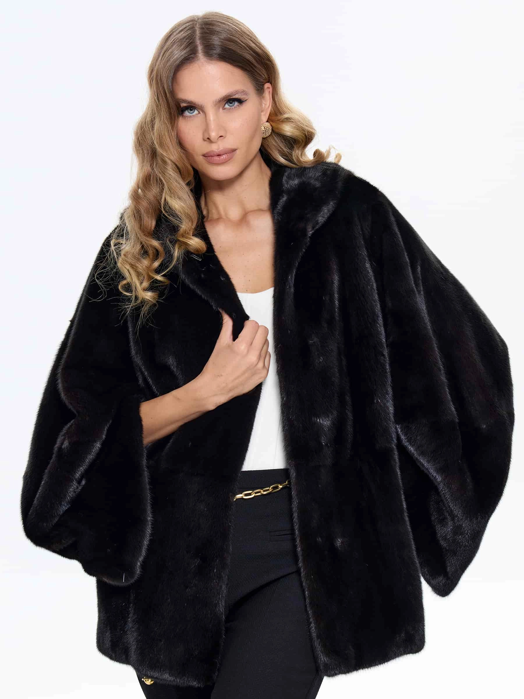 Черная женская норковая шуба BRASCHI 6883.H1, размер 40, артикул 34420