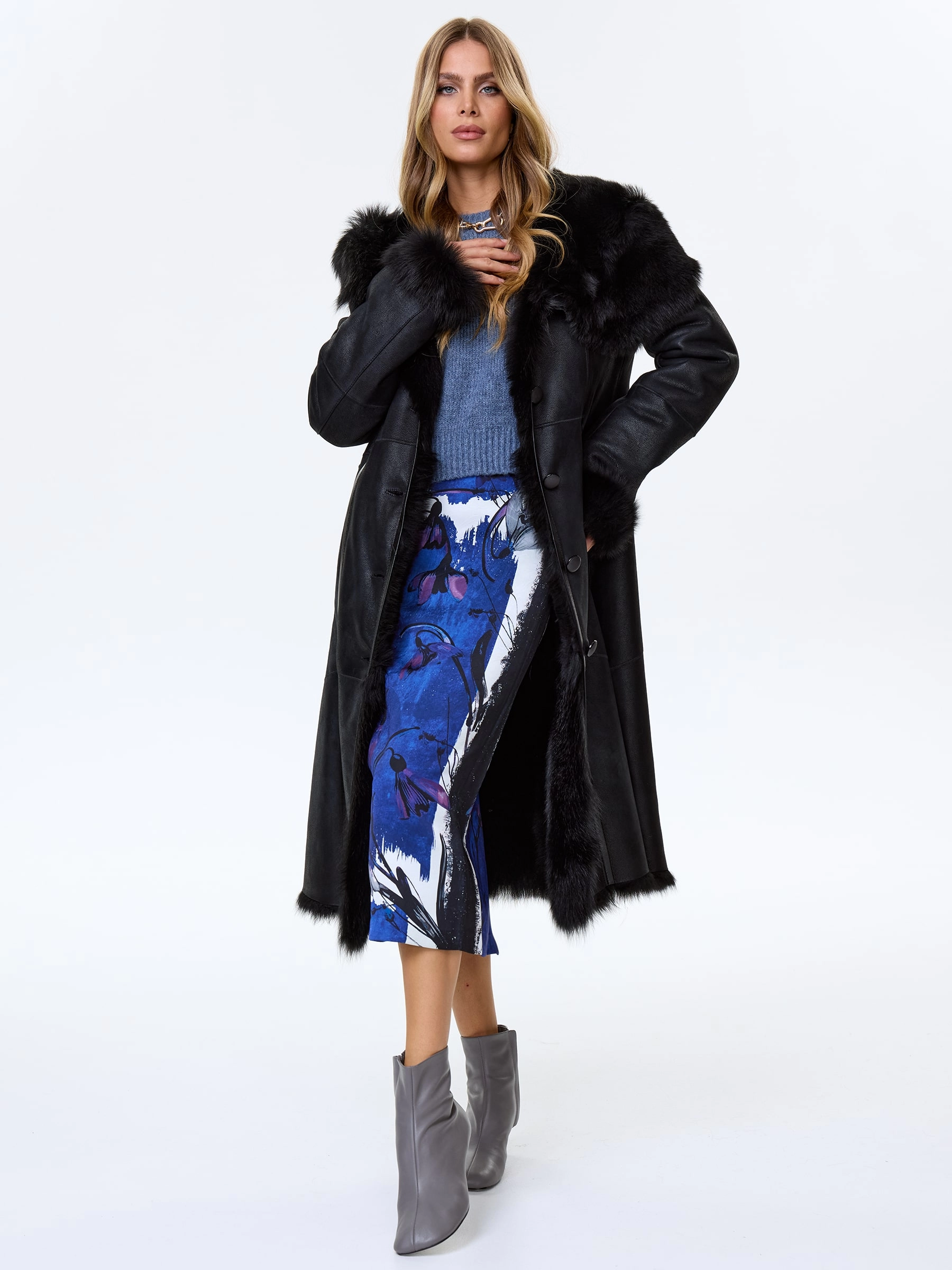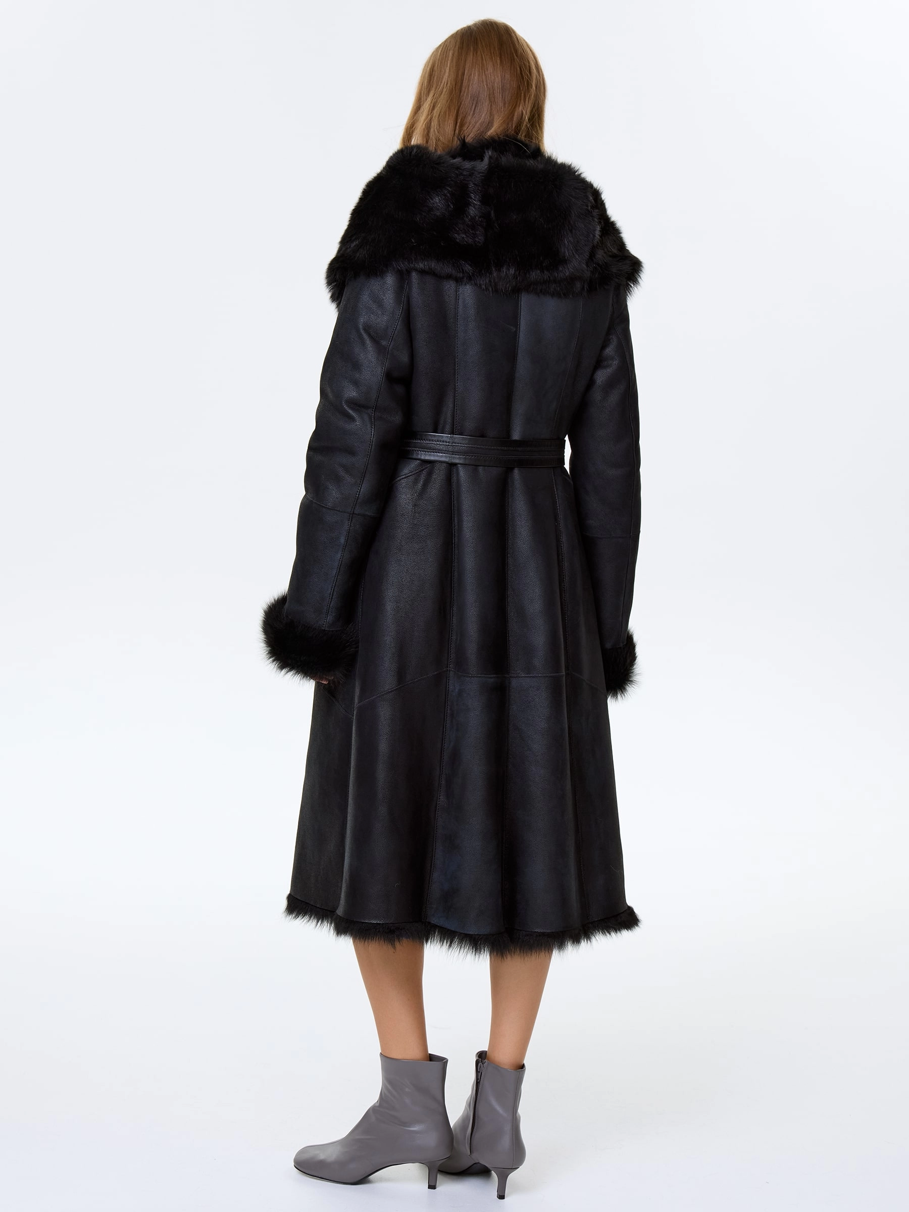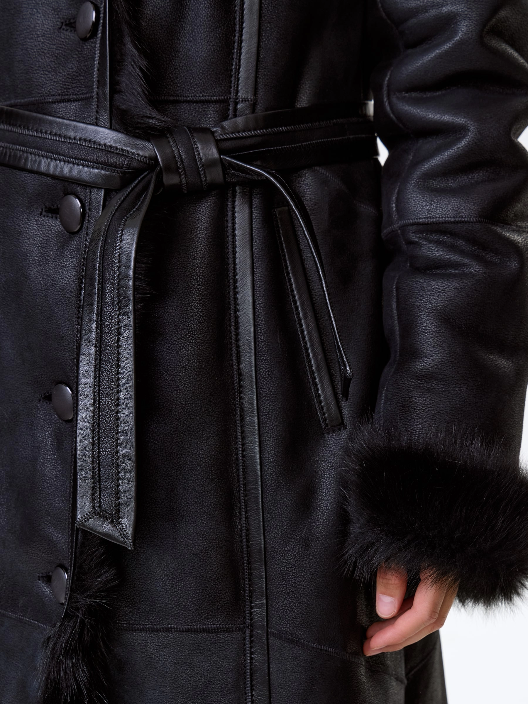 Черная женская дубленка из тосканы с капюшоном премиум-класса — воплощение роскоши, безупречного качества и исключительного комфорта: модель из тосканской овчины в глубоком черном цвете длиной 110 см с полуприлегающим силуэтом и втачным рукавом обеспечивает идеальную посадку по фигуре, подчеркивая женственность и даря свободу движений. Главным акцентом модели стал эффектный широкий несъемный капюшон, который превращается на плечах в изящную шаль, добавляя образу элегантности и универсальности; нежнейший густой и высокий мех тосканы великолепно согревает в любой мороз, а новейшее защитное покрытие надежно предохраняет изделие от царапин, сохраняя безупречный внешний вид. Классическая застежка на пуговицы и отсутствие подкладки подчеркивают премиальное качество и мастерство исполнения. Совет стилиста: трансформируемый капюшон-шаль позволяет создавать разные по настроению образы.