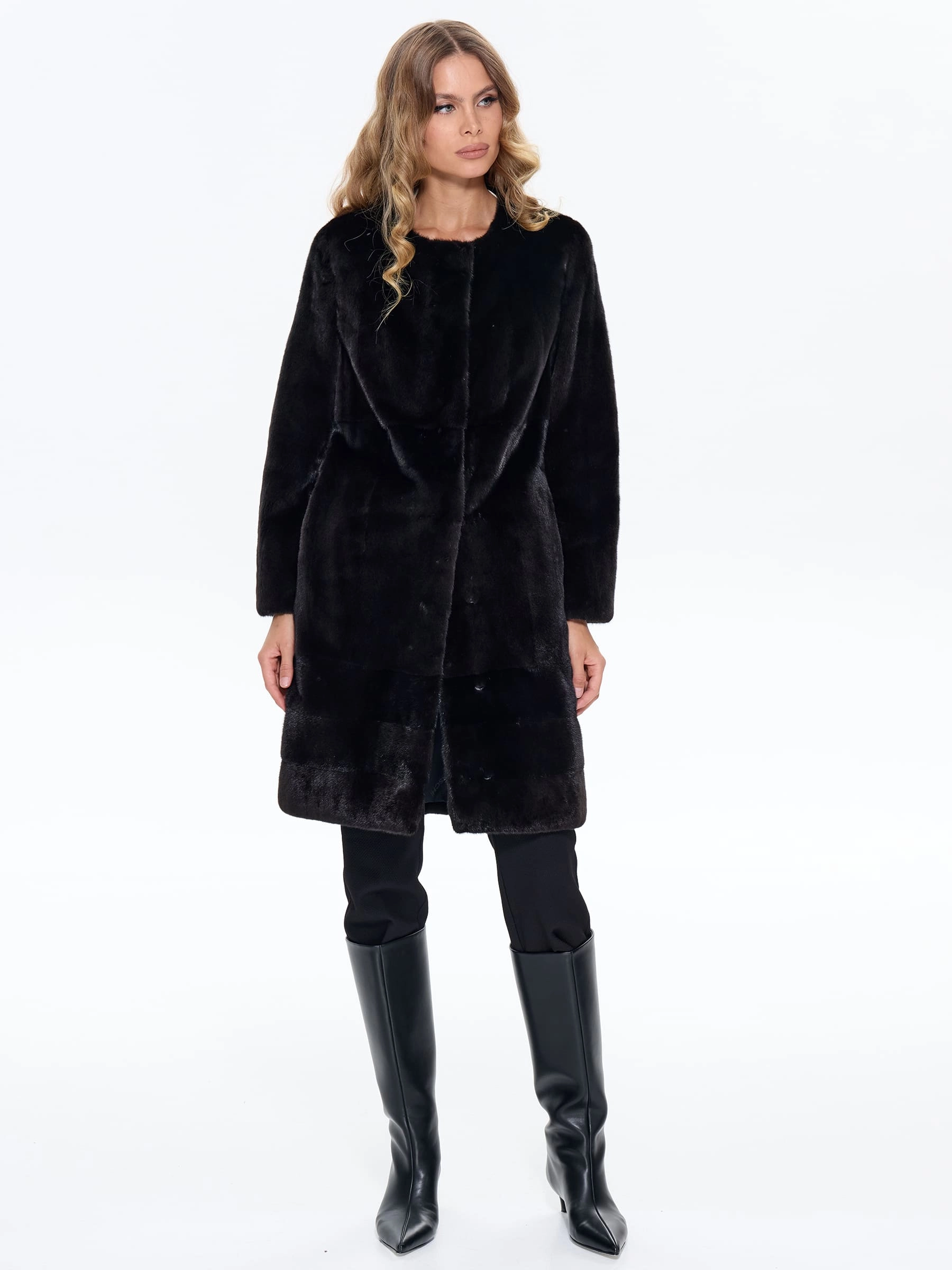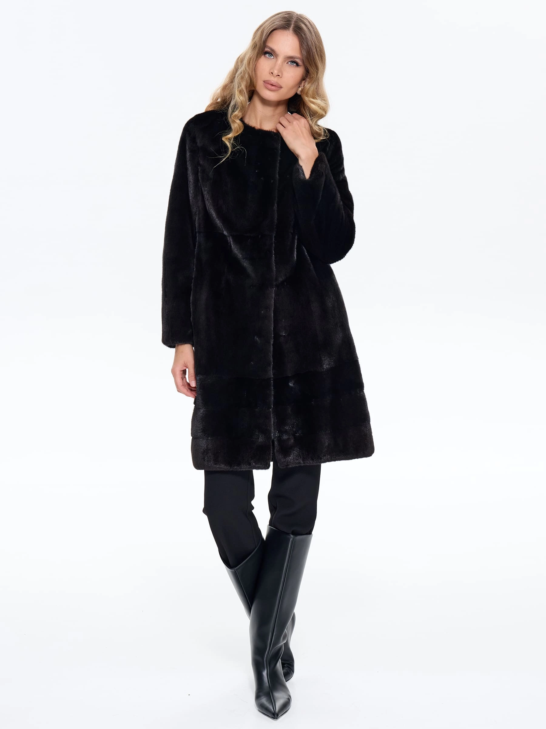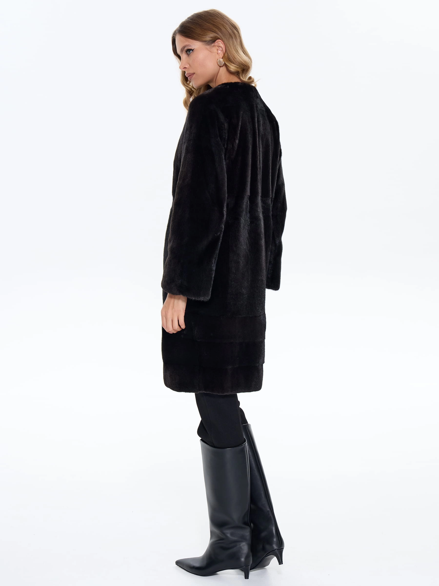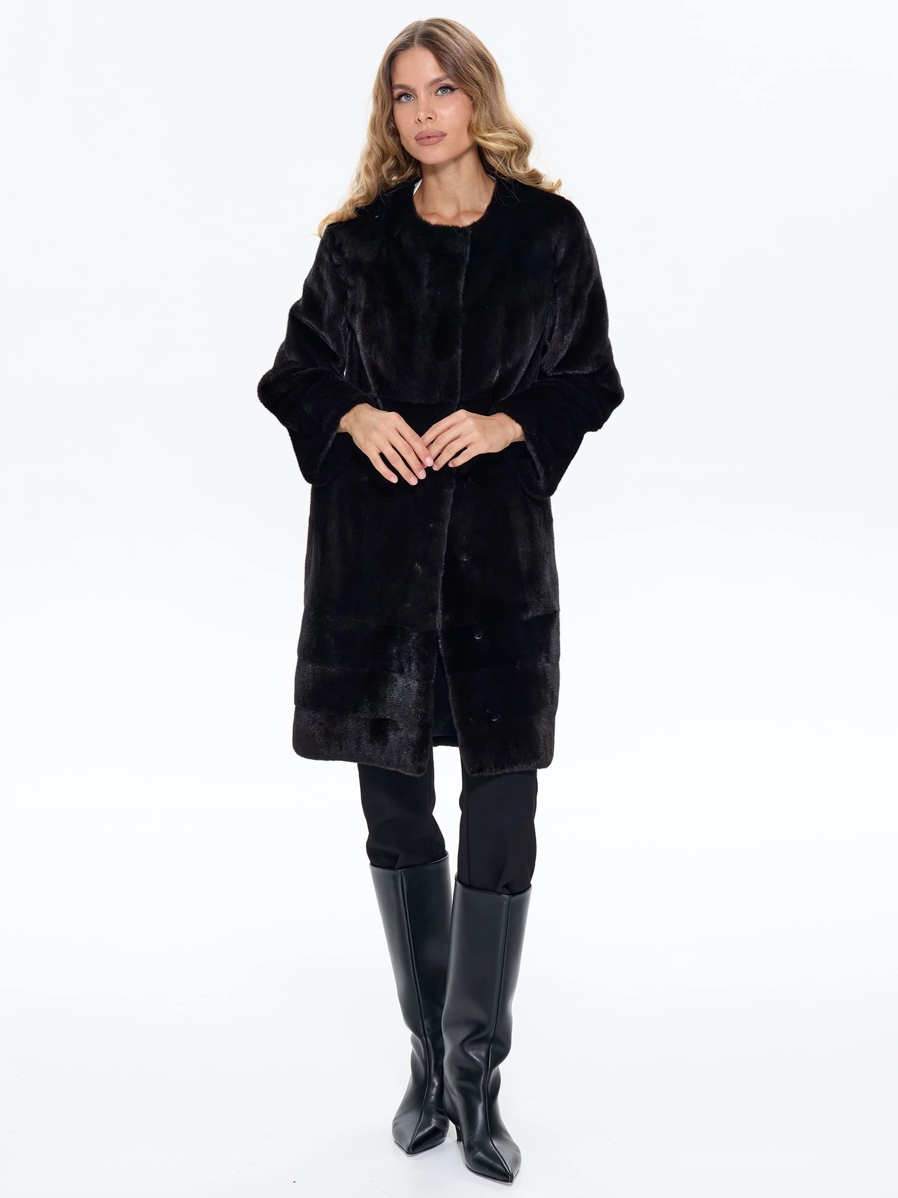 Черная женская шуба из меха норки BRASCHI NJ 13, размер 42, артикул 34370