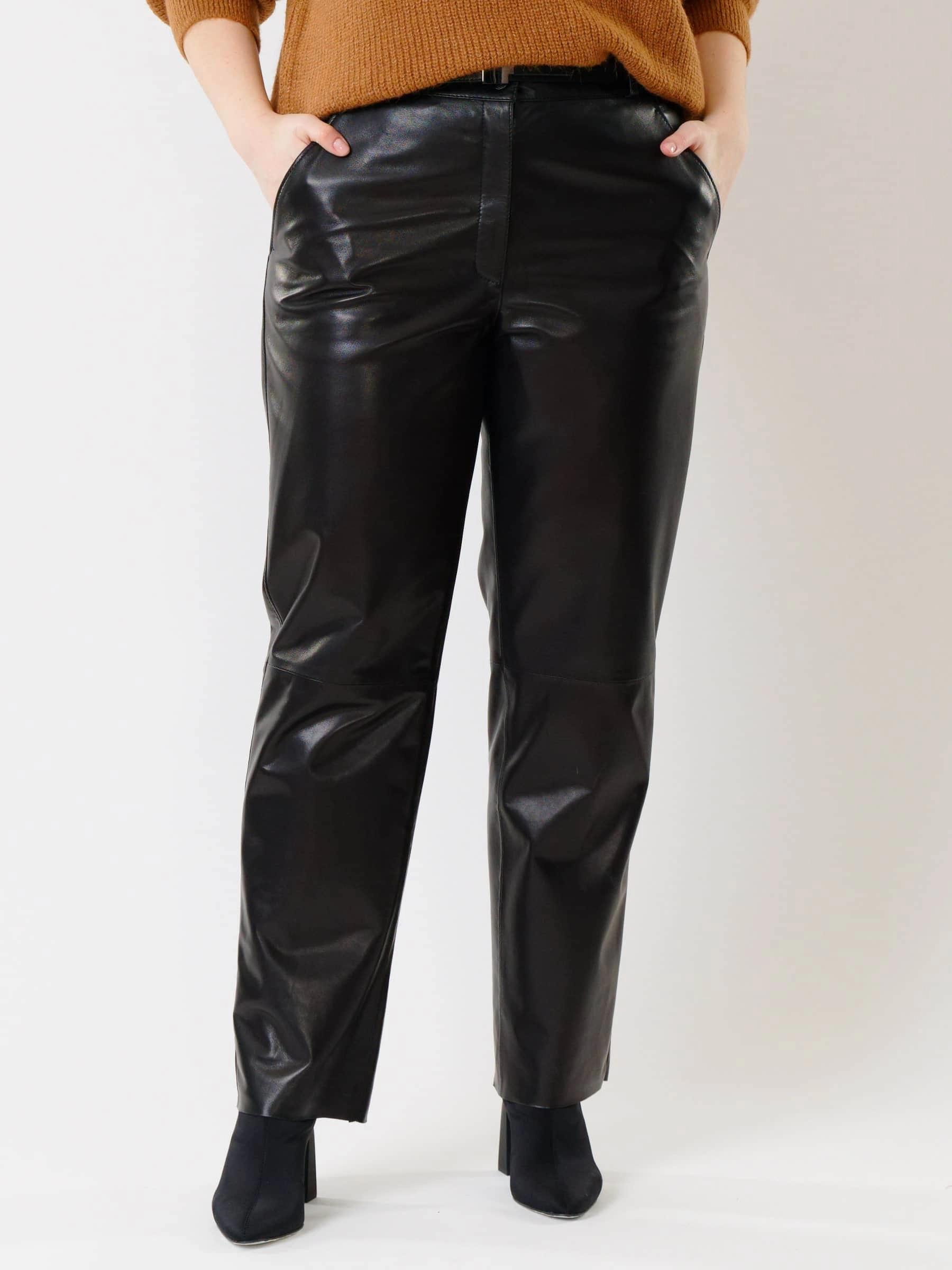 Черные прямые женские кожаные брюки 04, размер 46, артикул 85392
