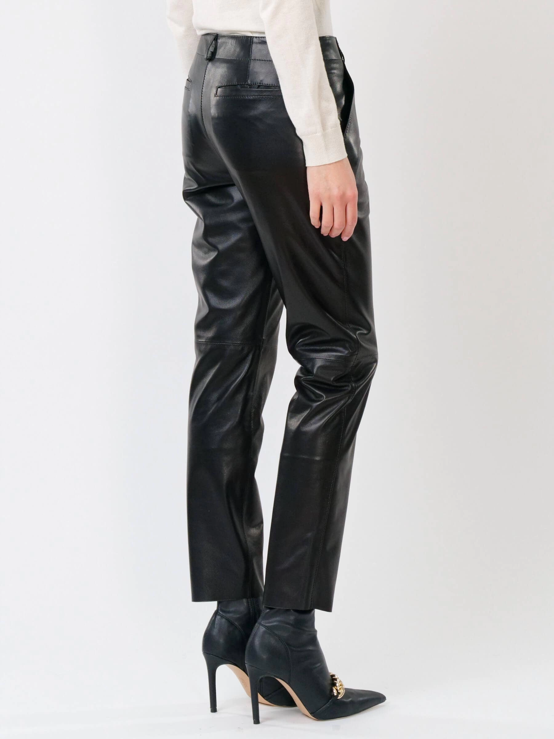 Черные зауженные женские кожаные брюки 03, размер 48, артикул 85502