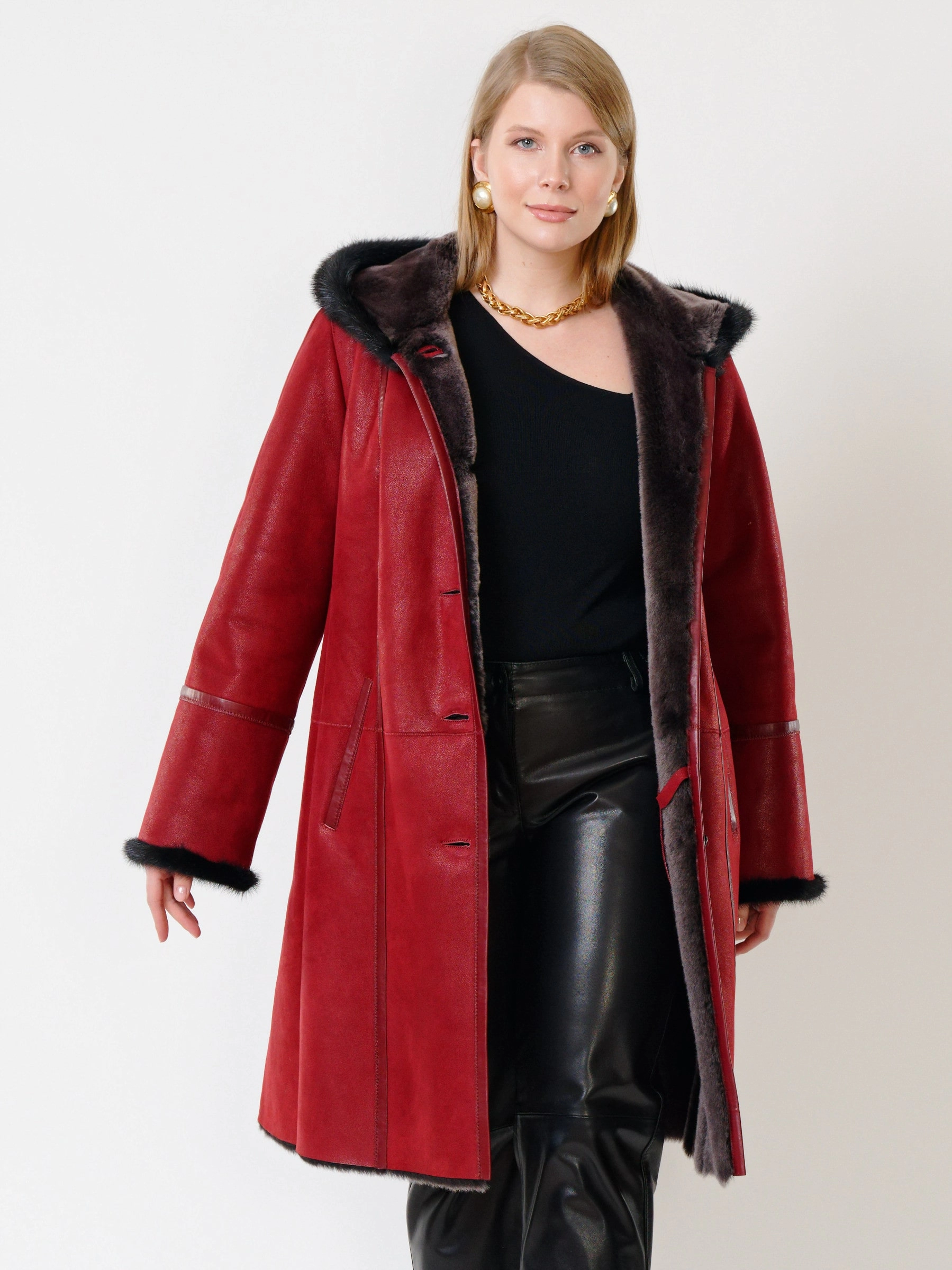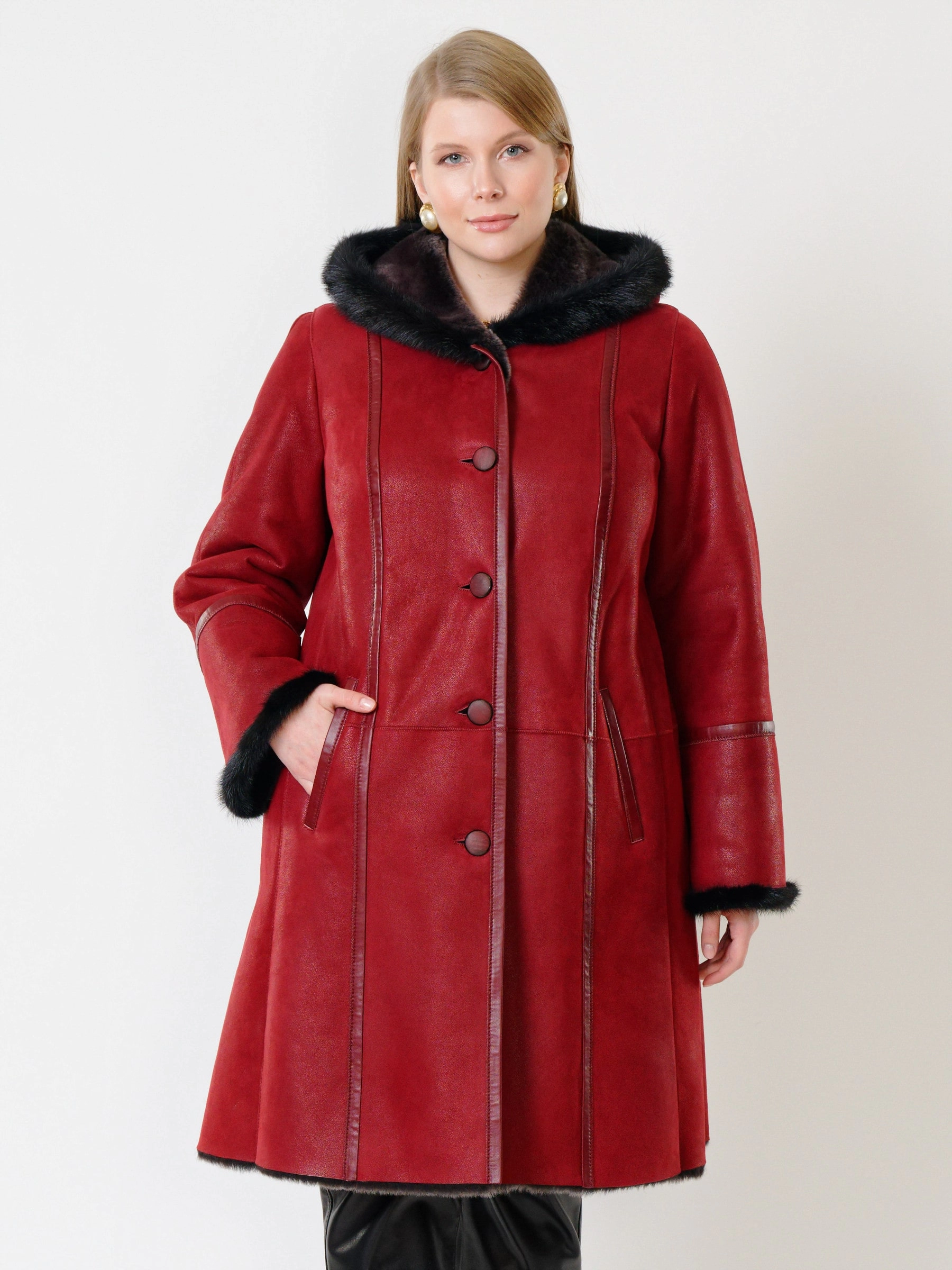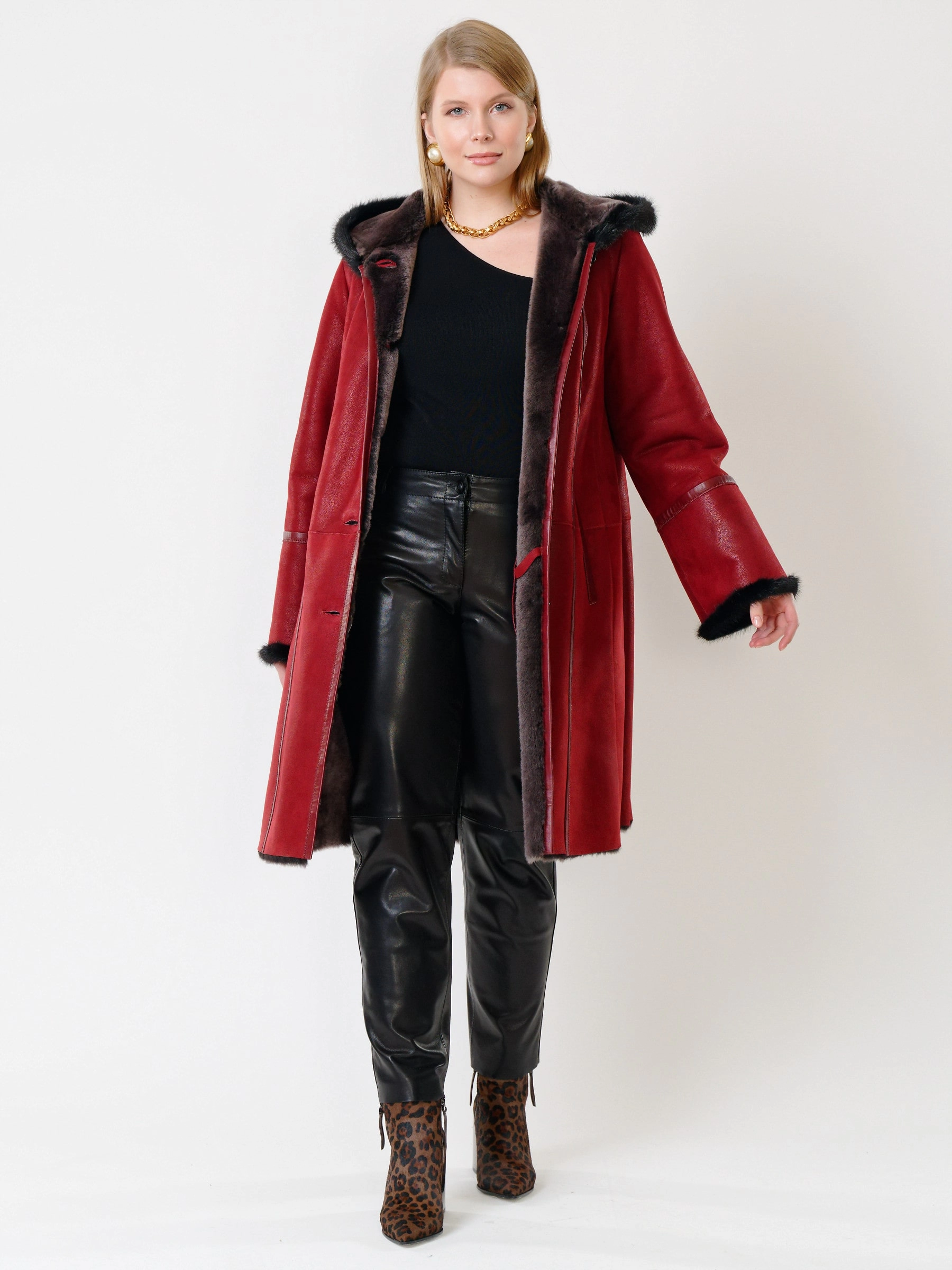 Демисезонный комплект женский: Дубленка 225У + Брюки 03, красный/черный, р. 50, арт. 111210