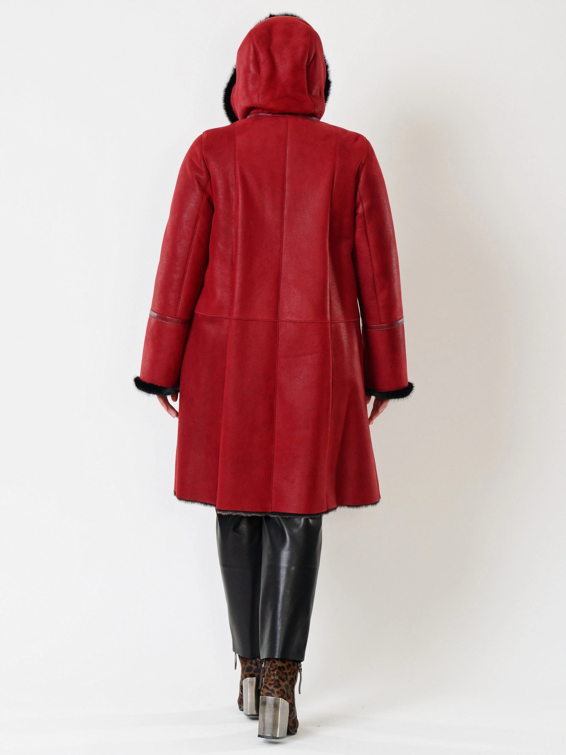 Классическая дублёнка oversize с капюшоном и кожаные брюки. Нежнейшая овчина мерино c отделкой мехом норки. Удобный капюшон. Премиальное качество меха и кожи. Комфортная посадка по фигуре.