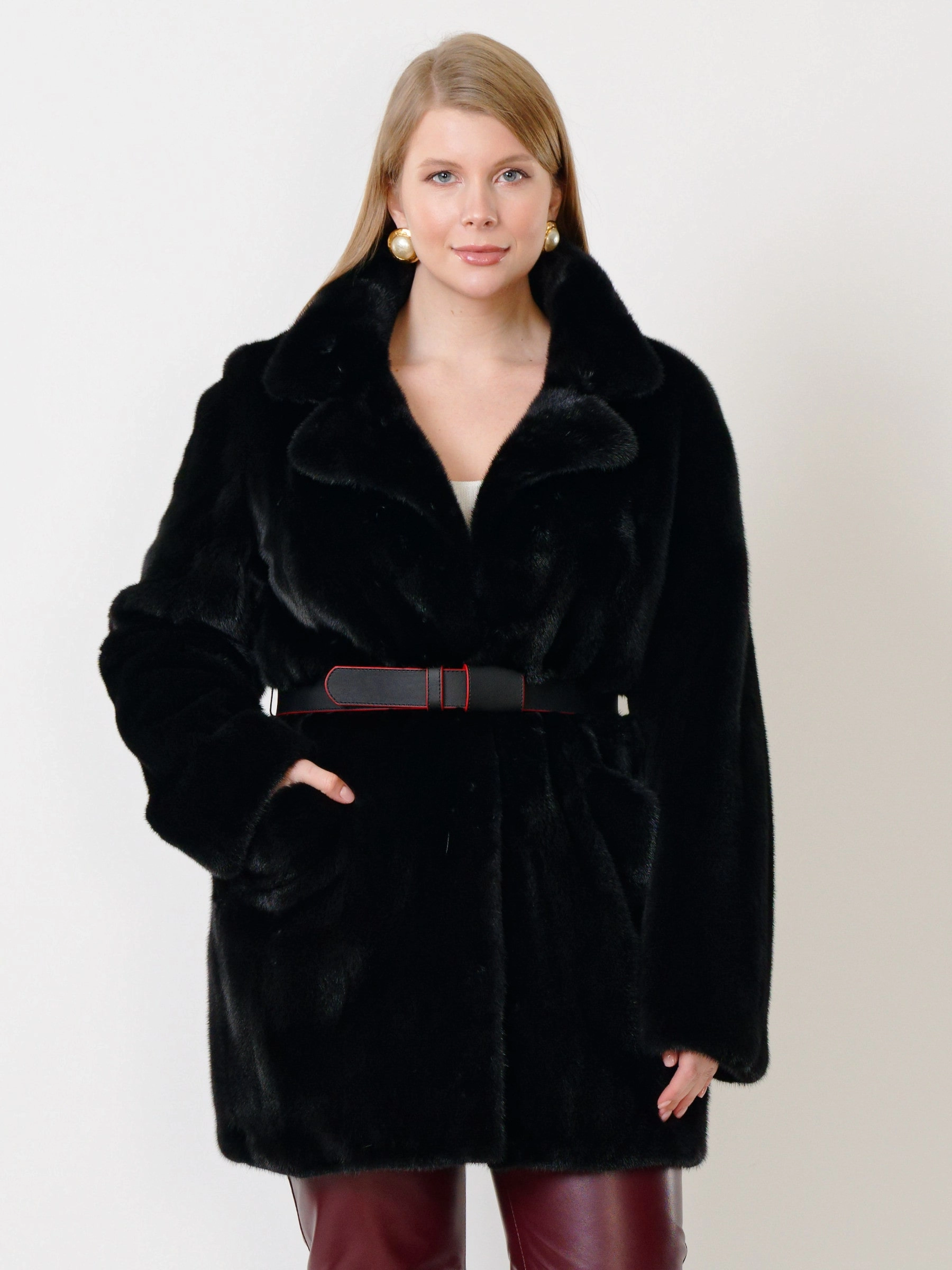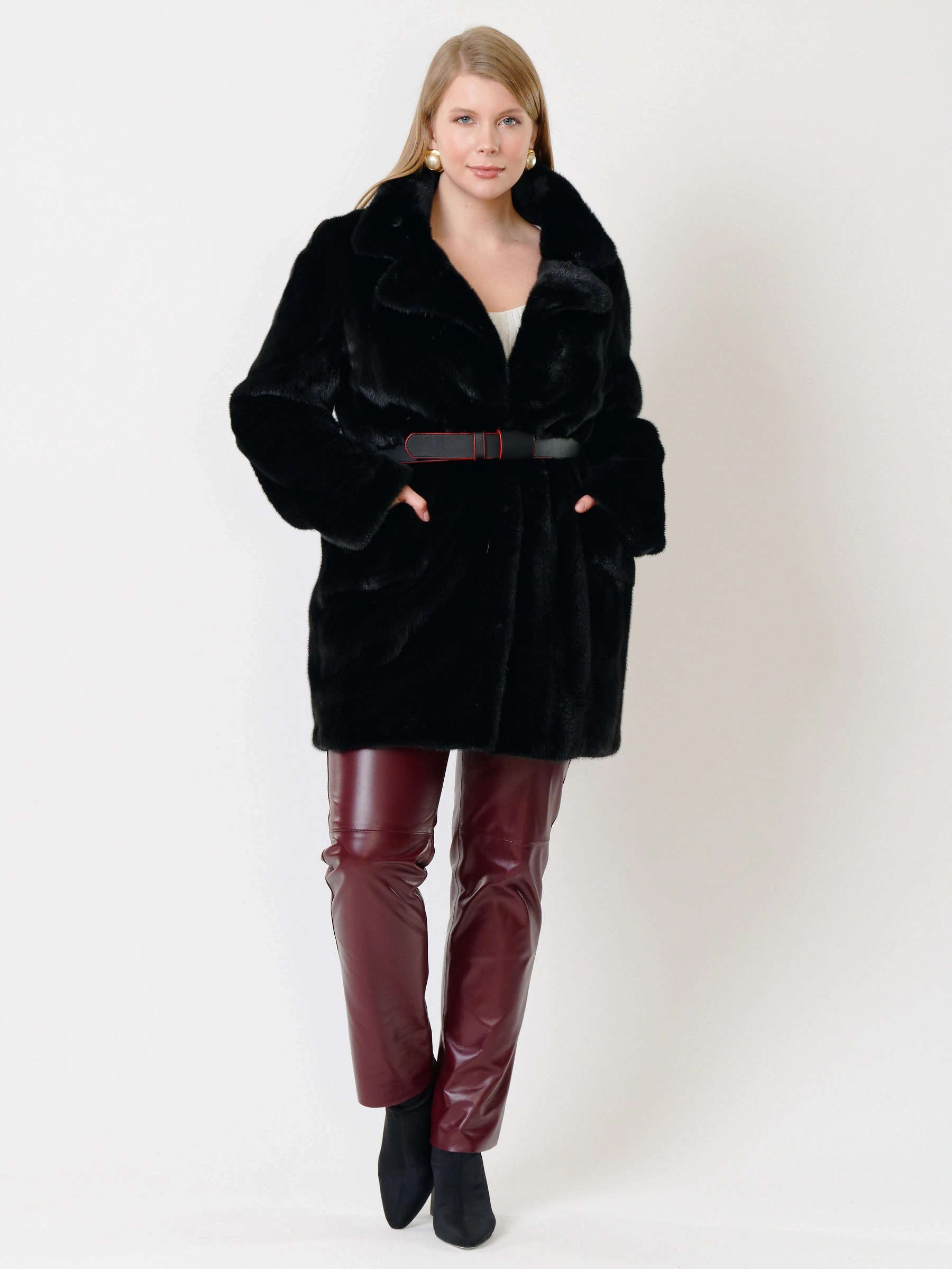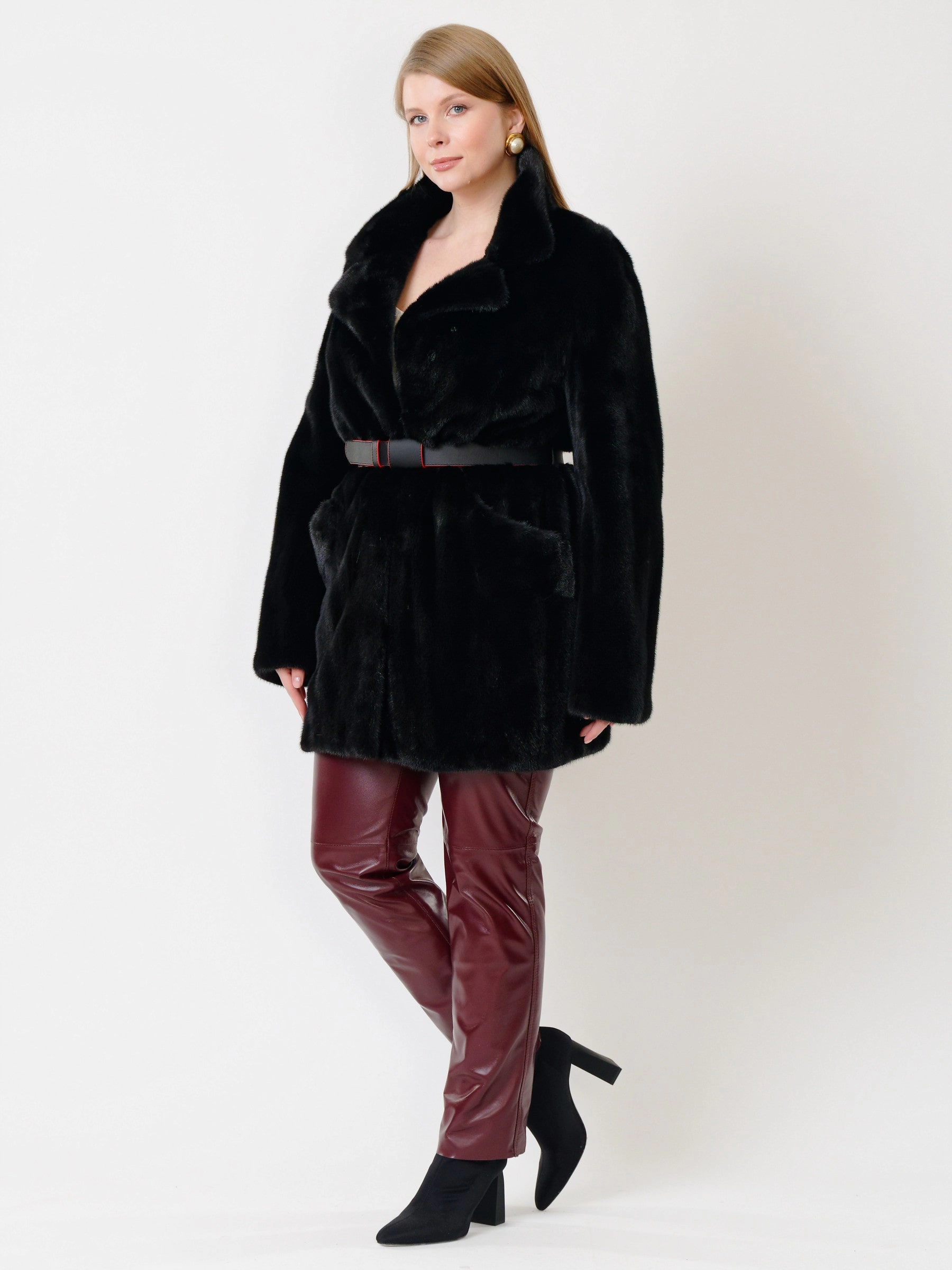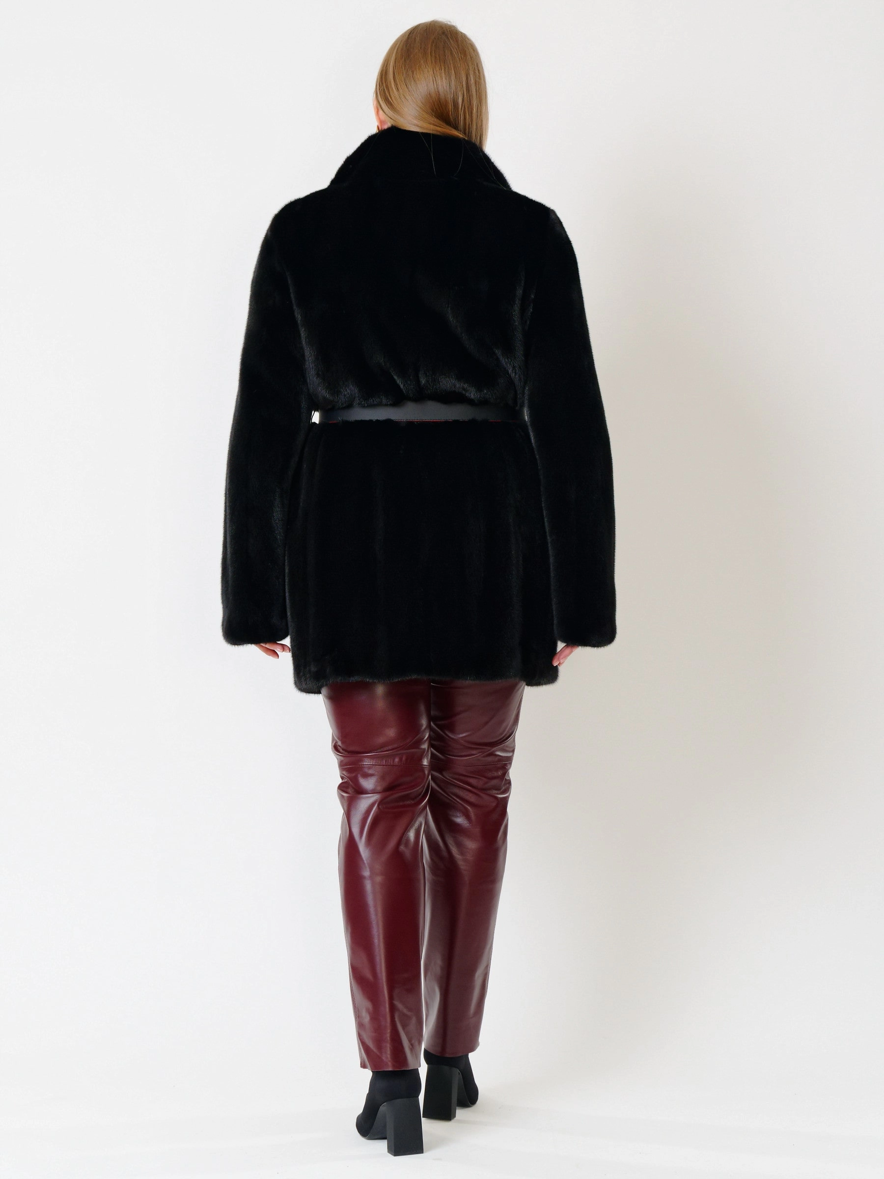 Очень эффектная куртка из шелковистого густого меха норки. Прямой силуэт, английский воротник, подчеркнуть талию можно тонким кожаным поясом. Модель получиласть легкая, но вместе с тем теплая и комфортная. Прекрасным дополнением к зимнему образу послужат брюки выполненные из мягкой и качественной кожи.