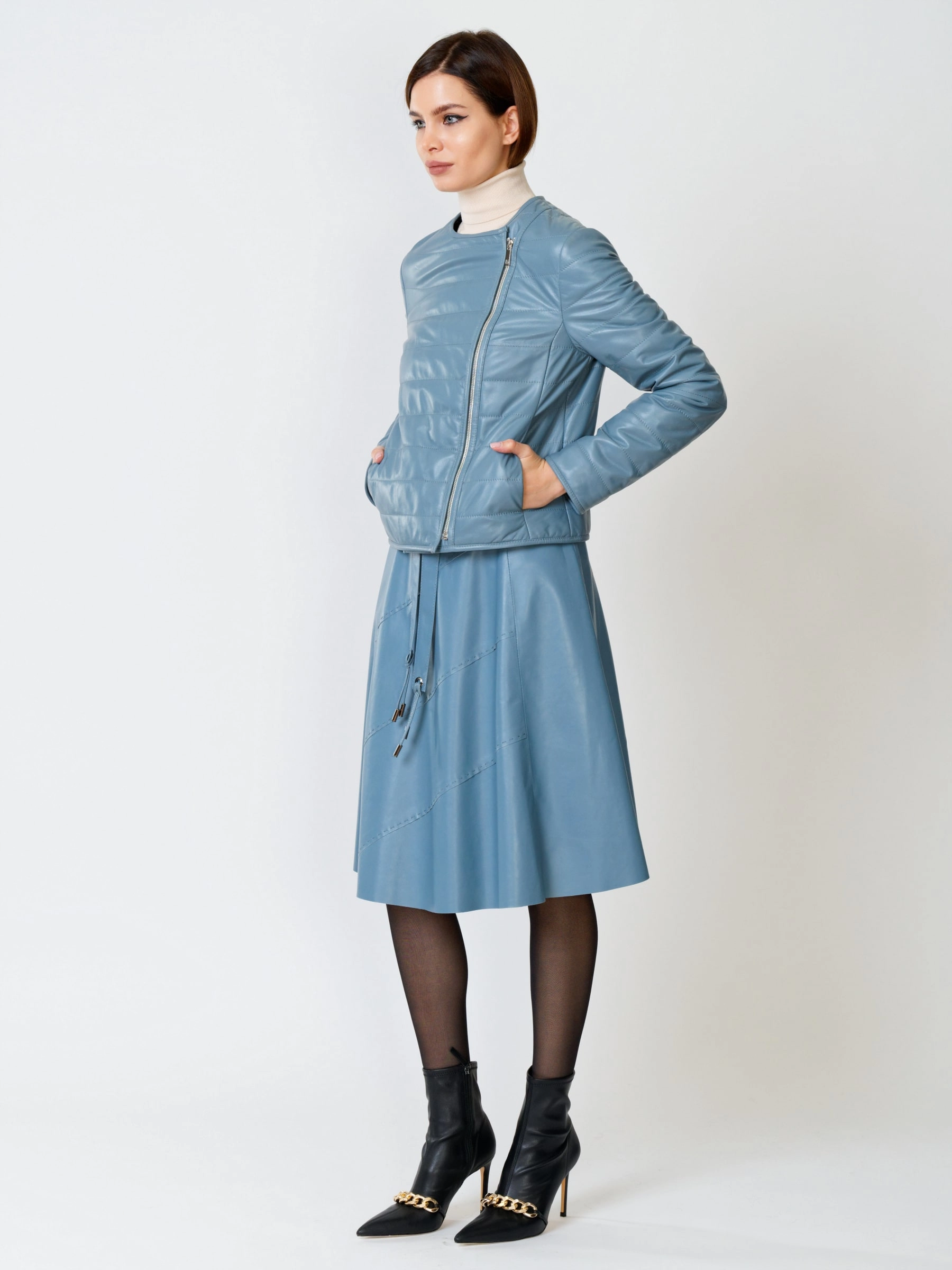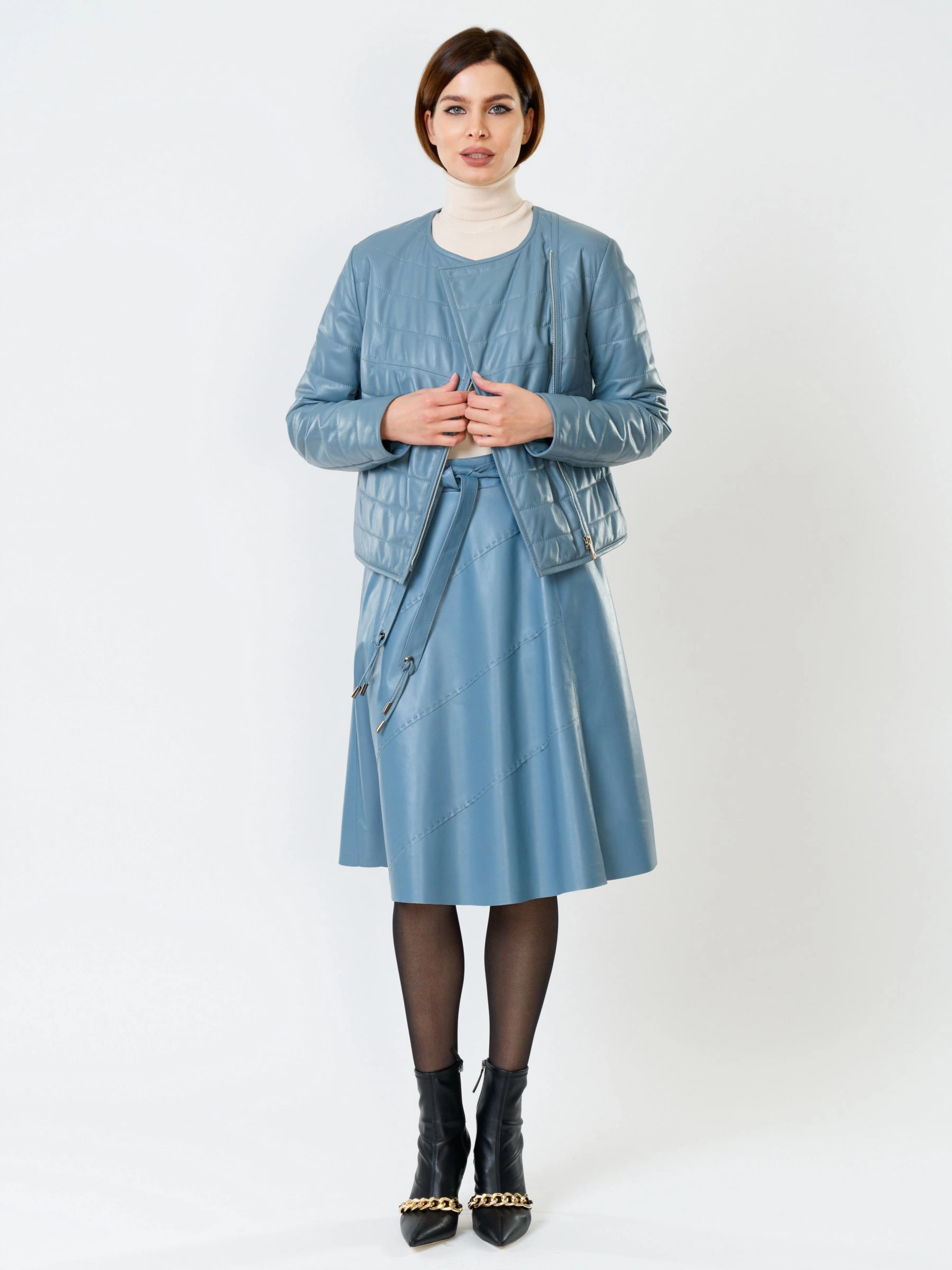 Демисезонный комплект женский: Куртка утепленная 306 + Юбка с поясом 01рс, голубой, р. 46, арт. 111165