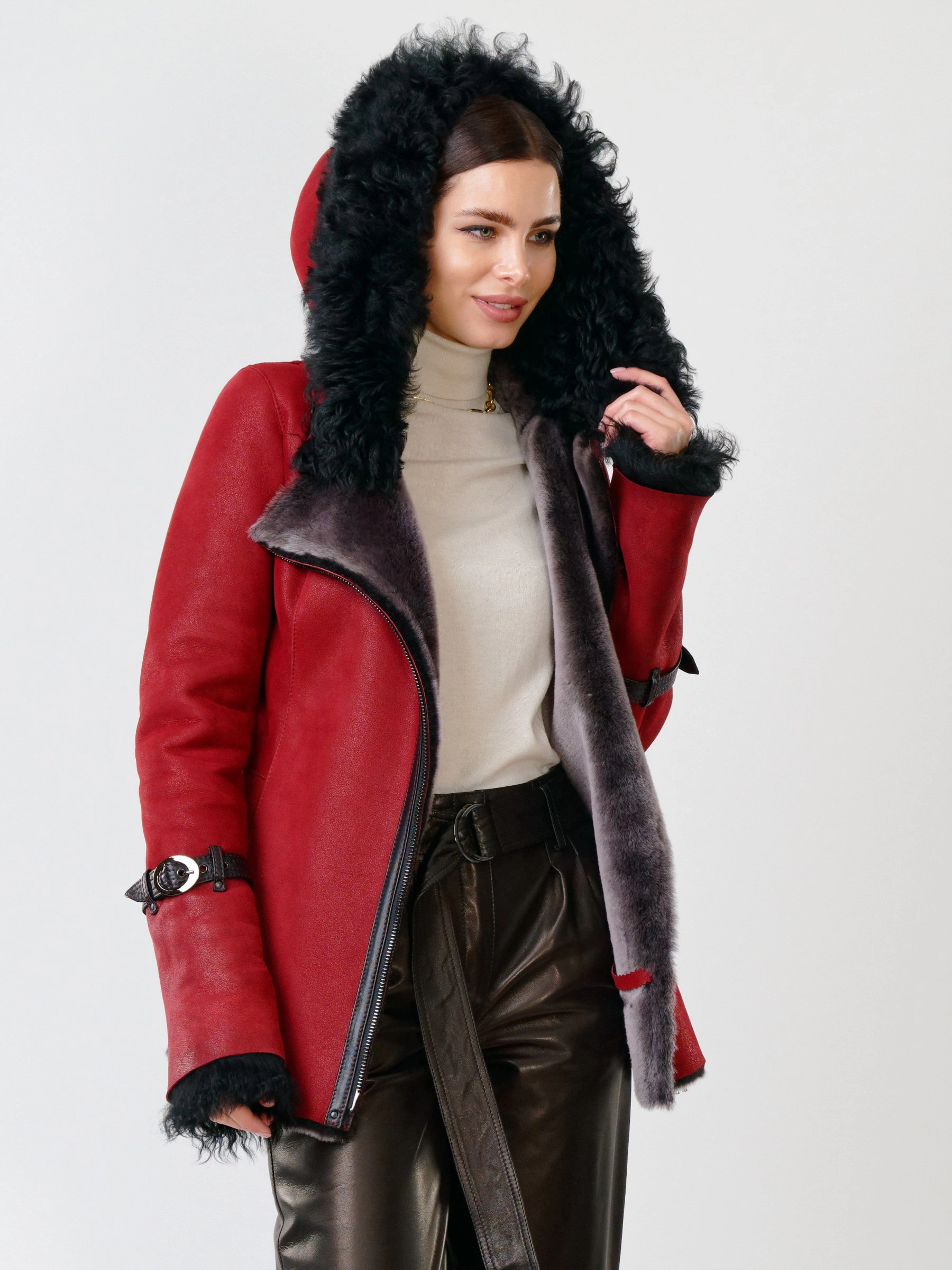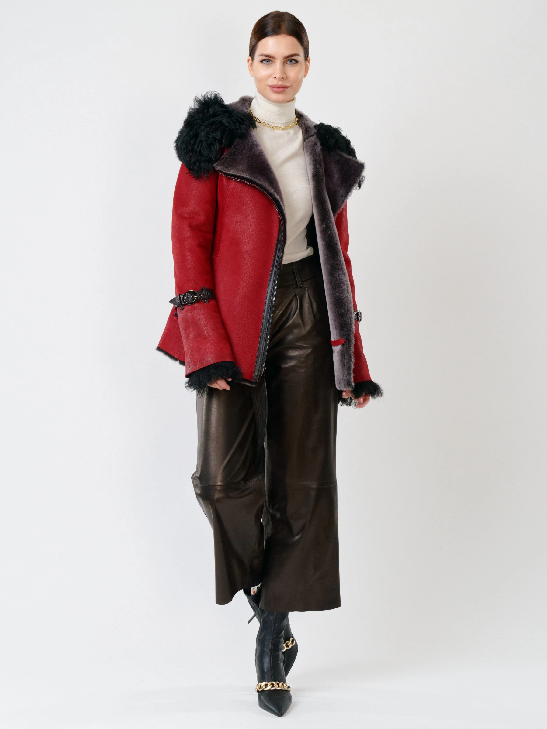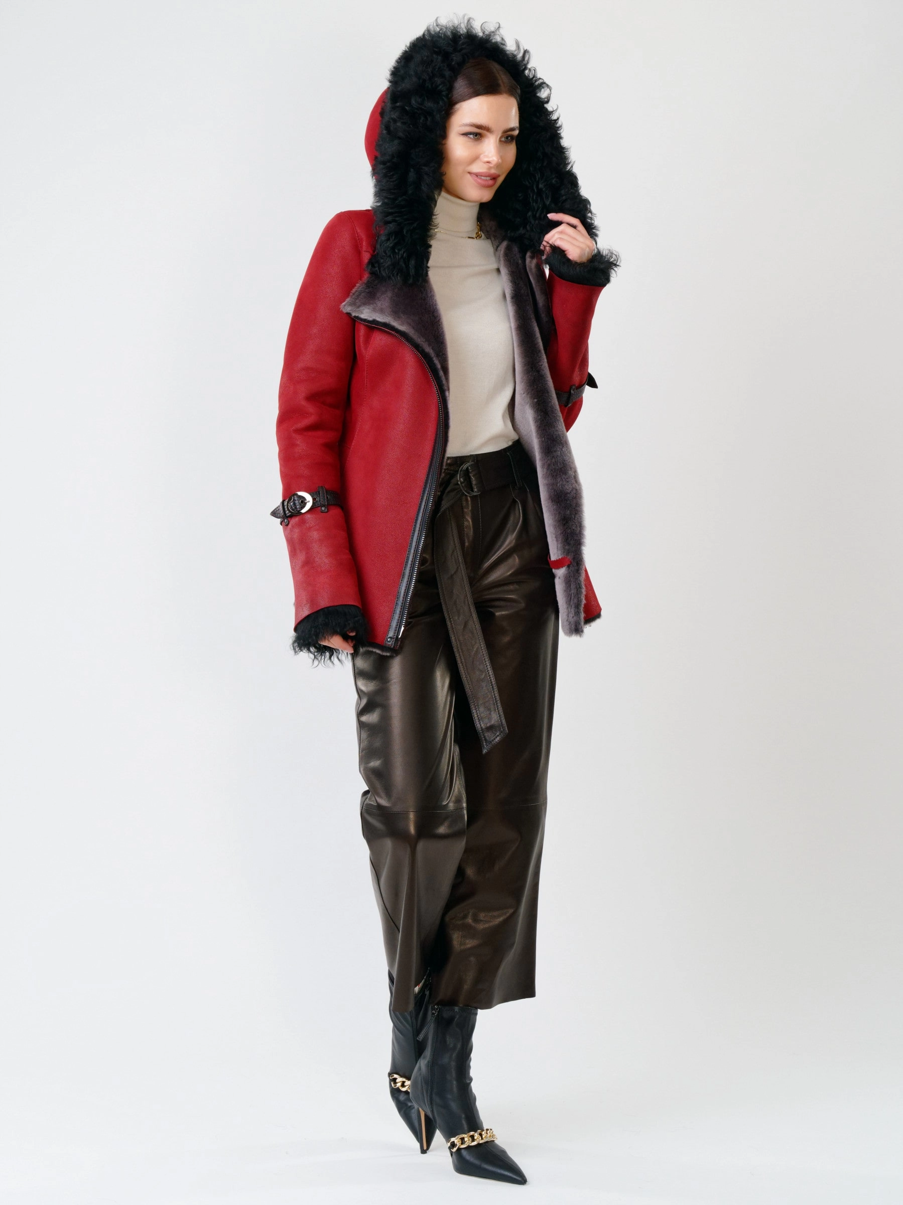 Несомненно достоинством классического стиля является то, что отлично сочетается с элементами других модных направлений. Дубленка с капюшоном из овчины мериносных пород, максимально густой шелковистый волос прекрасно сможет противостоять морозам. Отличным дополнением послужат широкие кожаные брюки премиум-класса. Комфортная посадка по фигуре.