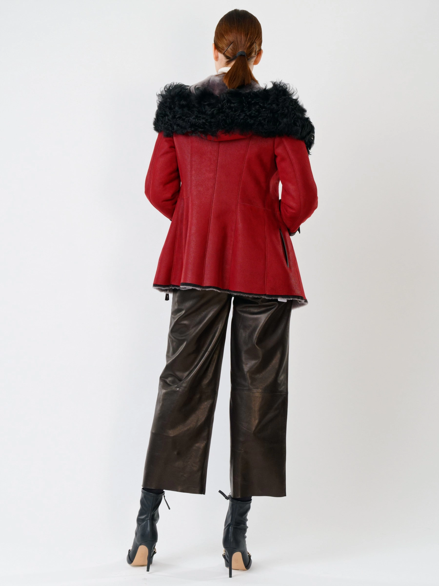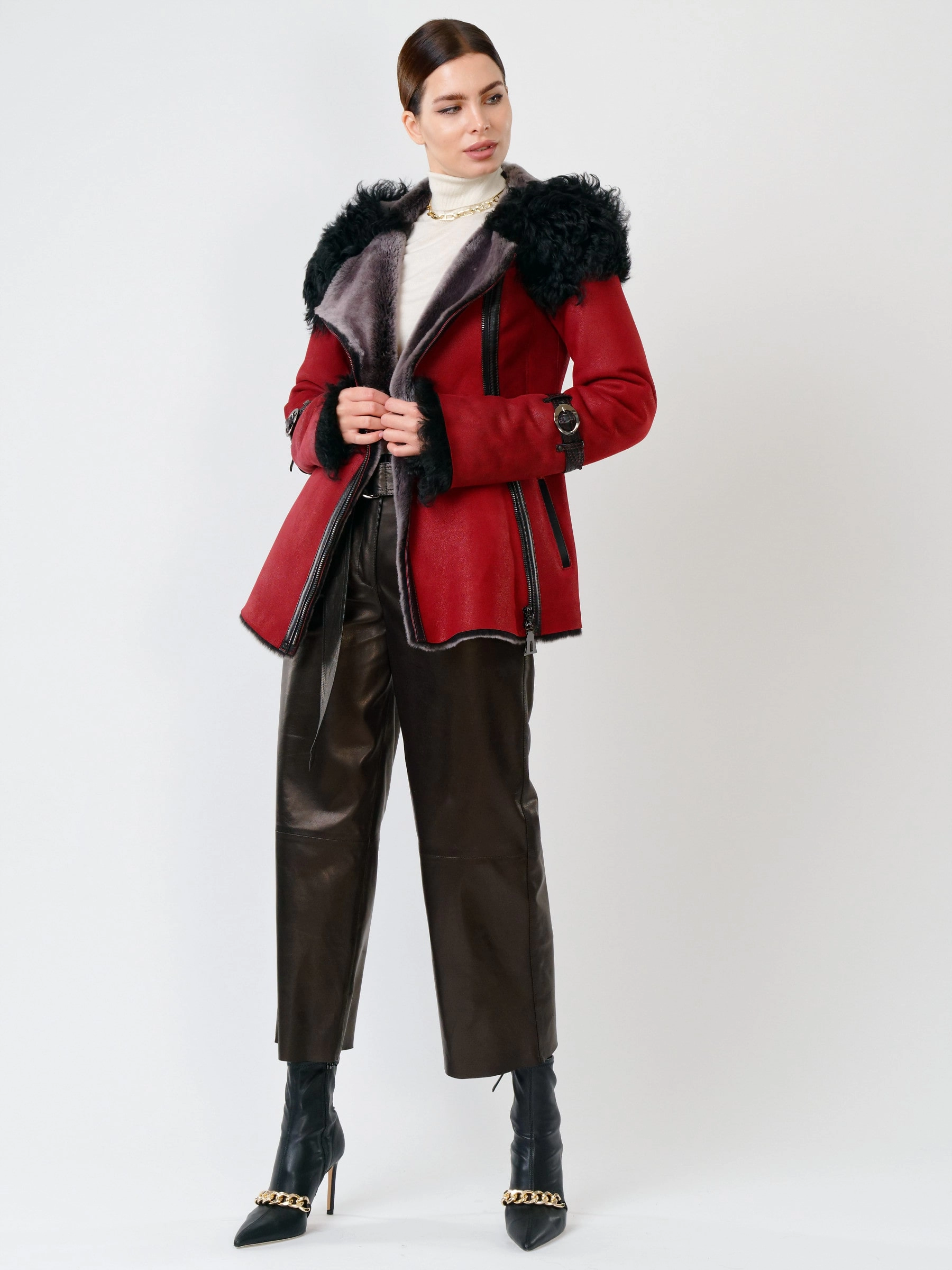 Демисезонный комплект женский: Дубленка 288 + Брюки 05, красная/черный, р. 42, арт. 111323