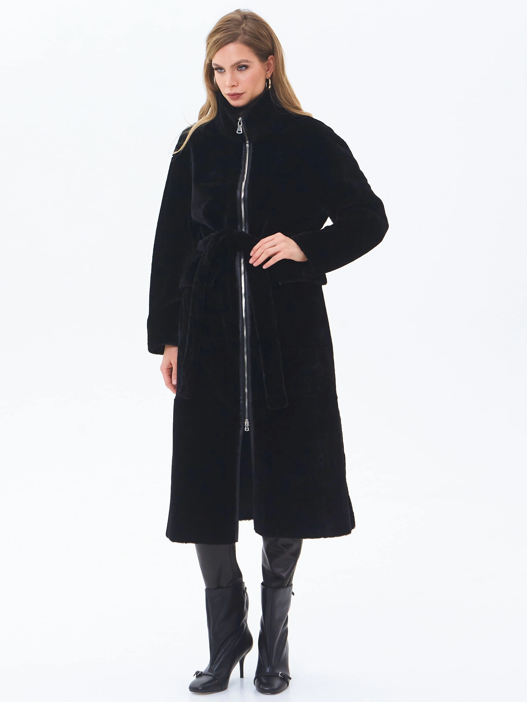 Товар длинная женская дубленка из астрагана 2062, черная, размер 46, артикул 64700 выполнен из овчина "астраган" с застежкой молния. Рассчитан на сезон: зима. Длина изделия 122 см, силуэт свободный.