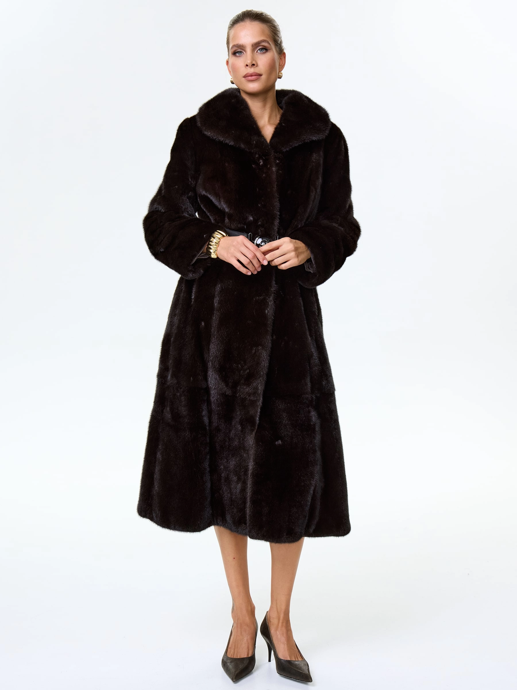 Длинная женская норковая шуба премиум класса Белла(в), черная, размер 52, артикул 34050