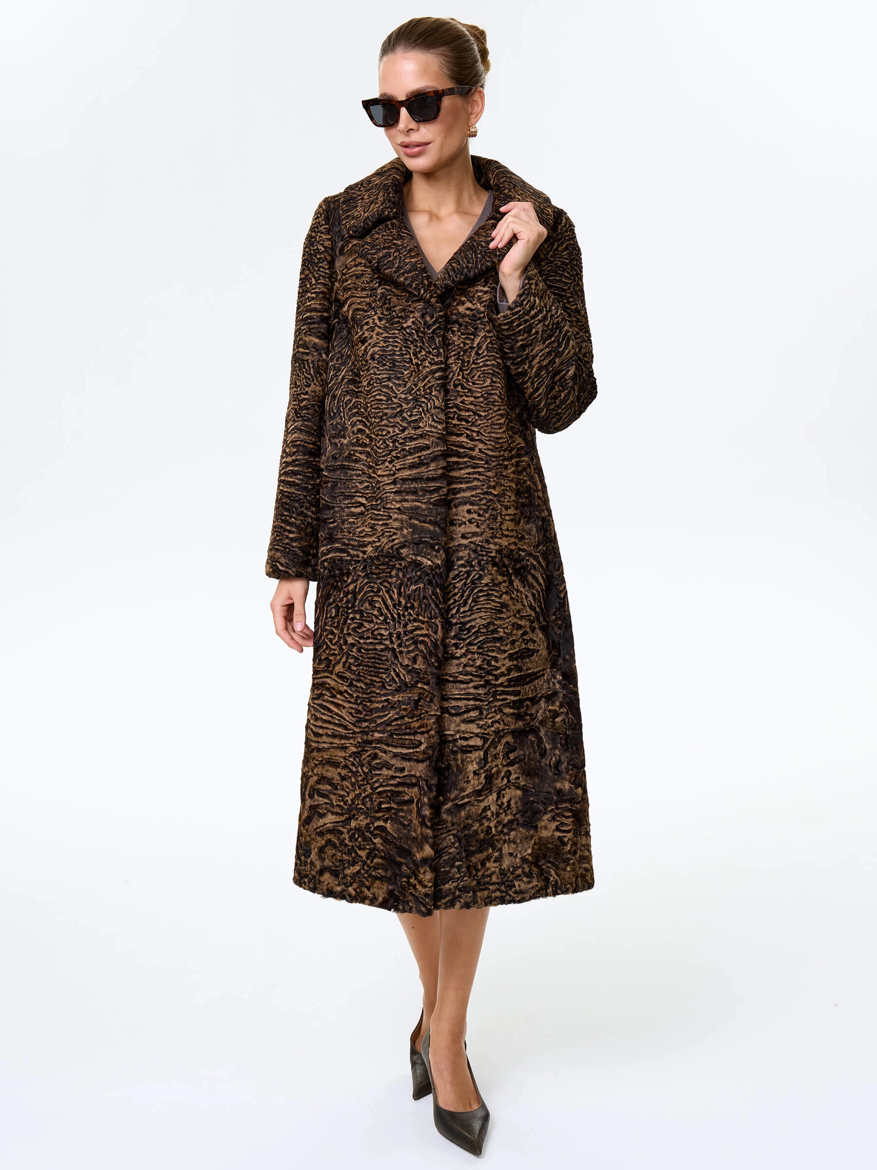 Длинное пальто из меха каракульчи для женщин премиум класса Лола(ав), темно-коричневое, размер 50, артикул 33980