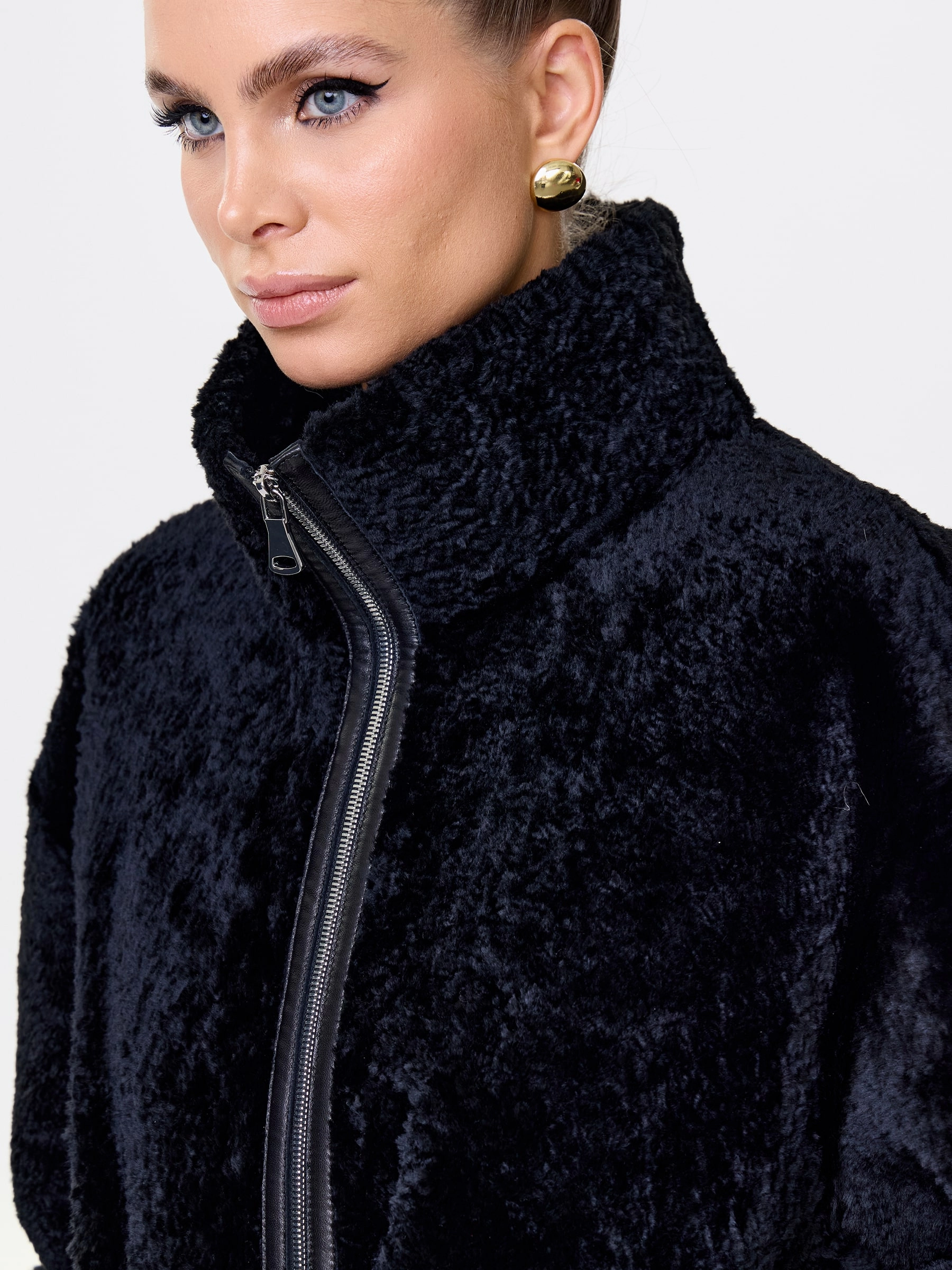 Длинное женское пальто из натуральной овчины астрагана премиум класса 2060, черное, размер 46, артикул 64320