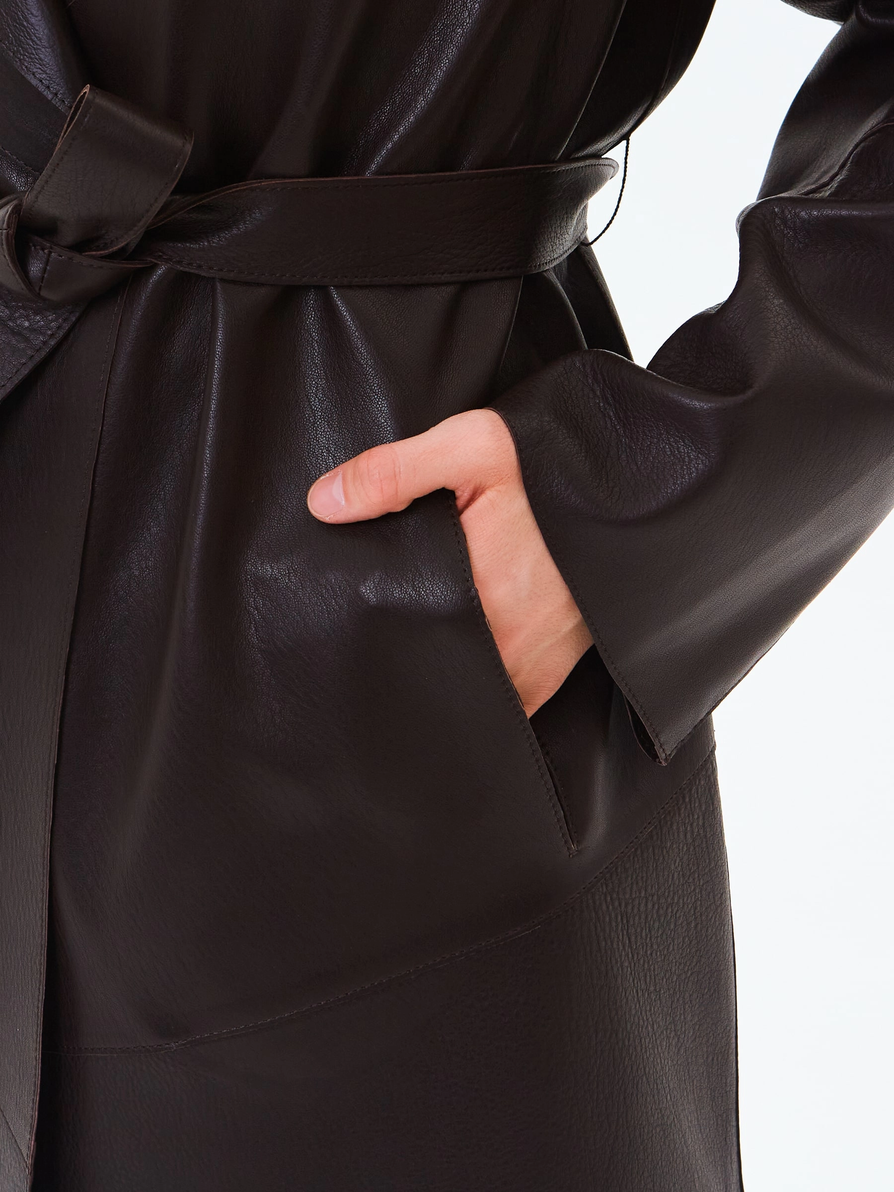 Товар длинный женский кожаный плащ премиум класса 3081, коричневый, размер 50, артикул 24660 выполнен из натуральной кожи с застежкой без застежки. Рассчитан на сезон: весна-лето. Длина изделия 125 см, силуэт прямой.