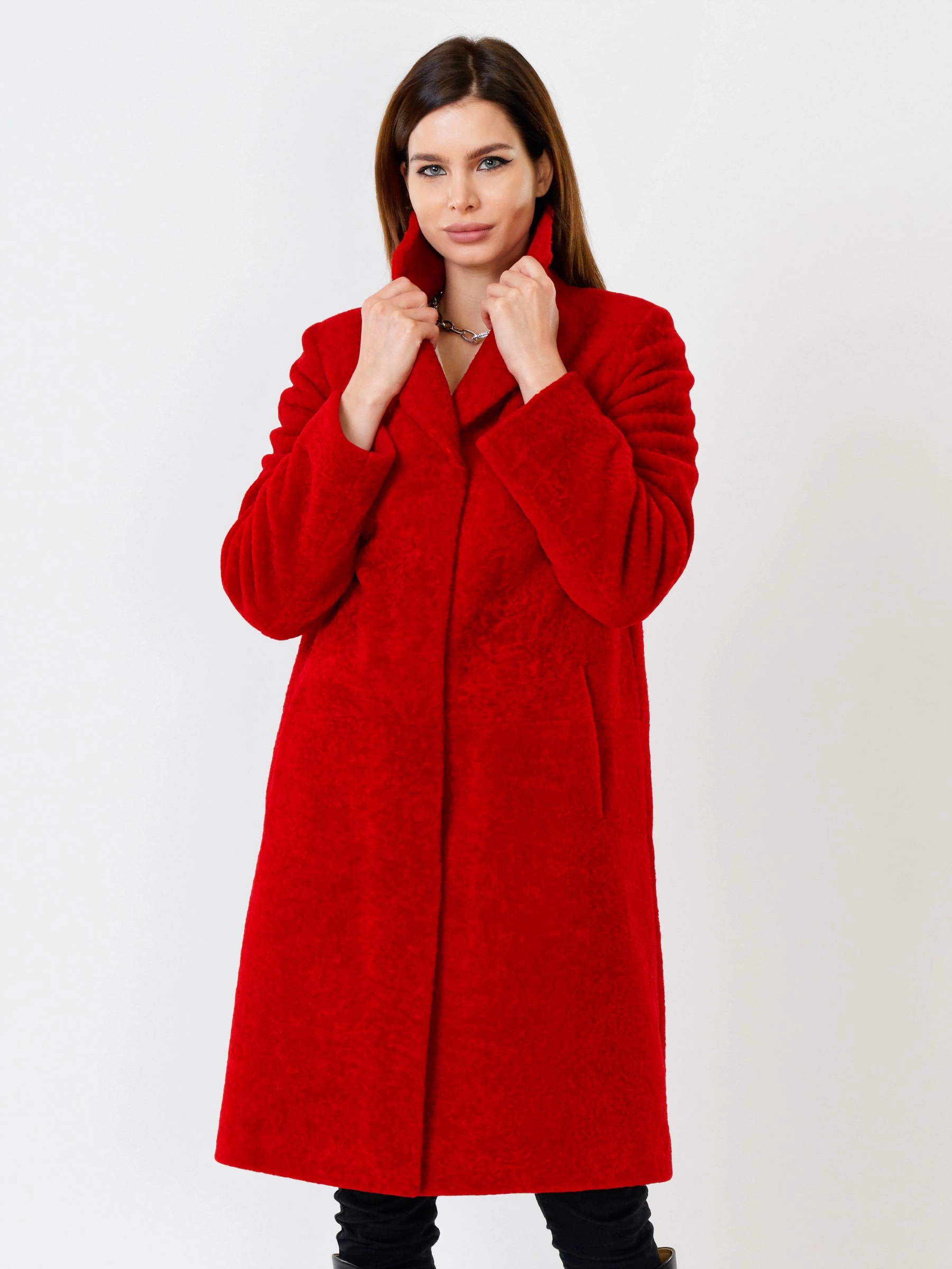 Товар длинная дубленка из астрагана на кнопках для женщин премиум класса 53мех, красная, размер 46, артикул 17530 выполнен из астраган с застежкой кнопки. Рассчитан на сезон: осень-зима. Длина изделия 75-90 см, силуэт прямой.