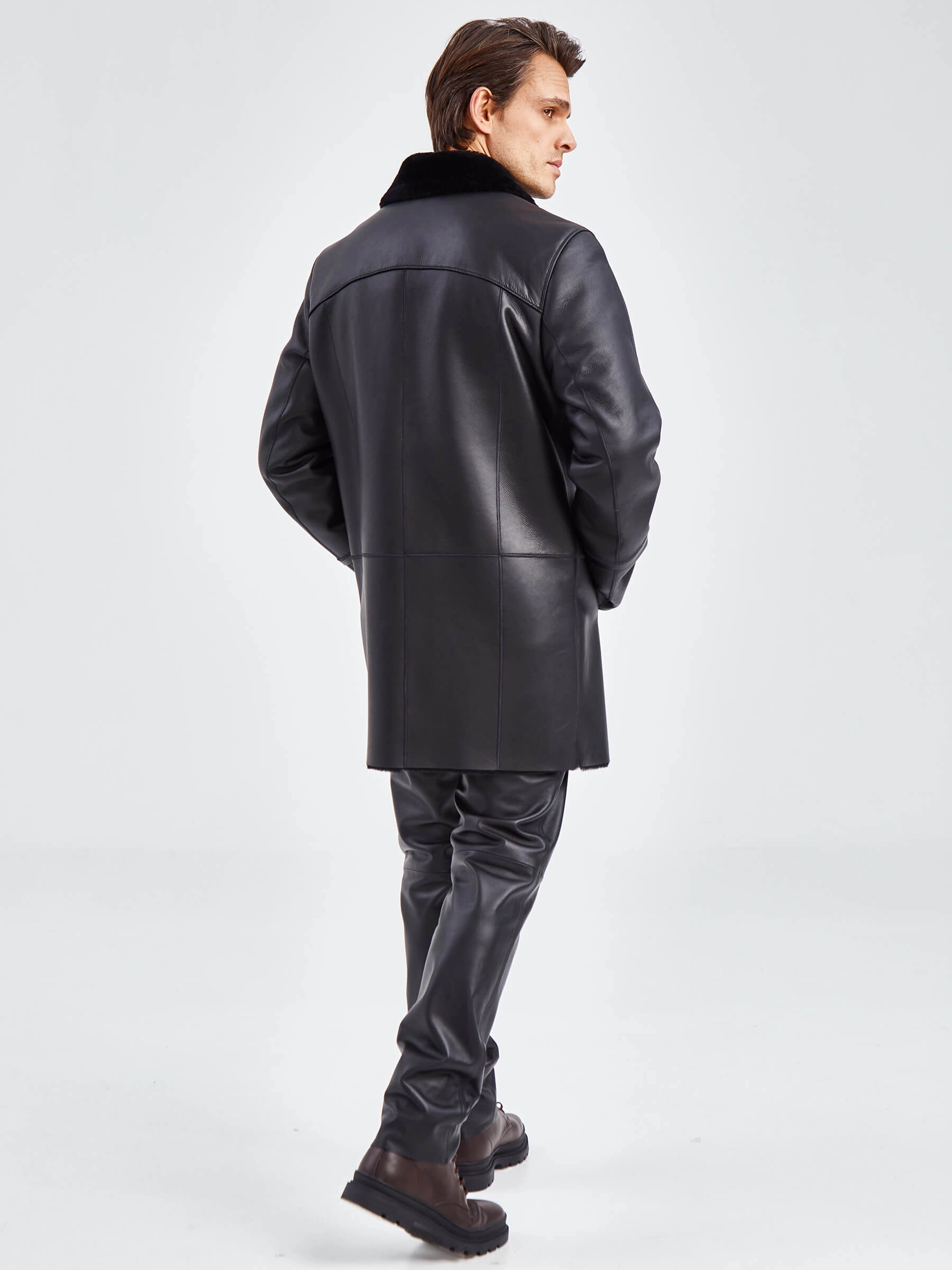 Дубленка классическая мужская премиум класса Леон(пр), черная, размер 50, артикул 71390