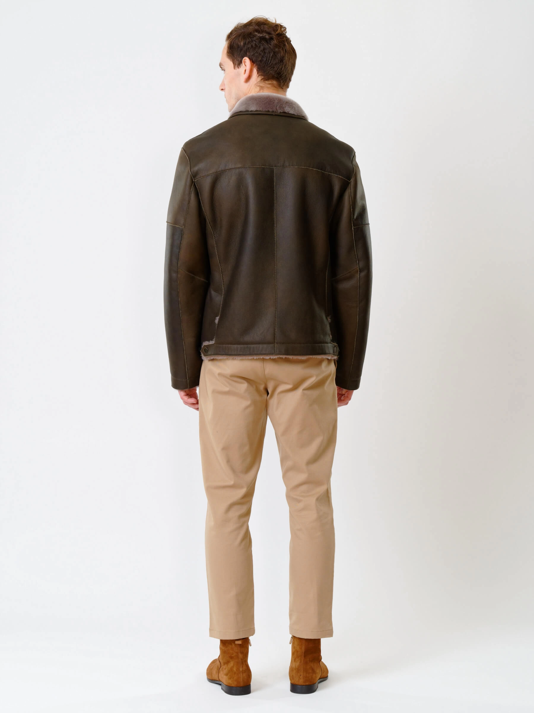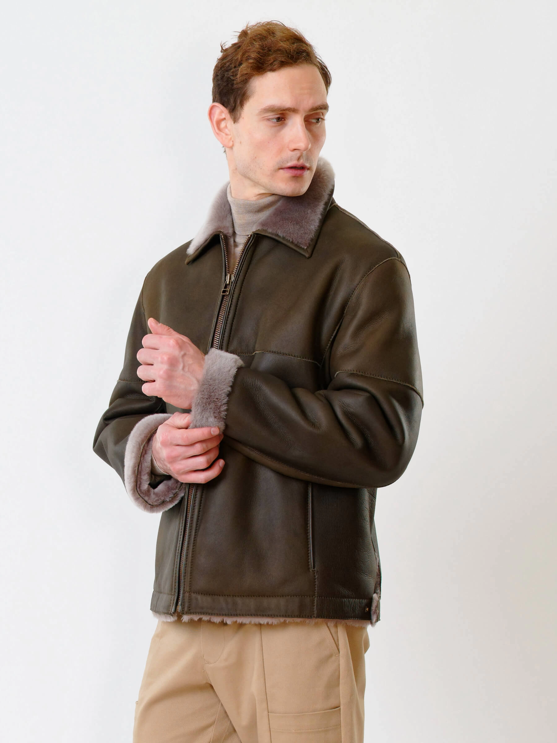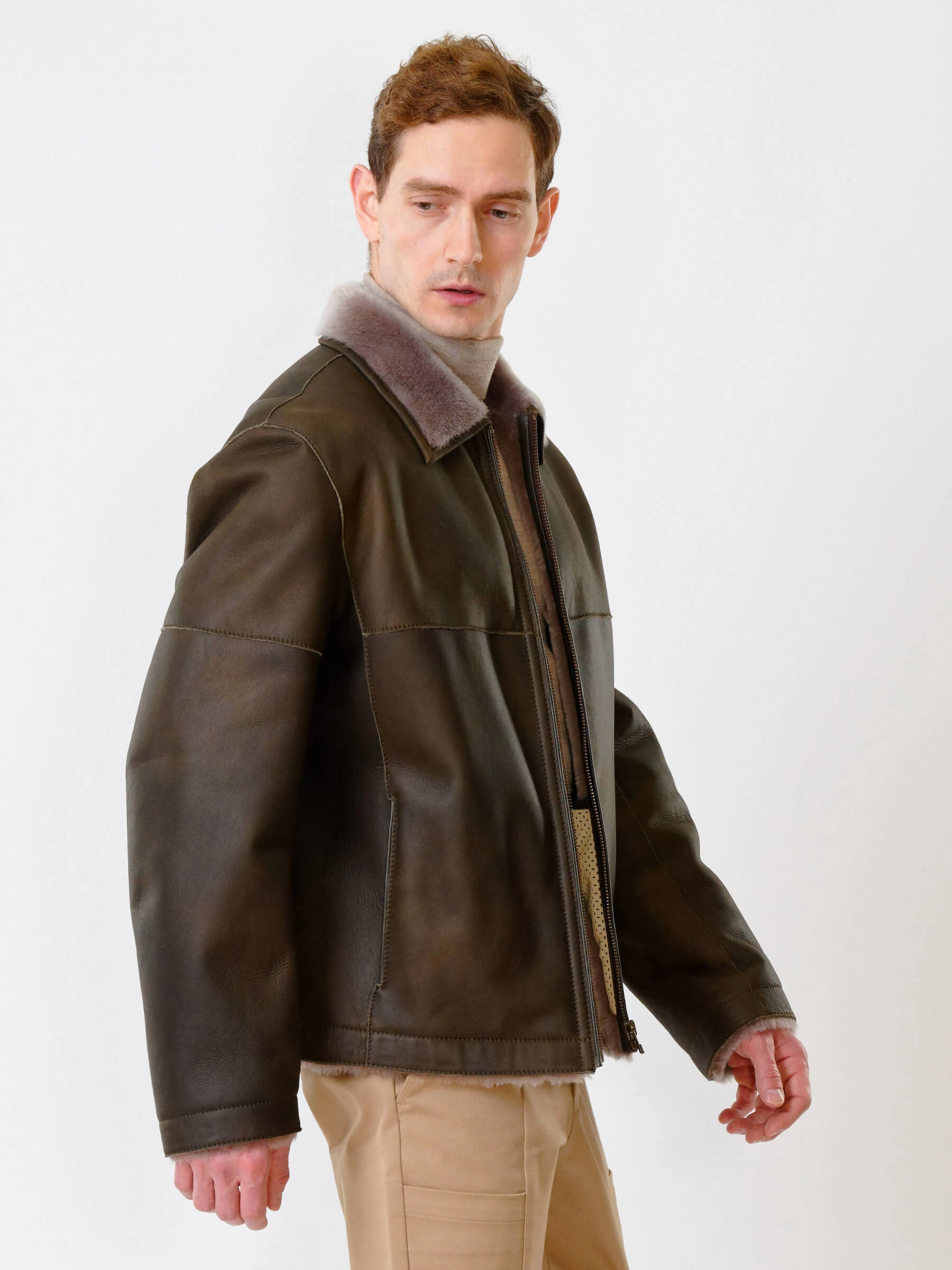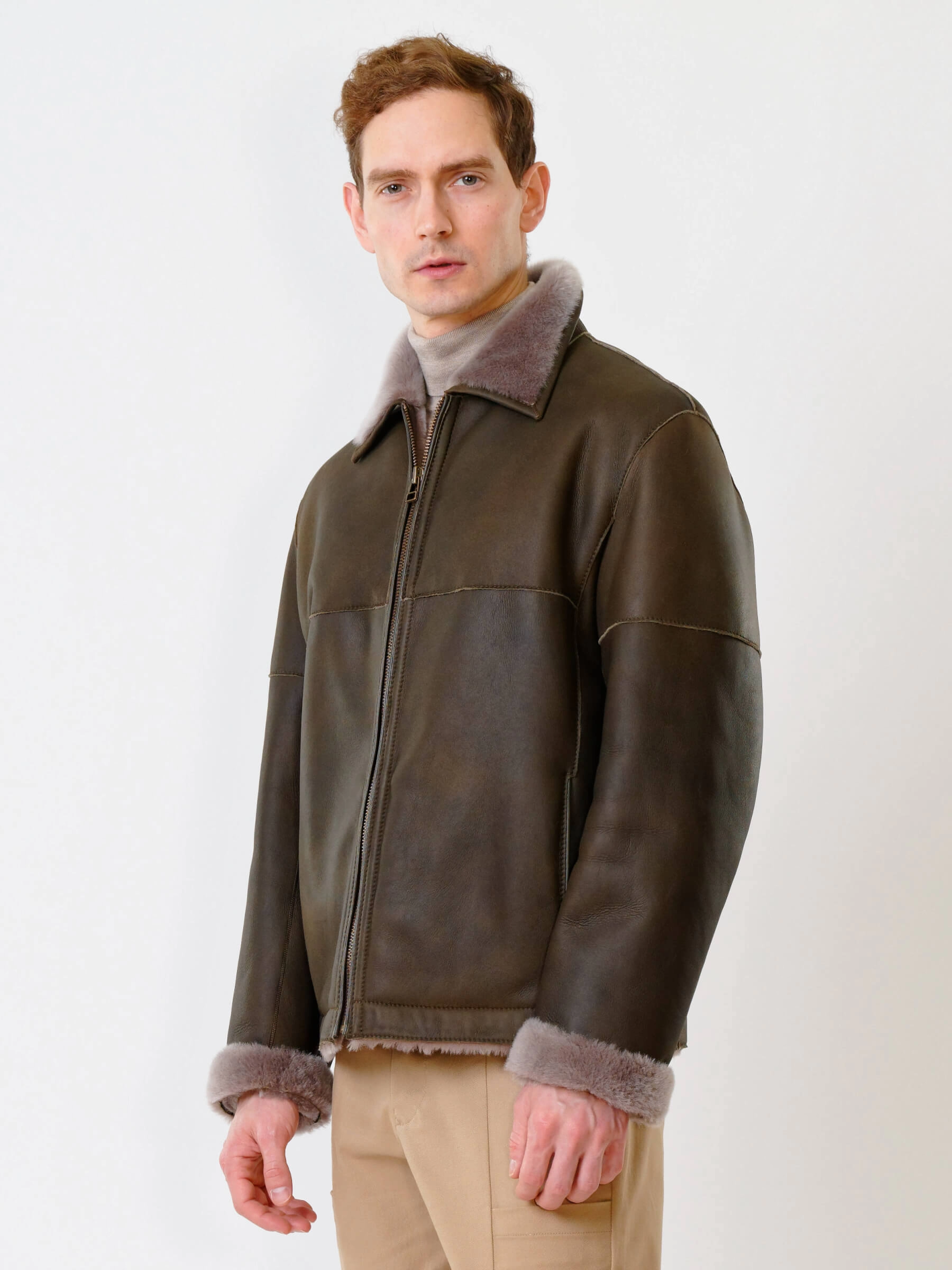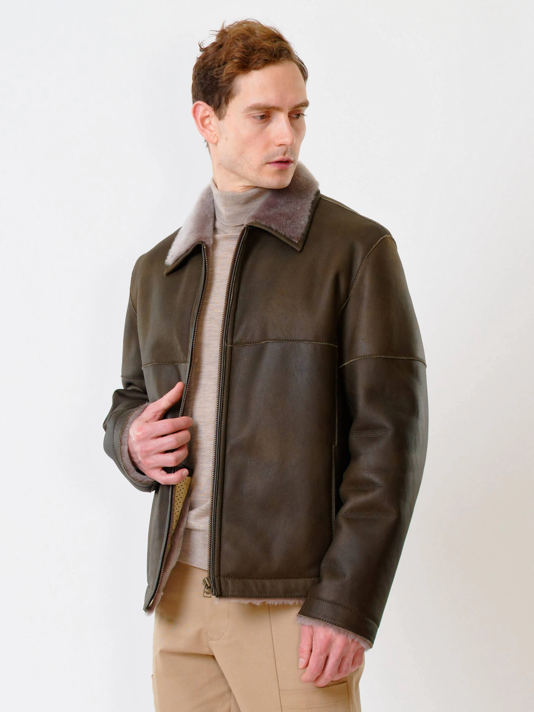 Короткая мужская дубленка 140, оливковая, размер 44, артикул 70230