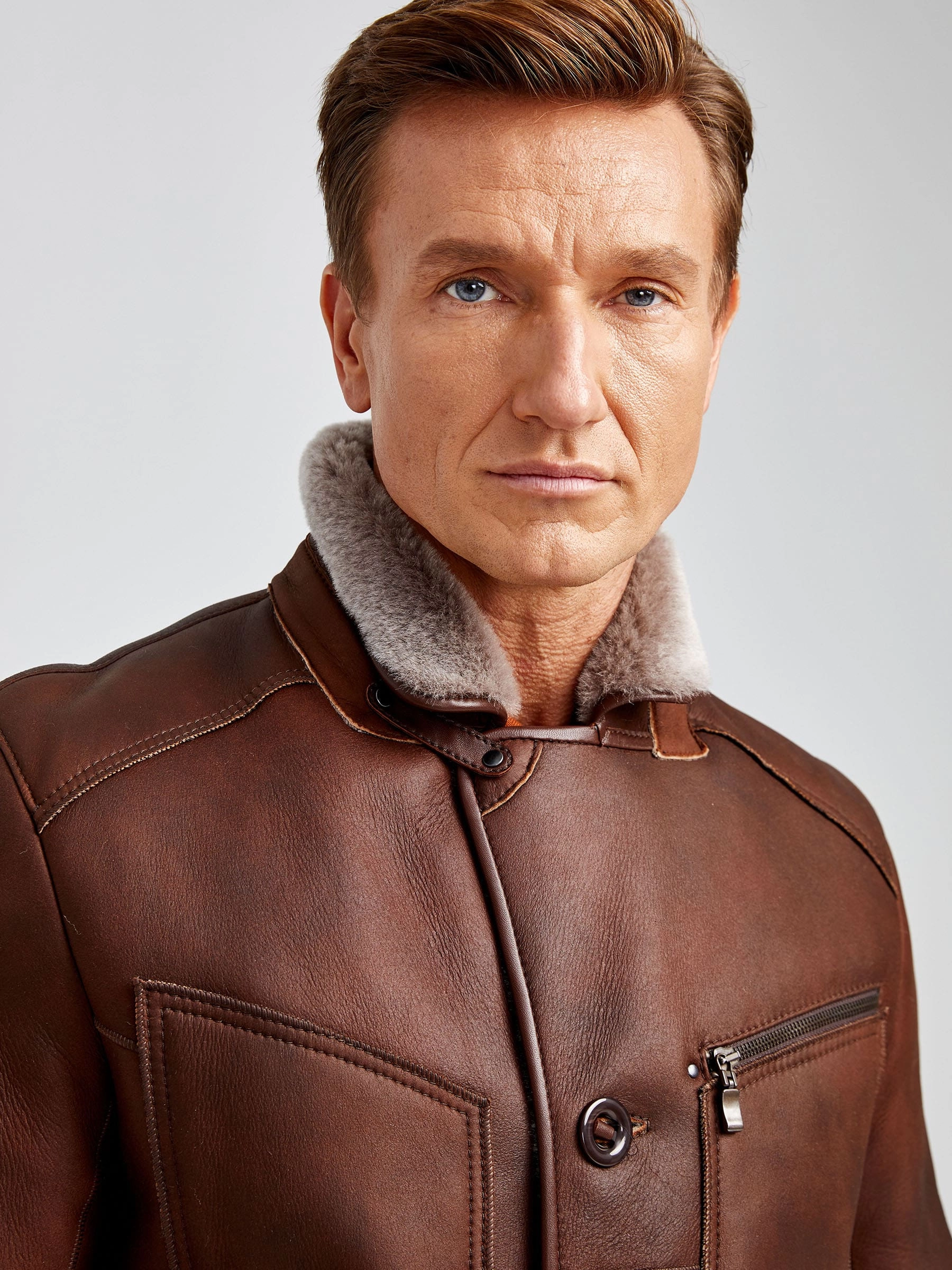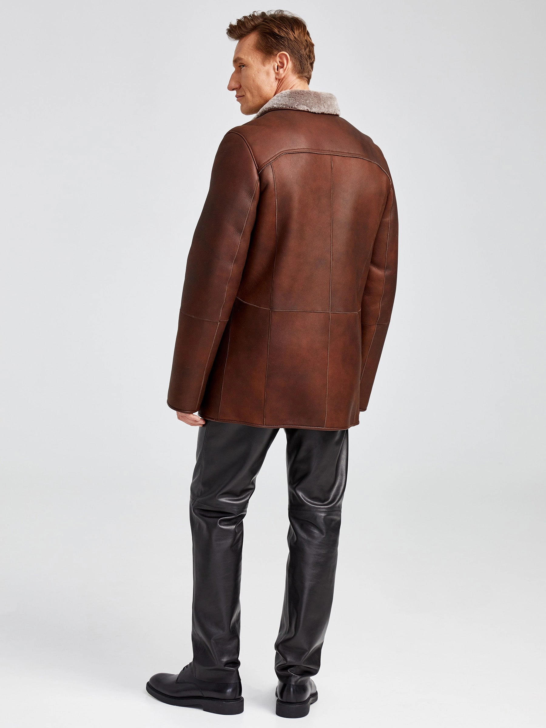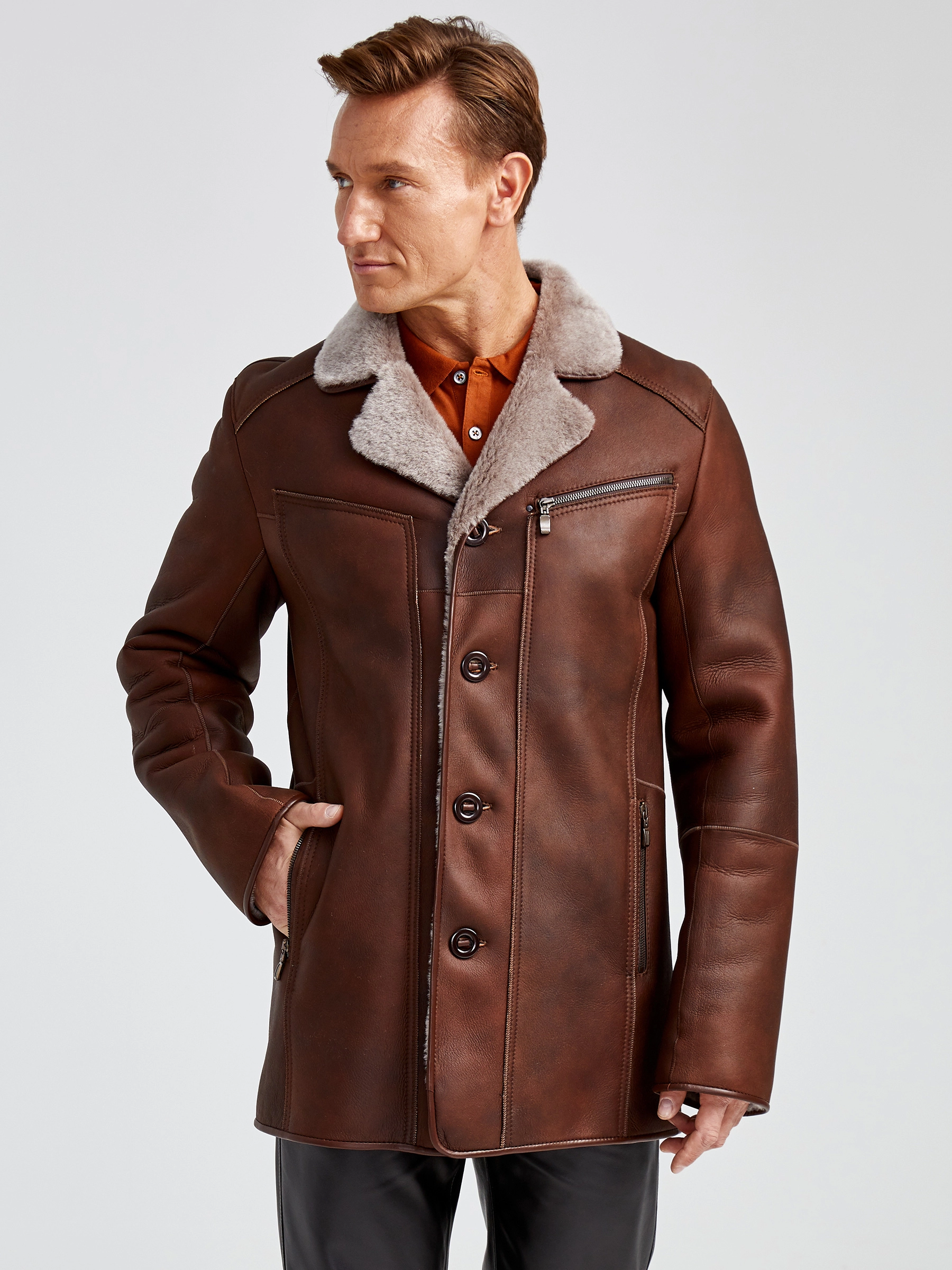 Классическая мужская дубленка 402, виски, размер 50, артикул 70731