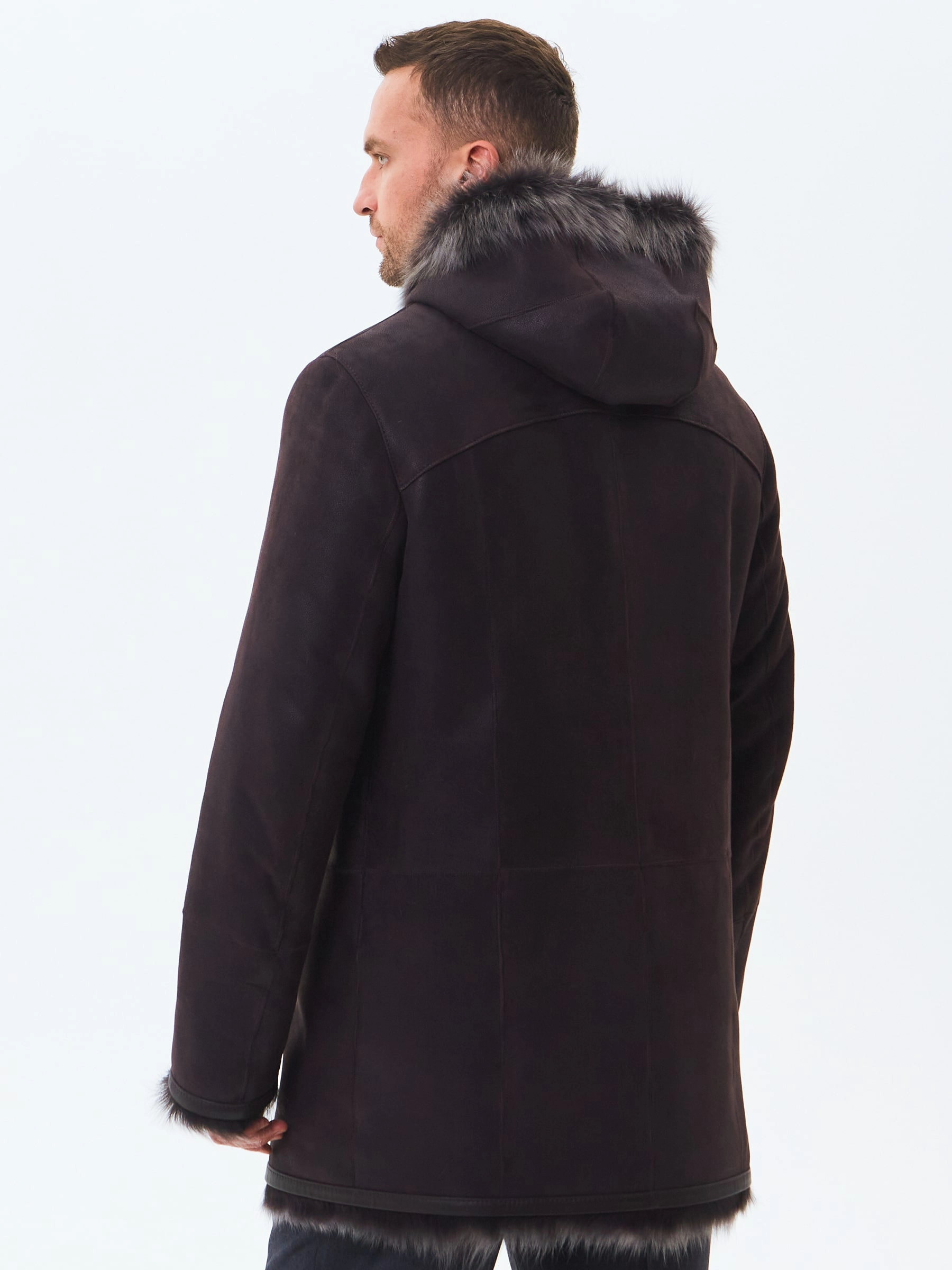 Великолепная двубортная мужская дублёнка из тосканской овчины. Удобный капюшон. Потрясающее качество материалов. Красивый мех очень густой и высокий, поэтому дублёнка великолепно греет в любой мороз. Новейшее износостойкое защитное покрытие. Минимальный вес. Идеальные швы, продуманные элементы. Аккуратность во всей работе. Чёткая и очень удобная посадка по фигуре. Премиальный уровень.