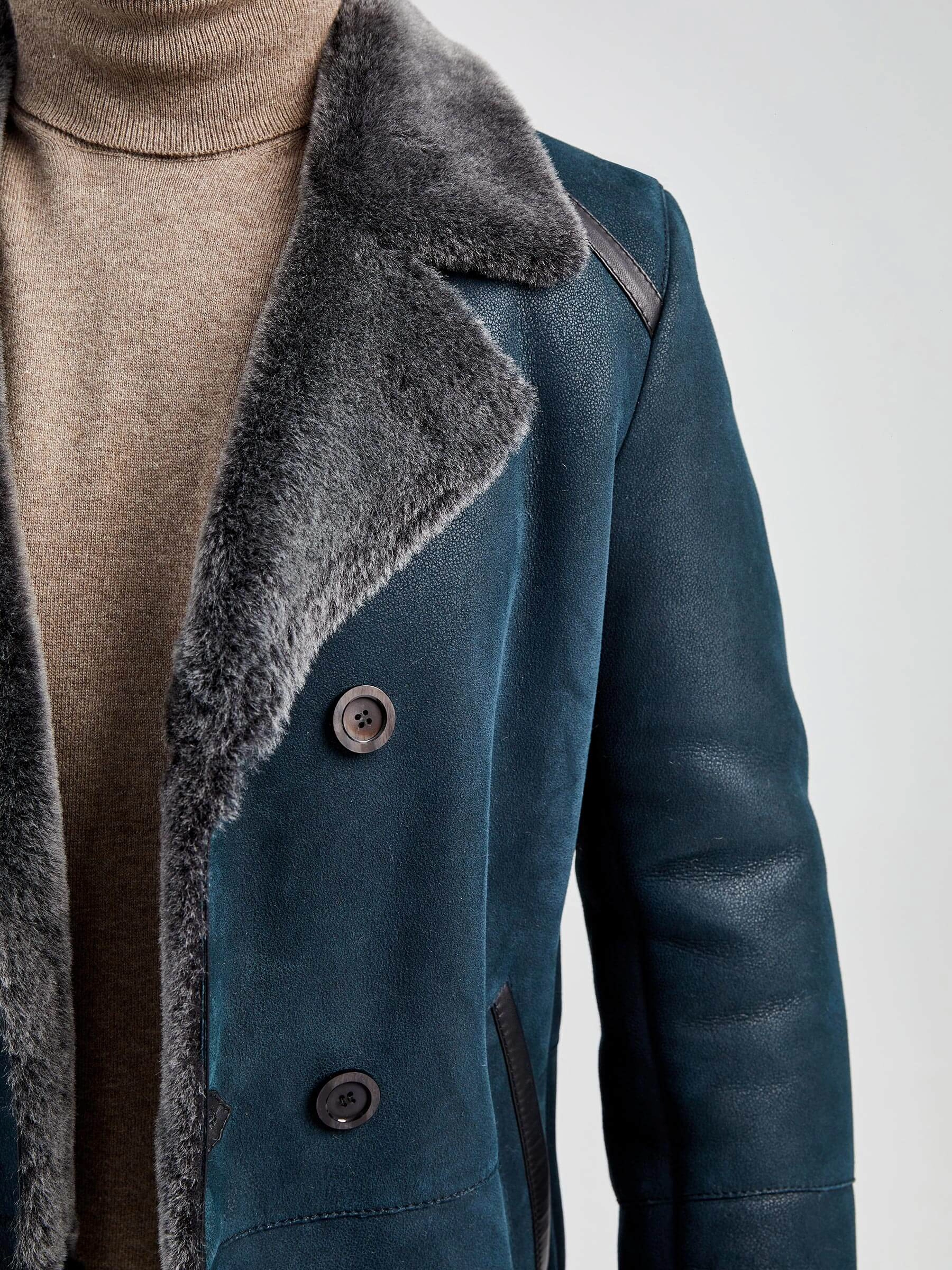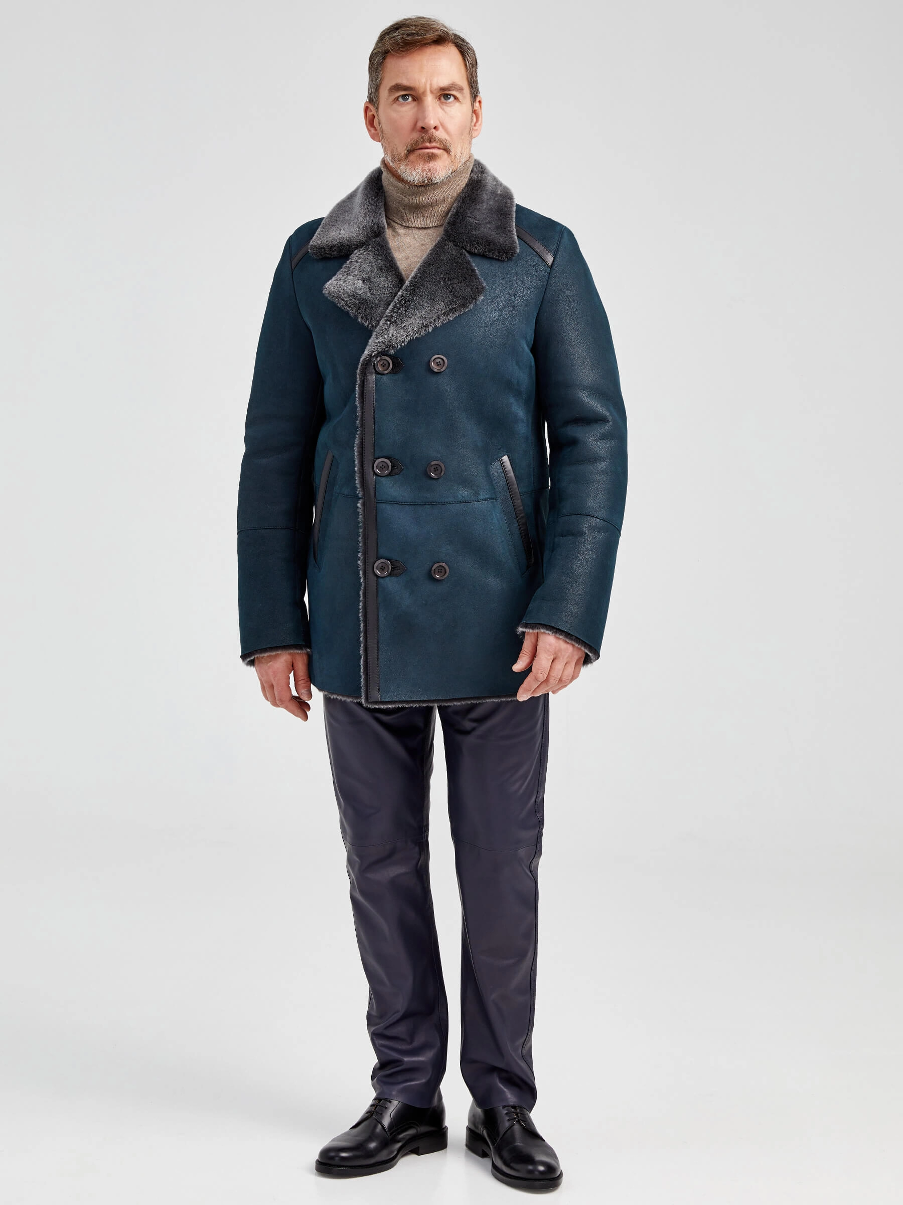 Дубленка двубортная классическая мужская 422, синяя, размер 60, артикул 70882
