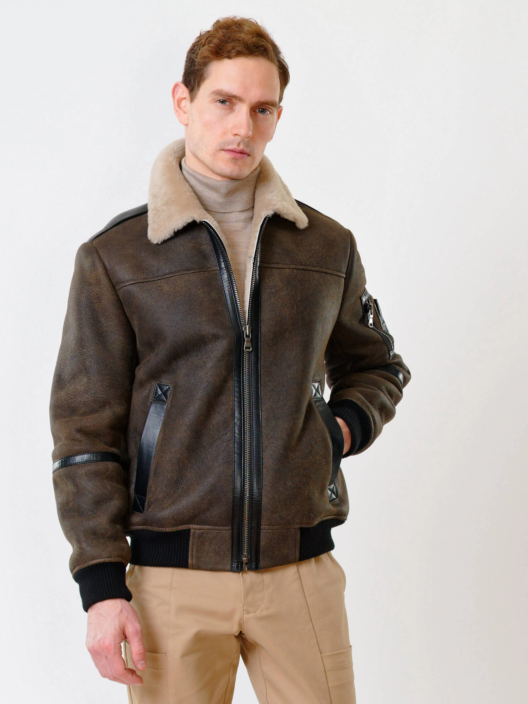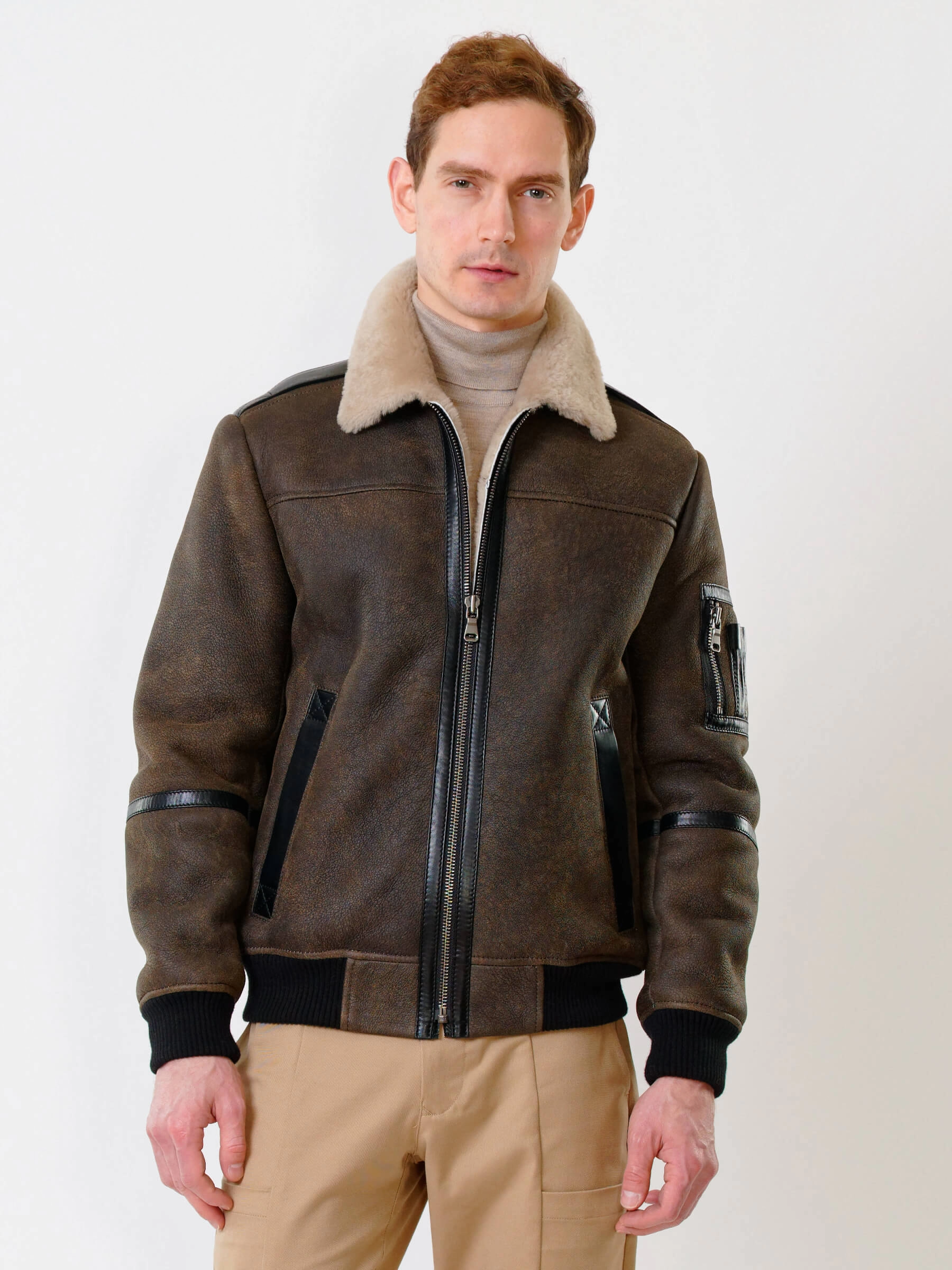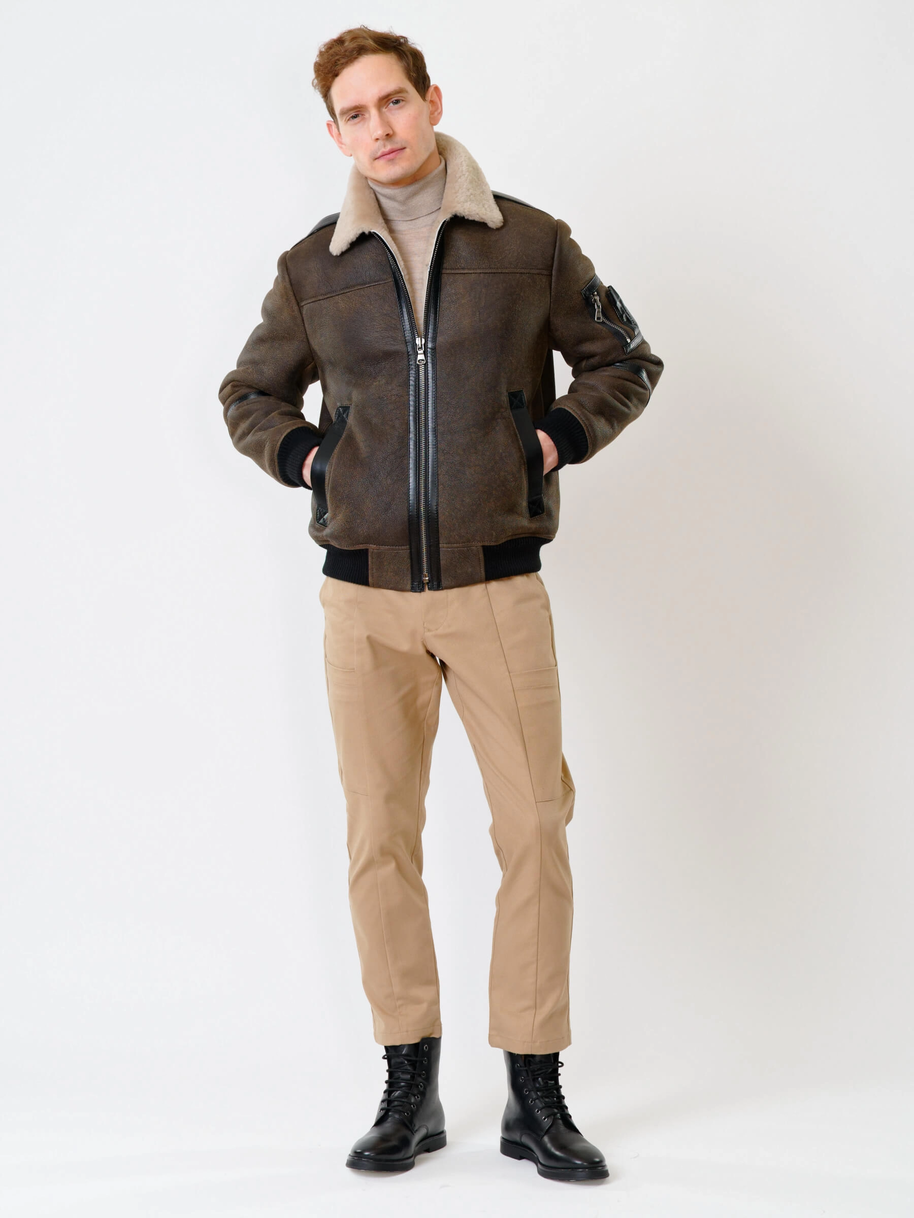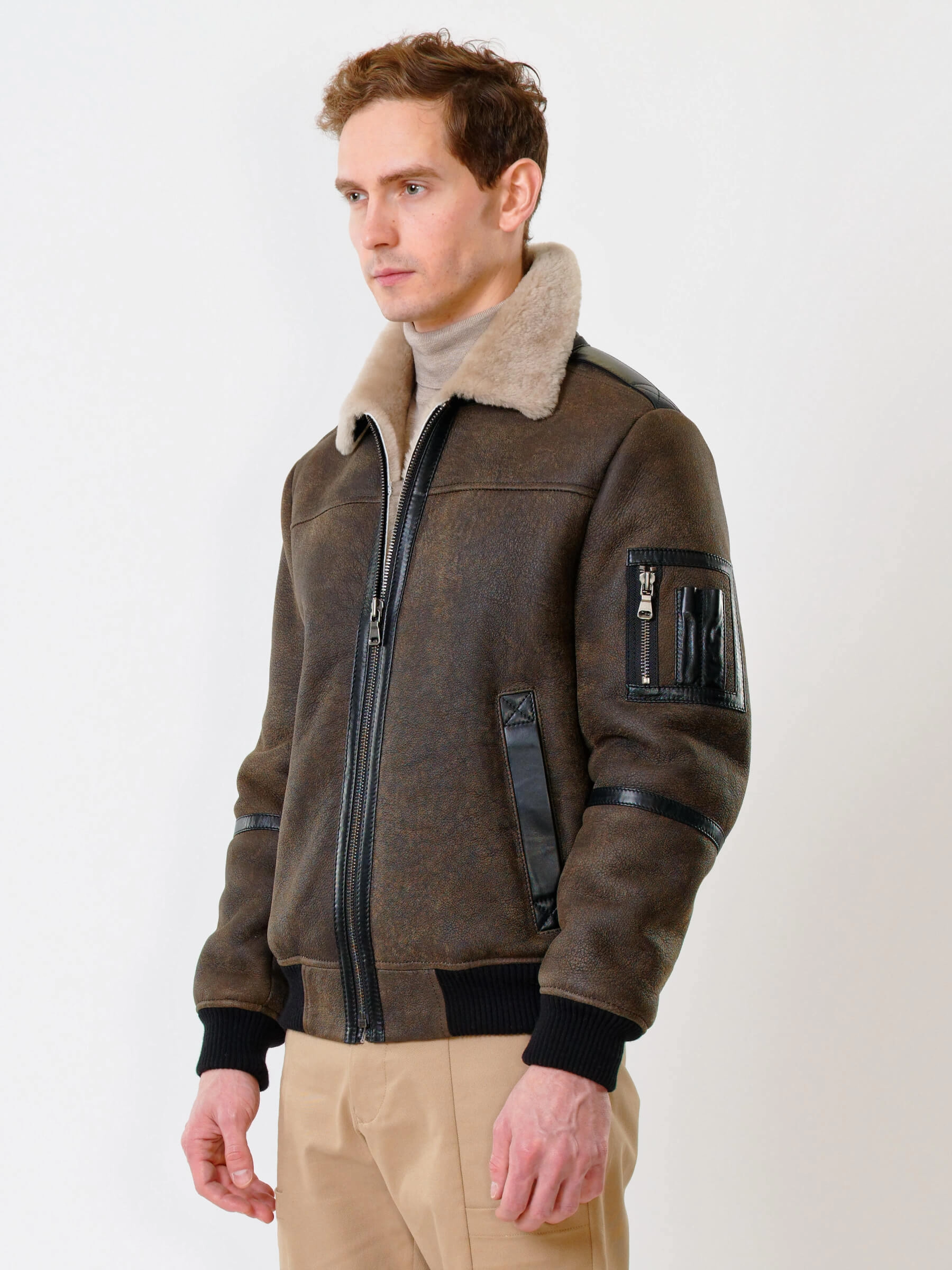 Дублёнка-авиатор. Специальная технология стирки овчины придает поверхности дублёнки повышенную износостойкость. Максимально густой мех. Минимальный вес. Предусмотрены внутренние карманы для документов. Безупречная работа наших портных. Комфортная посадка по фигуре. Великолепная свобода движений.