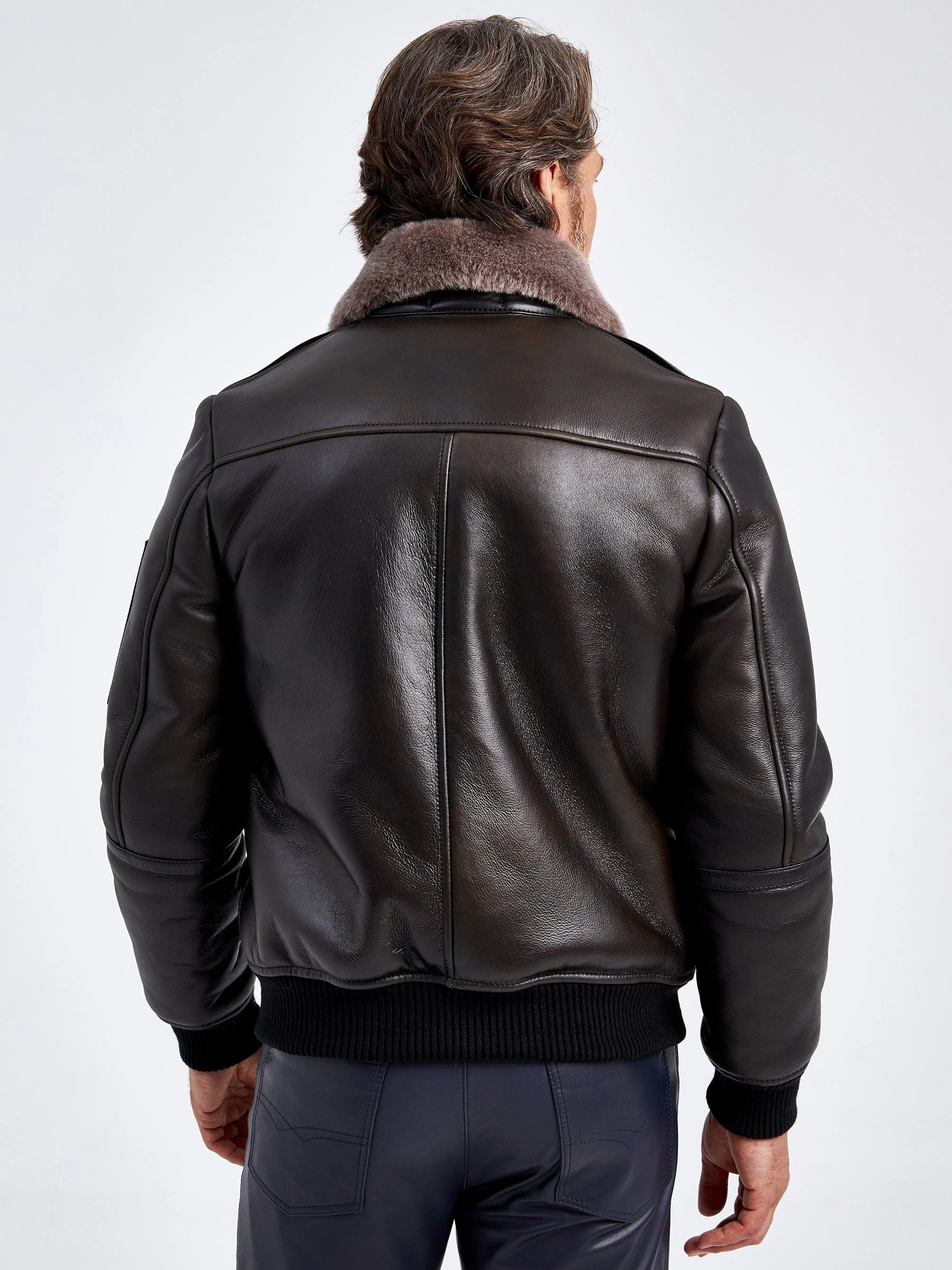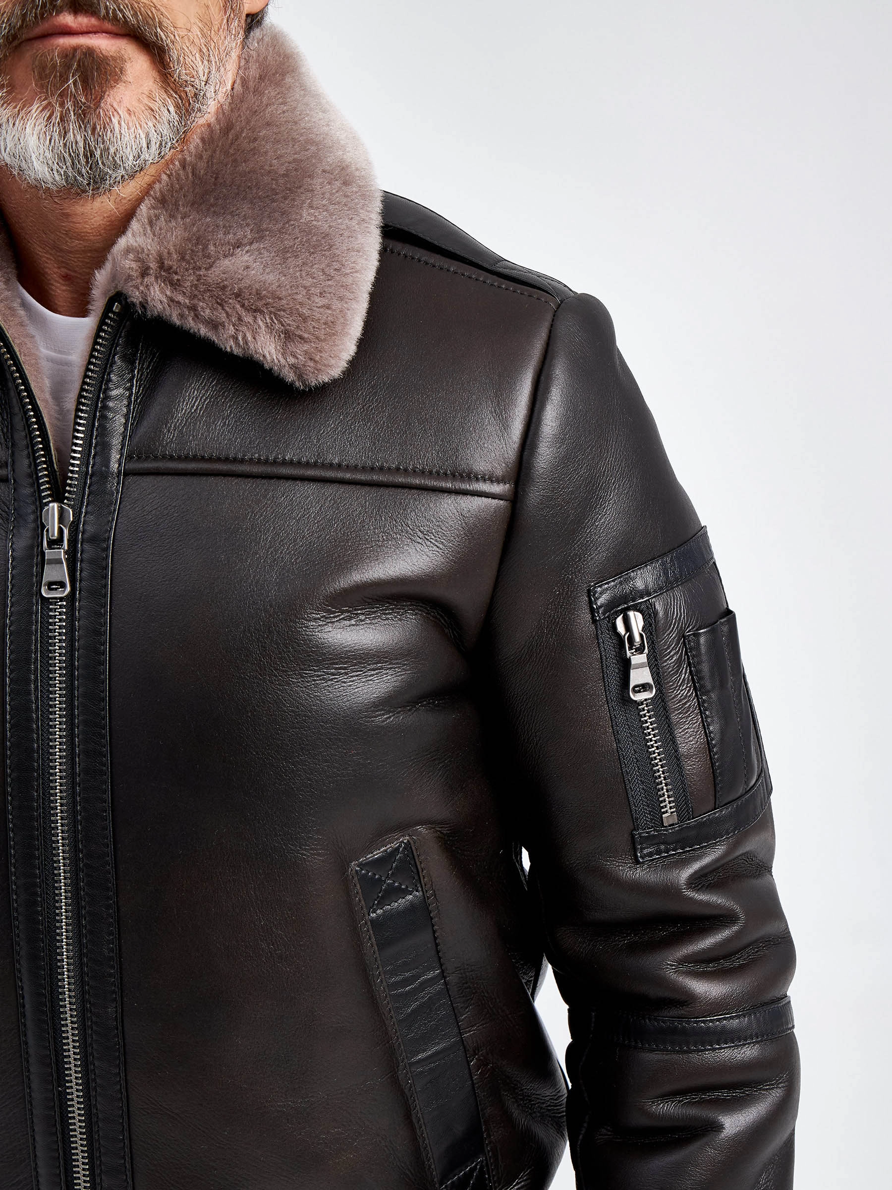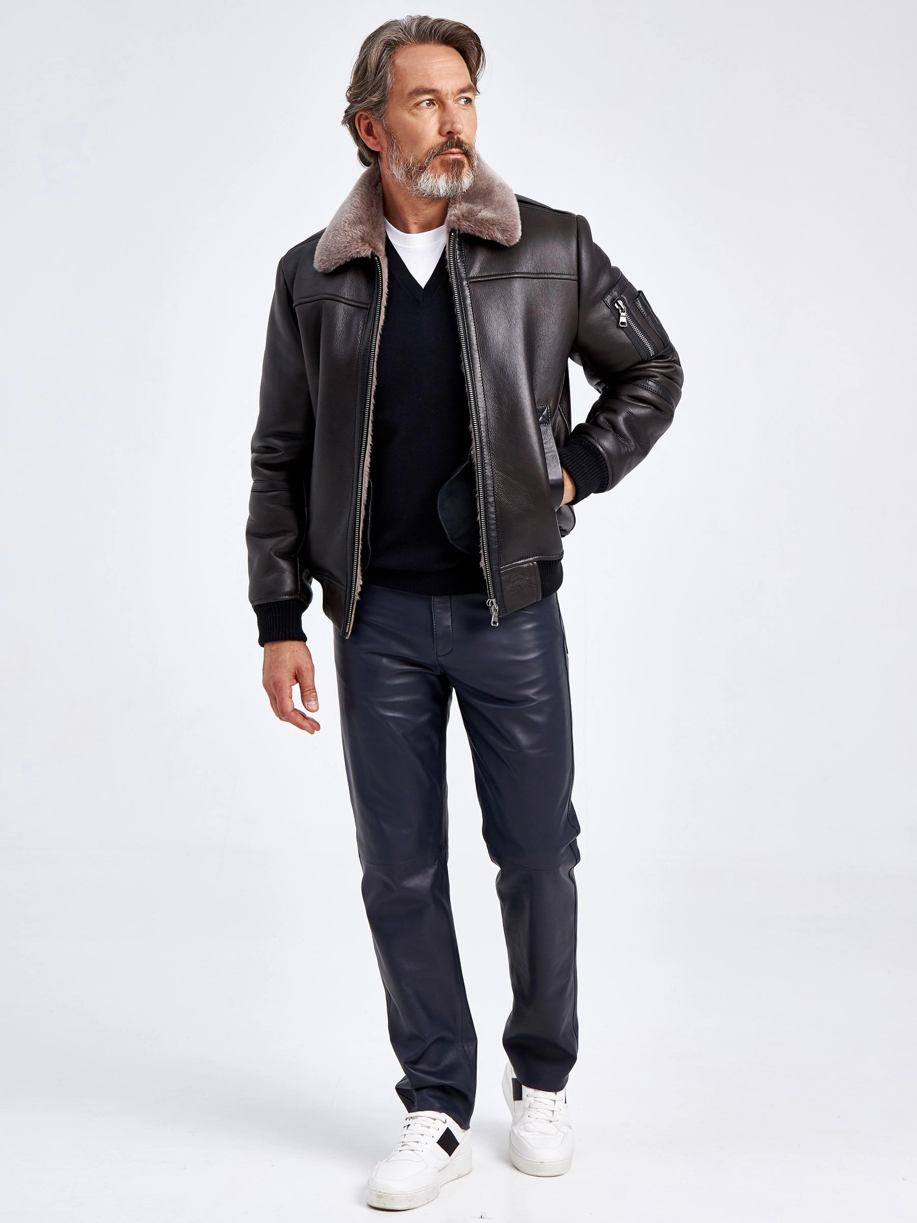 Дублёнка-авиатор. Специальная технология стирки овчины придает поверхности дублёнки повышенную износостойкость. Максимально густой мех. Минимальный вес. Предусмотрены внутренние карманы для документов. Безупречная работа наших портных. Комфортная посадка по фигуре. Великолепная свобода движений.