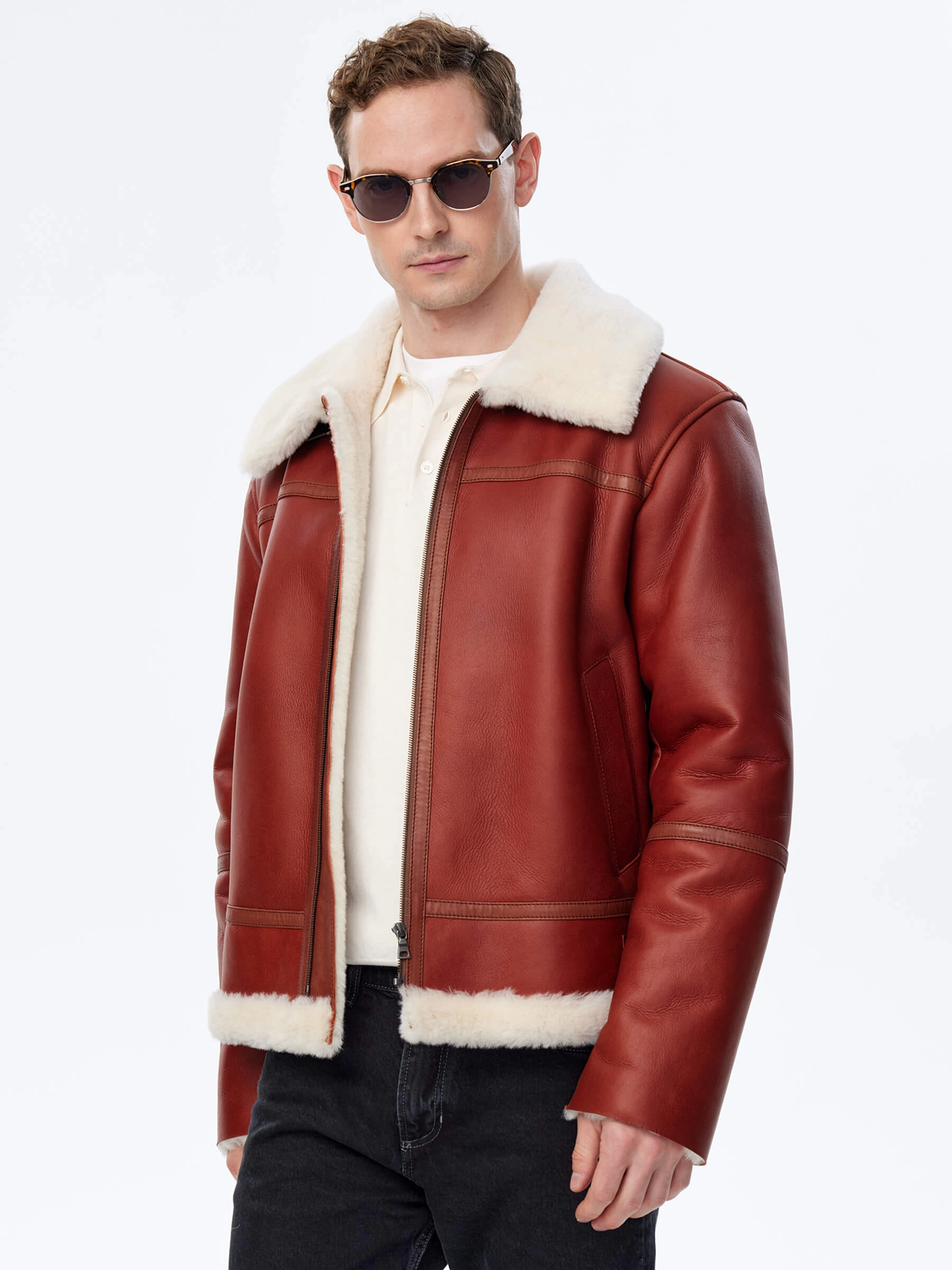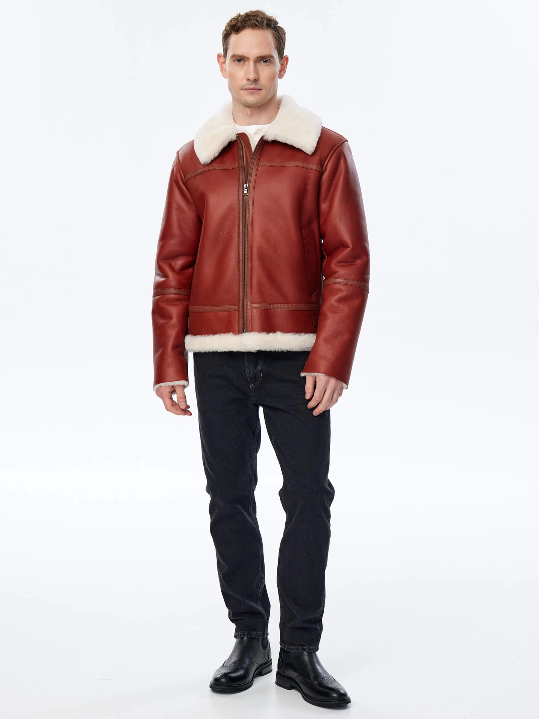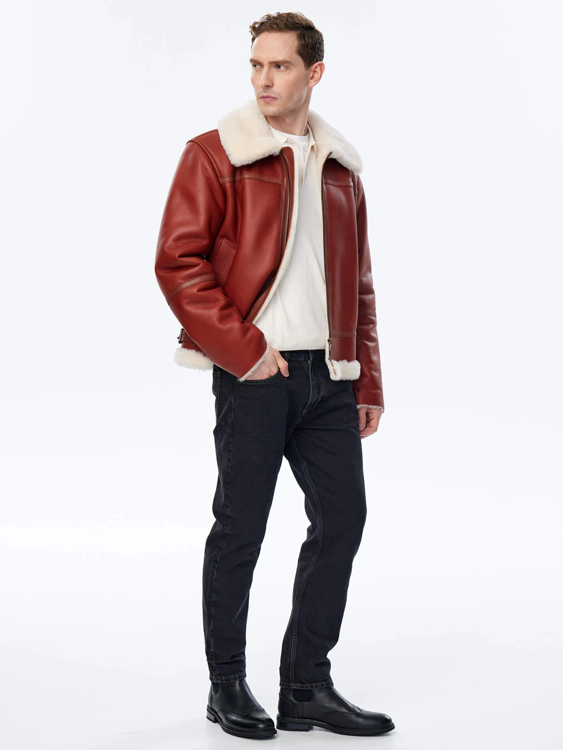 Дублёнка-авиатор. Специальная технология стирки овчины придает поверхности дублёнки повышенную износостойкость. Максимально густой мех. Минимальный вес. Предусмотрены внутренние карманы для документов. Безупречная работа наших портных. Комфортная посадка по фигуре. Великолепная свобода движений.