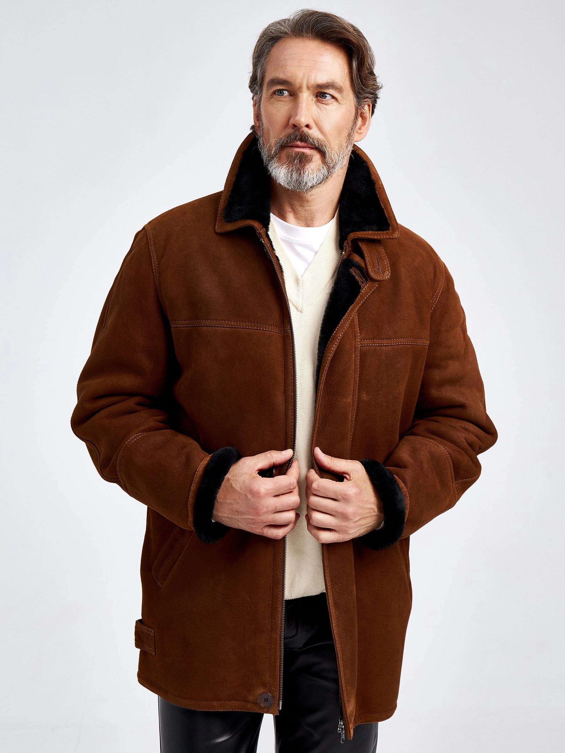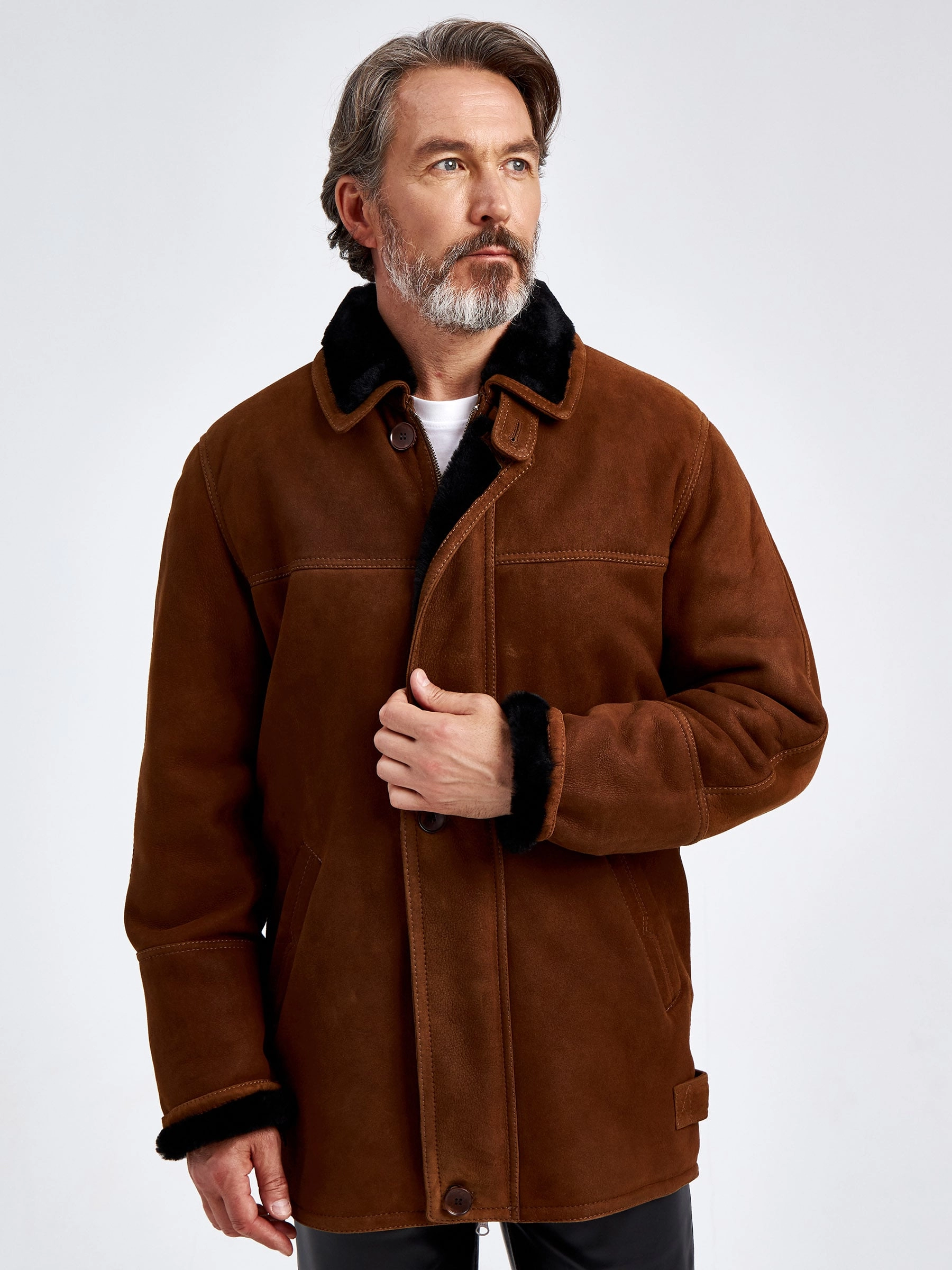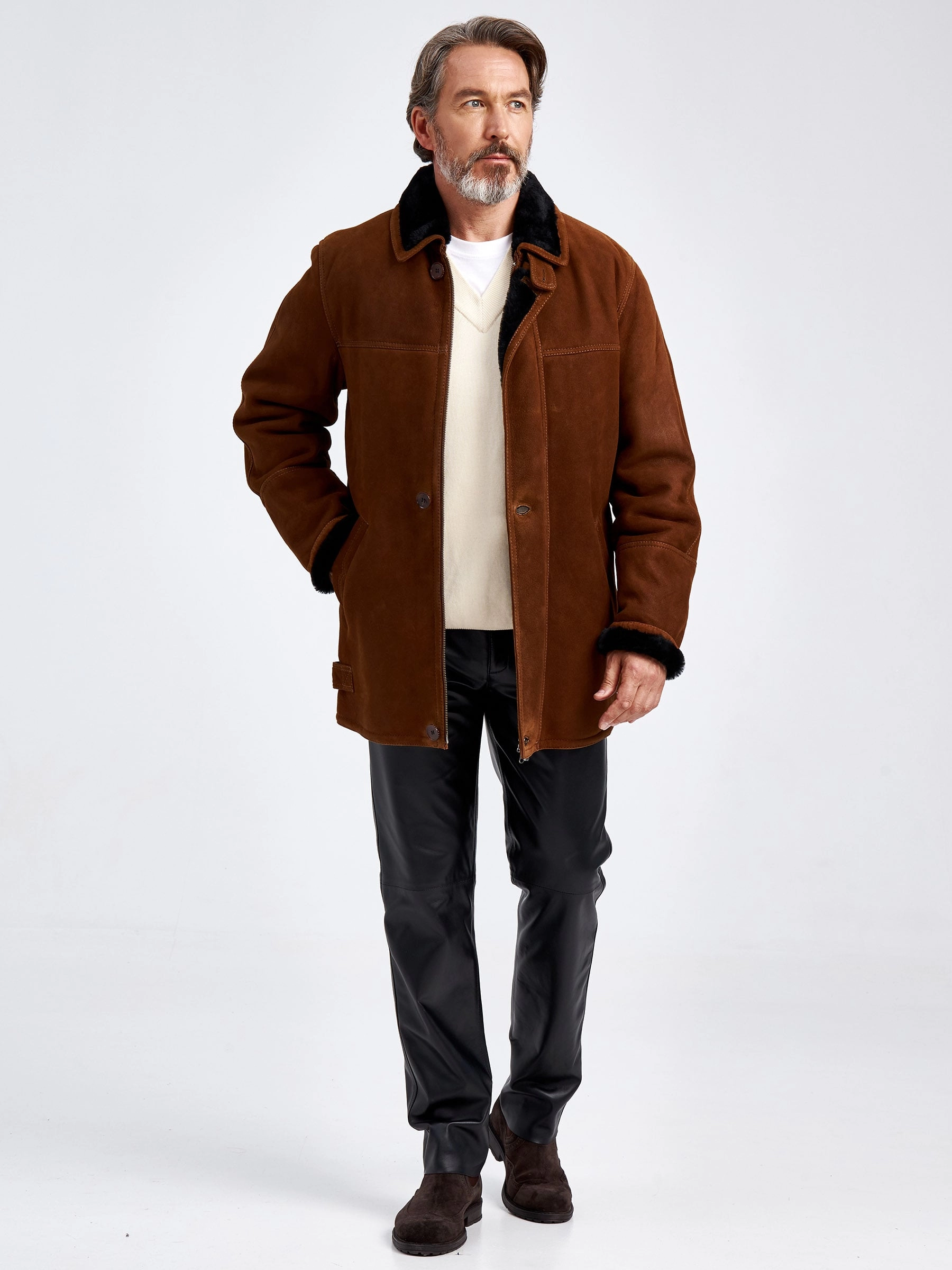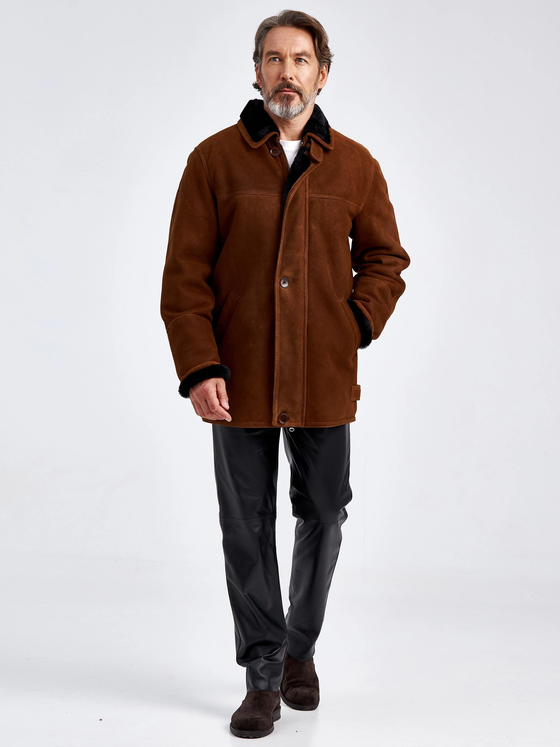 Товар дубленка замшевая мужская 86152, коричневая, размер 46, артикул 70780 выполнен из овчина "мерино" с застежкой молния. Рассчитан на сезон: осень-зима. Длина изделия 75-90 см, силуэт прямой.