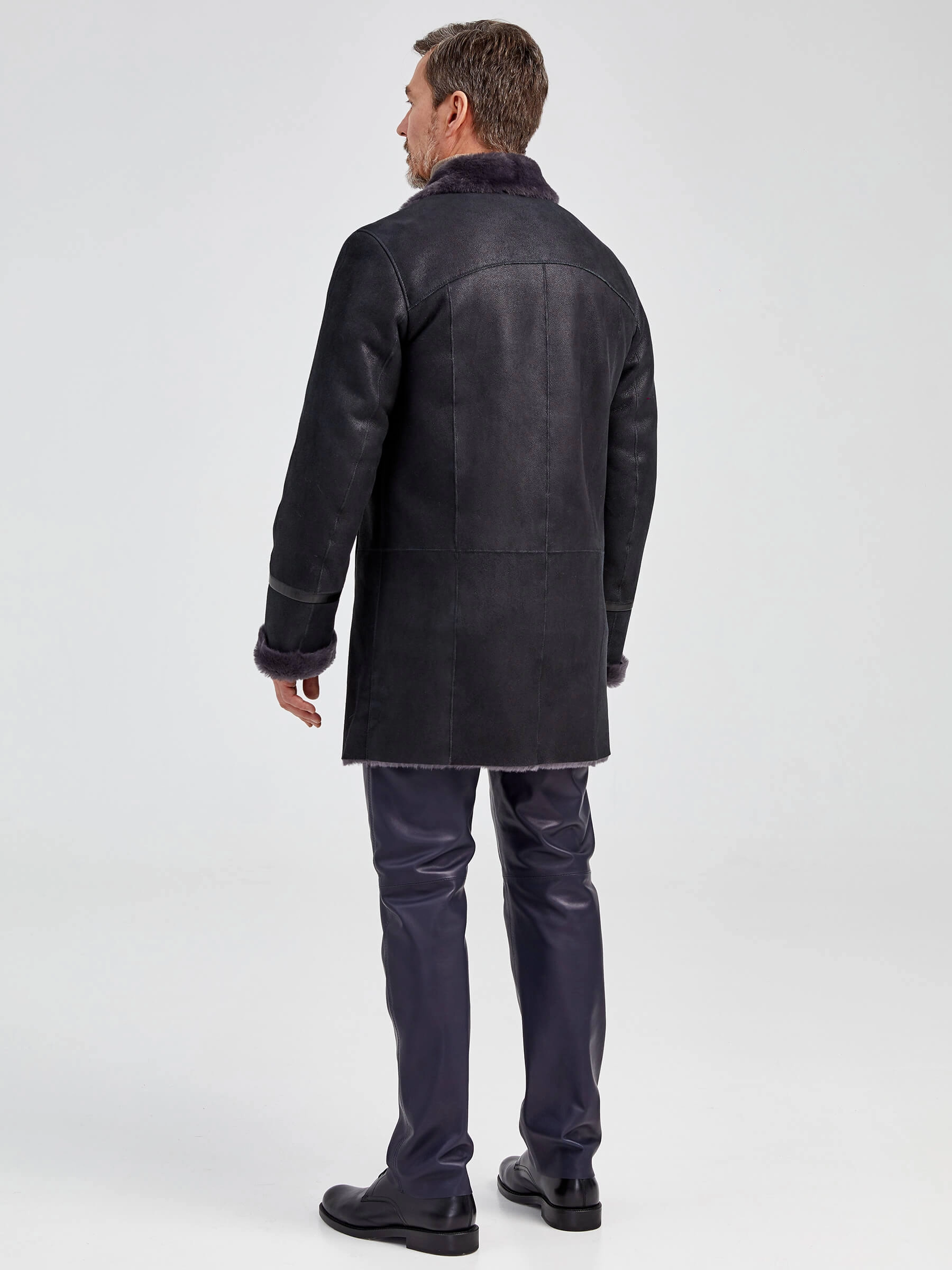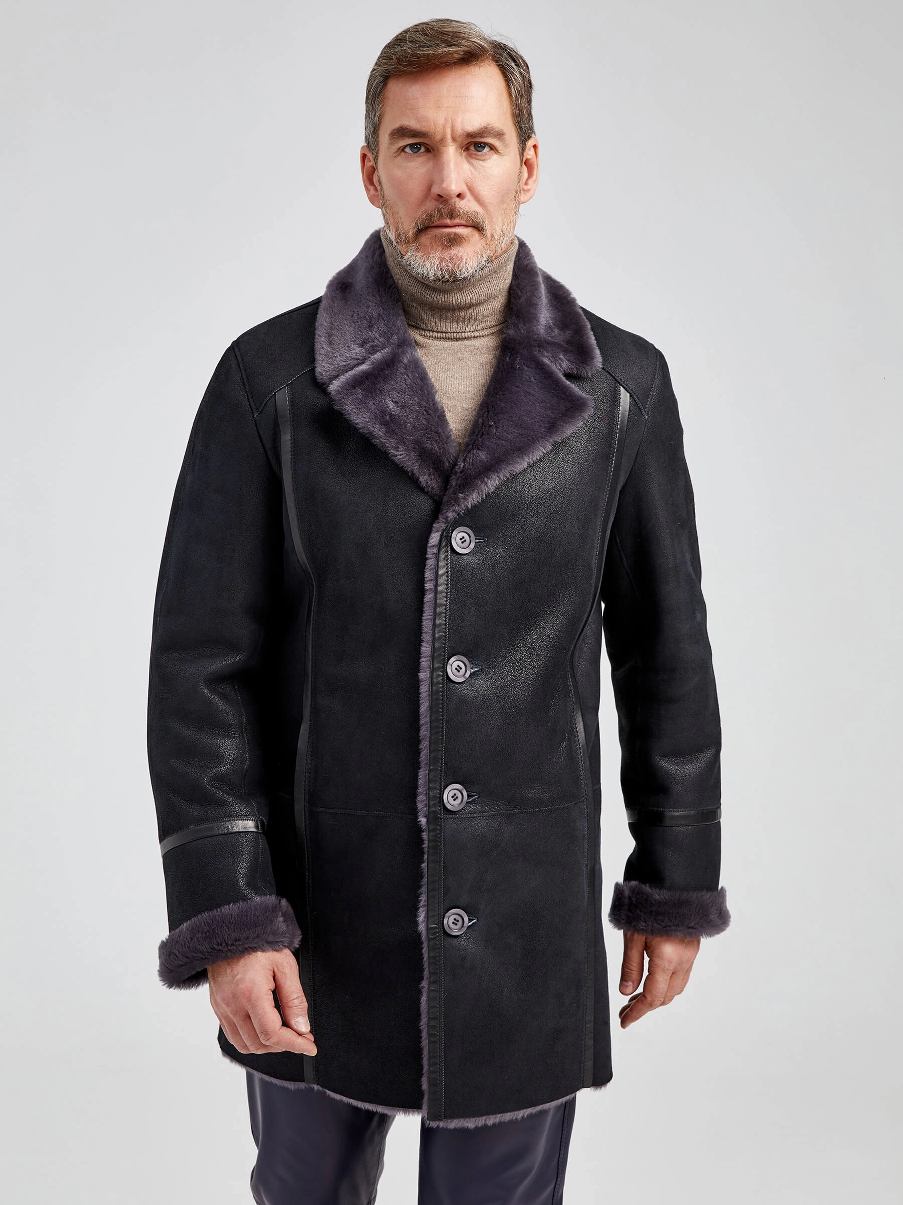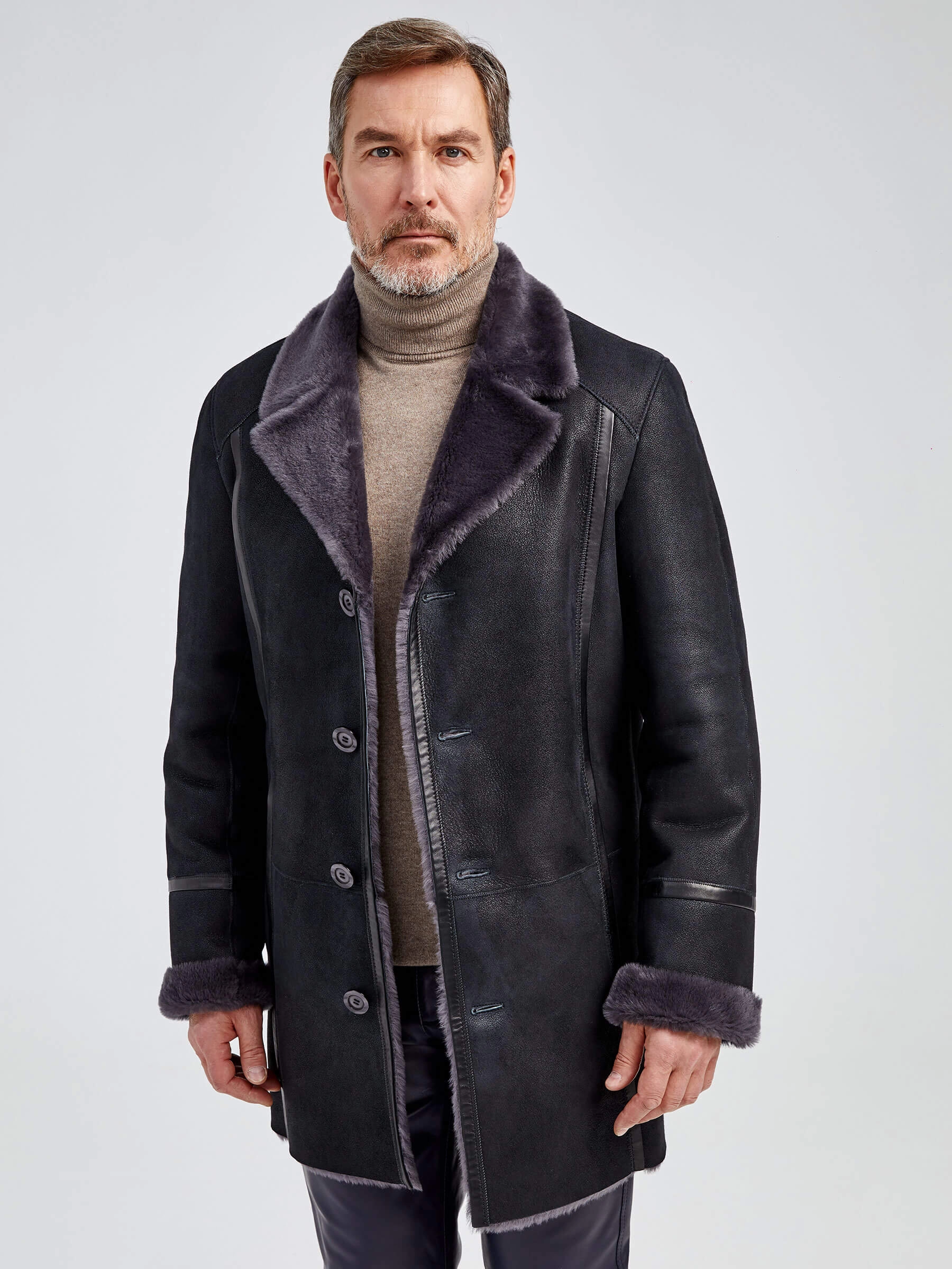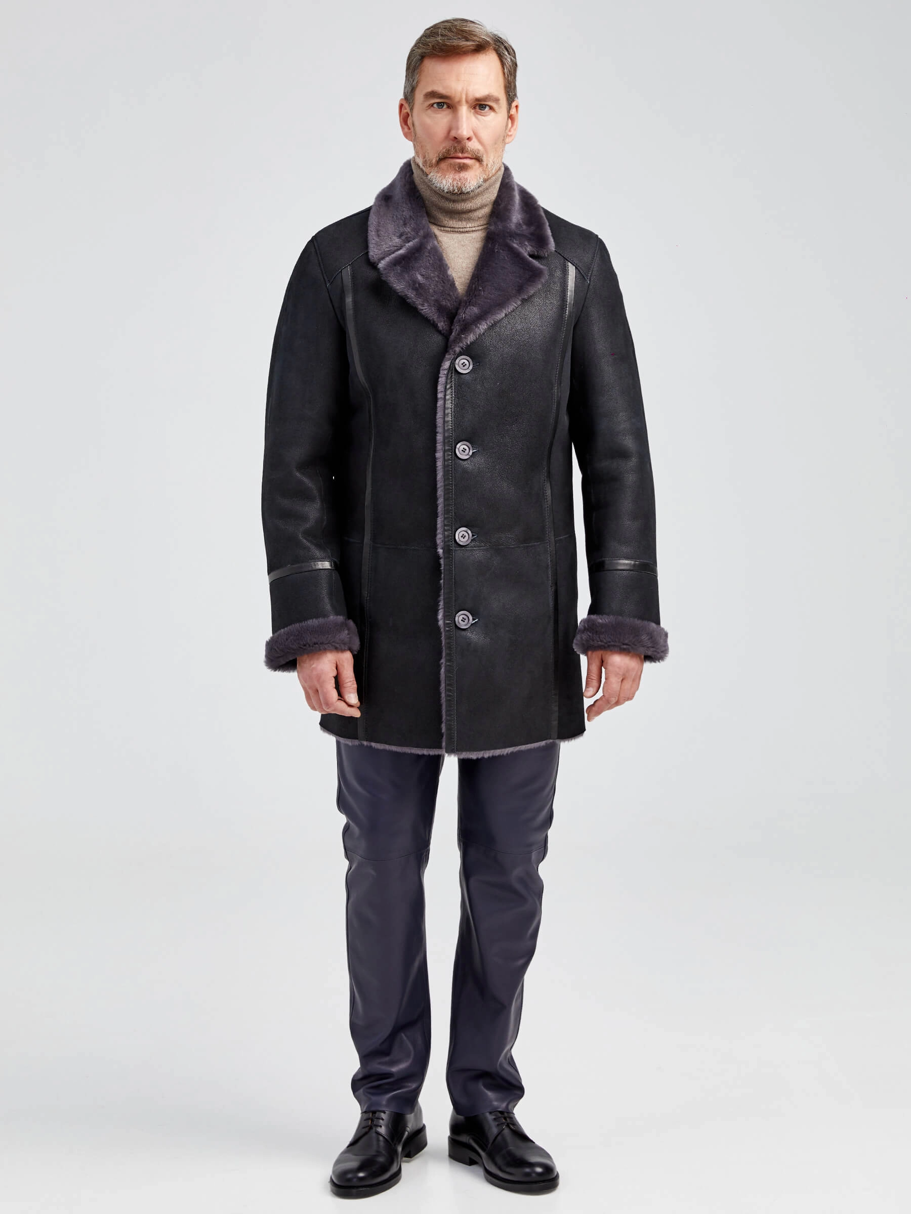 Товар дубленка классическая мужская леон, черная, размер 48, артикул 70831 выполнен из овчина "мерино" с застежкой пуговицы. Рассчитан на сезон: осень-зима. Длина изделия 88 см, силуэт прямой.
