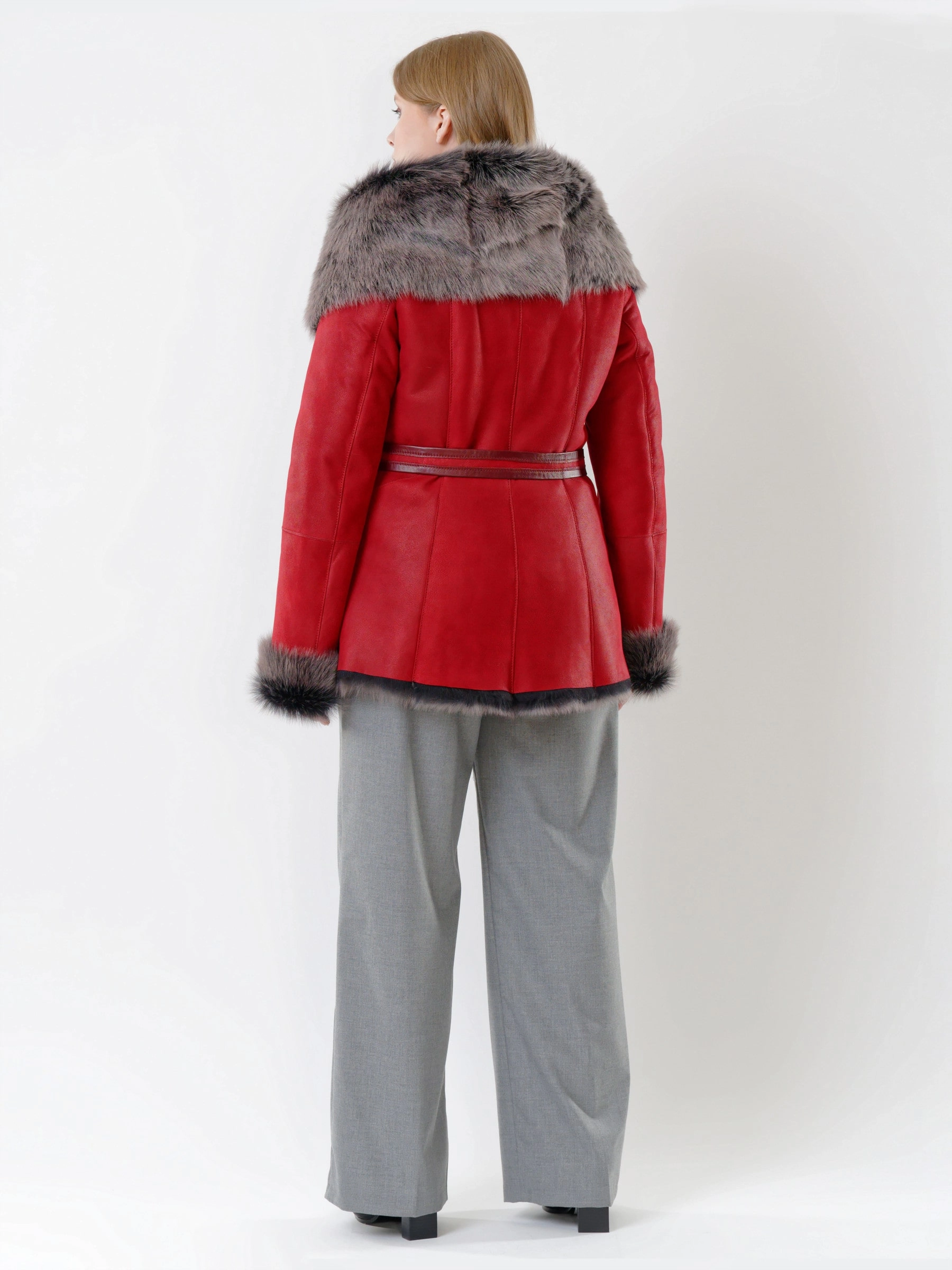 Идеальная полуприлегающая модель премиум-класса: невероятно густой мех тосканской овчины согреет в лютый мороз, а глубокий капюшон-трансформер эффектно завернёт вас в уют или элегантно ляжет шалью на плечи. Защитное покрытие убережёт от царапин, кожаная отделка карманов и борта добавит статусности, а регулируемые манжеты и боковые карманы обеспечат комфорт. Идеальная посадка по фигуре, продуманные швы и длинный пояс подчеркнут силуэт — сочетайте с джинсами, объёмными свитерами или тёмными платьями для дерзкого зимнего образа! Преимущество: короткая длина, полуприлегающий крой - это мобильность для города и элегантность для вечера.