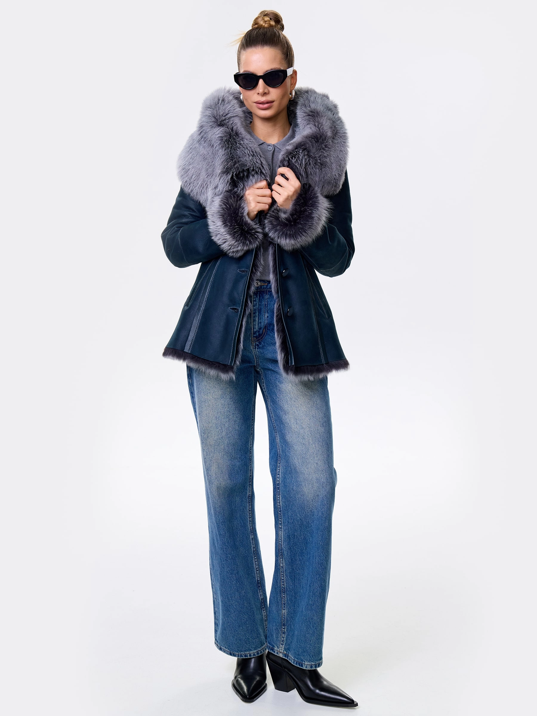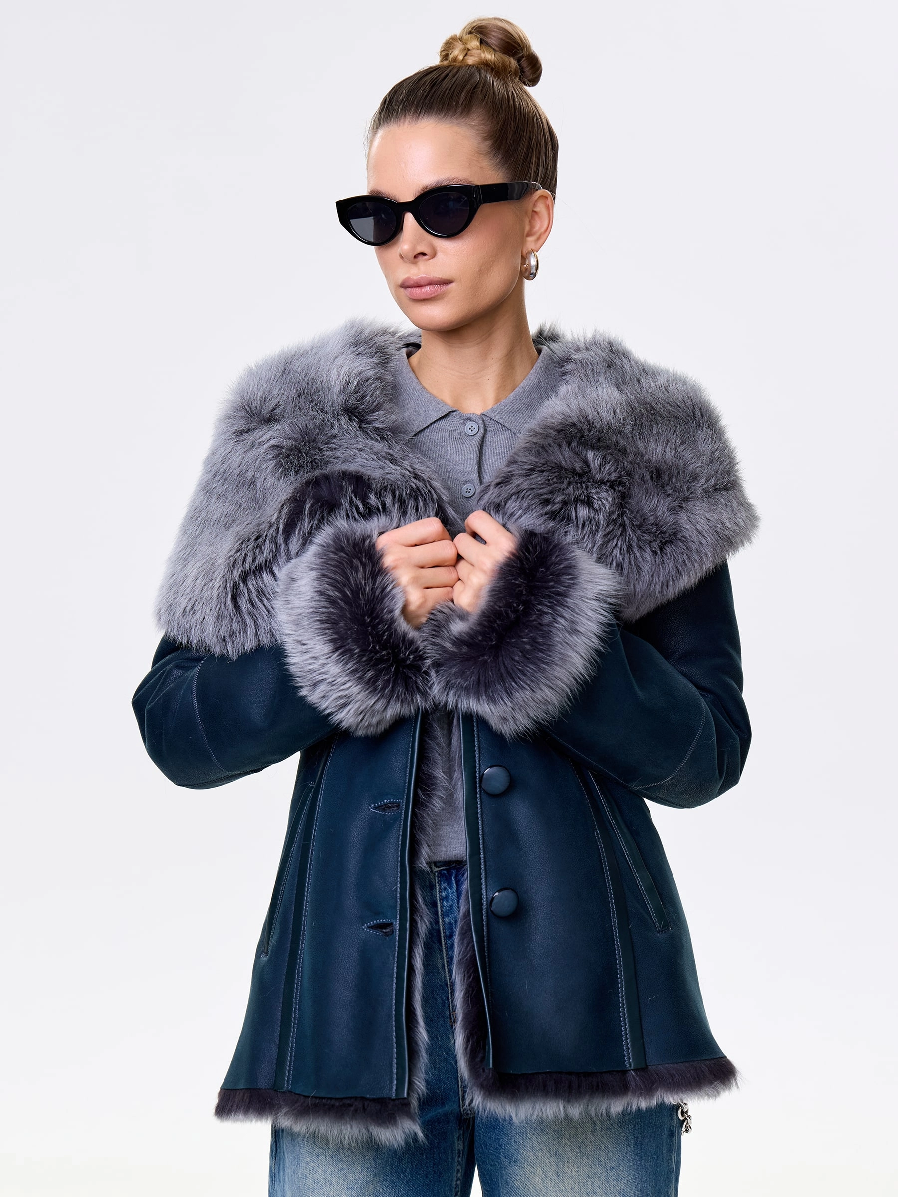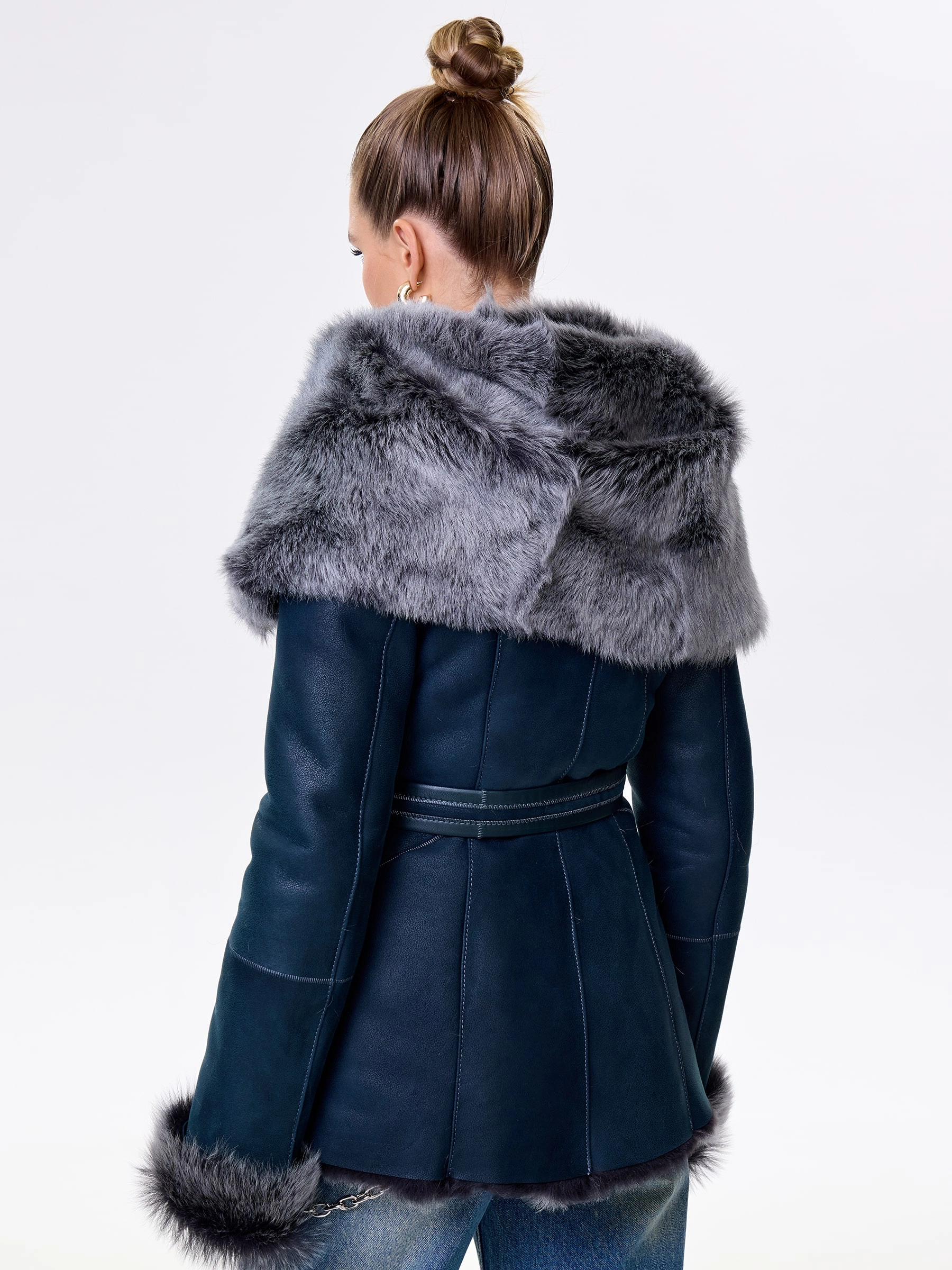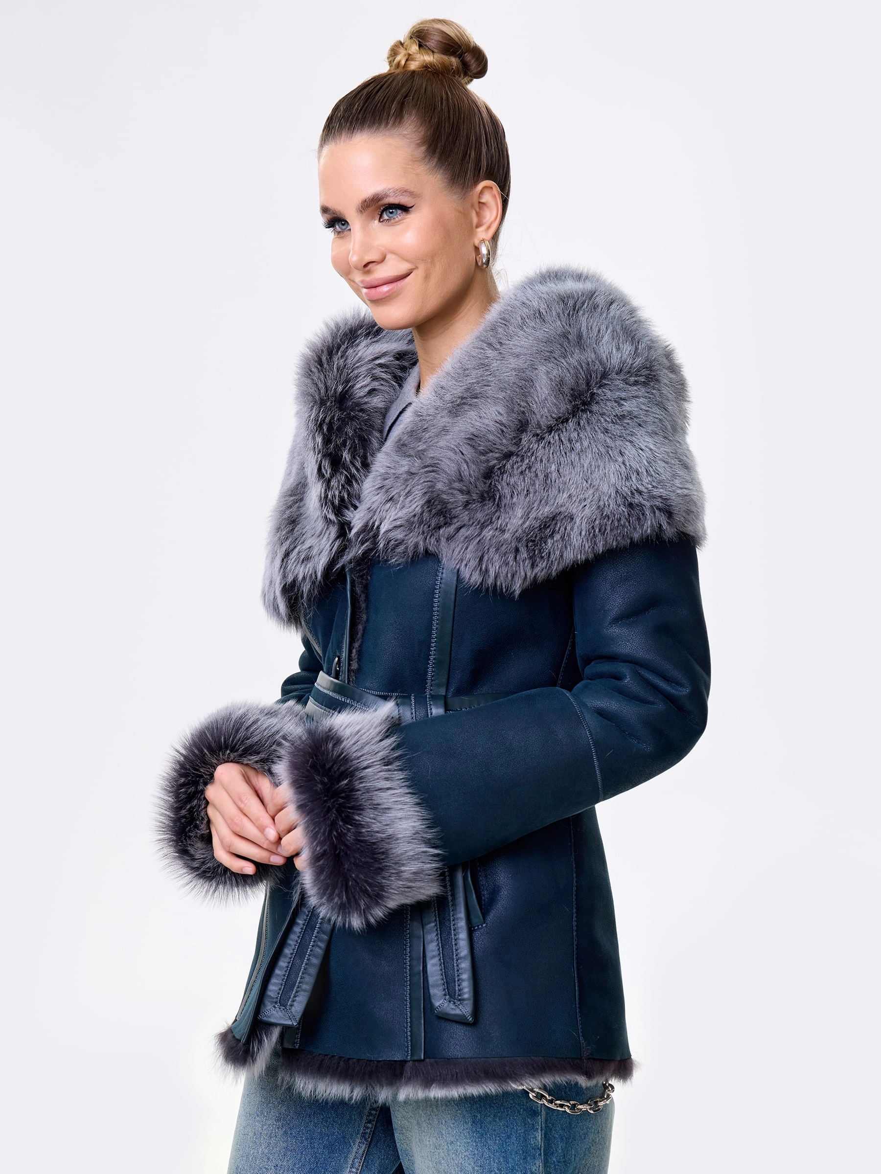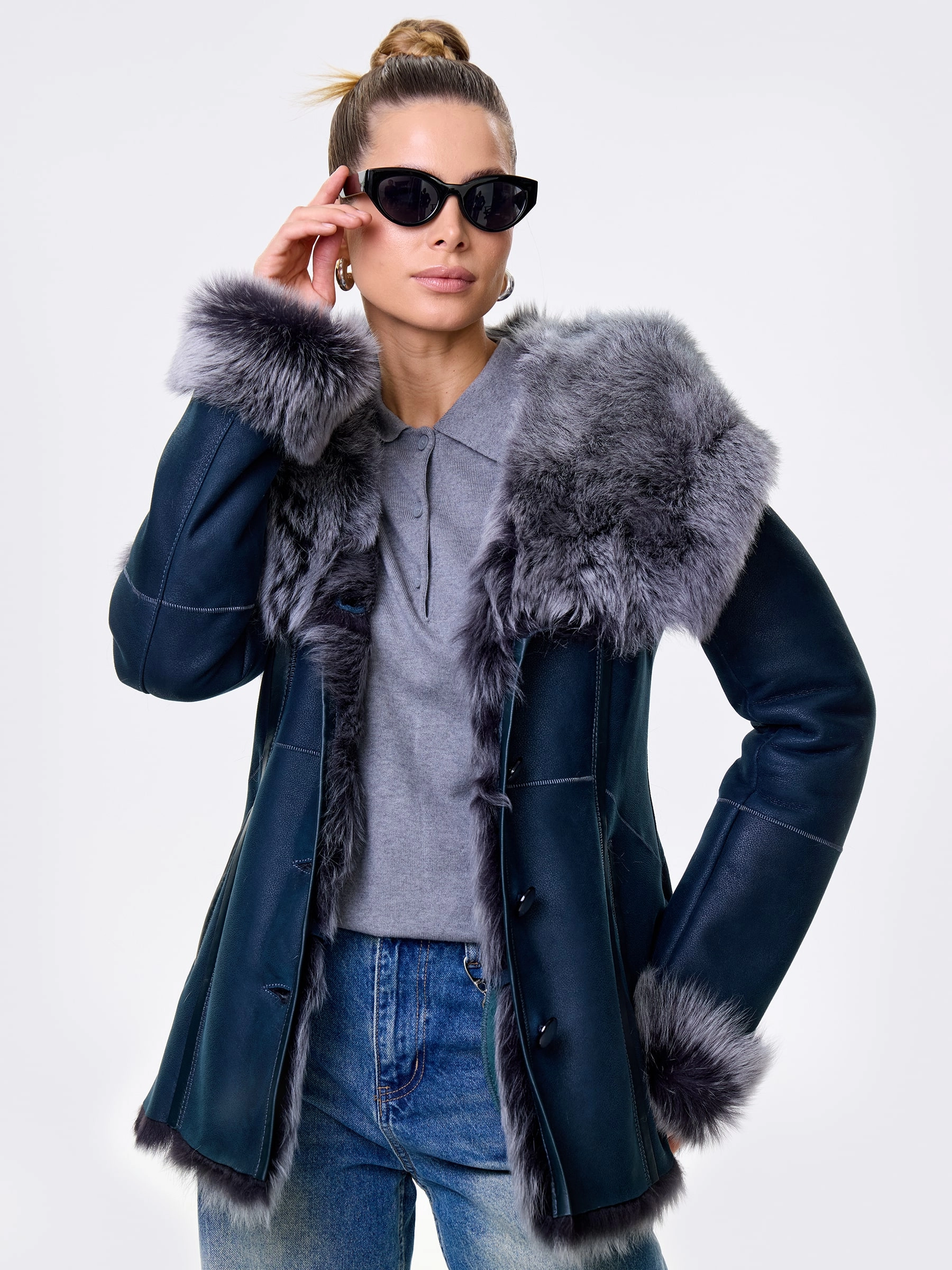 Идеальная полуприлегающая модель премиум-класса: невероятно густой мех тосканской овчины согреет в лютый мороз, а глубокий капюшон-трансформер эффектно завернёт вас в уют или элегантно ляжет шалью на плечи. Защитное покрытие убережёт от царапин, кожаная отделка карманов и борта добавит статусности, а регулируемые манжеты и боковые карманы обеспечат комфорт. Идеальная посадка по фигуре, продуманные швы и длинный пояс подчеркнут силуэт — сочетайте с джинсами, объёмными свитерами или тёмными платьями для дерзкого зимнего образа! Преимущество: короткая длина, полуприлегающий крой - это мобильность для города и элегантность для вечера.