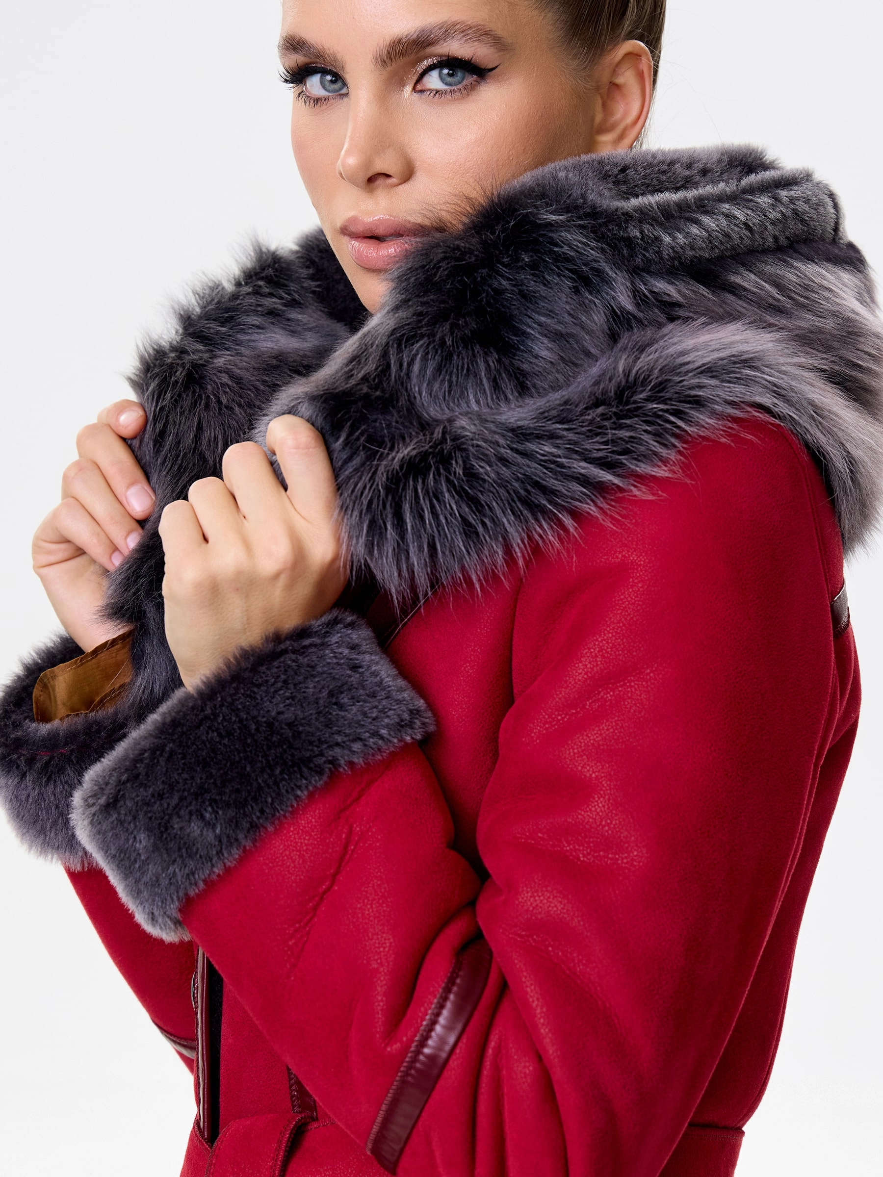 Товар женская дубленка с капюшоном из тосканы 263, красная, размер 44, артикул 61931 выполнен из овчина "мерино" с застежкой пуговицы. Рассчитан на сезон: осень-зима. Длина изделия 105 см, силуэт полуприлегающий.