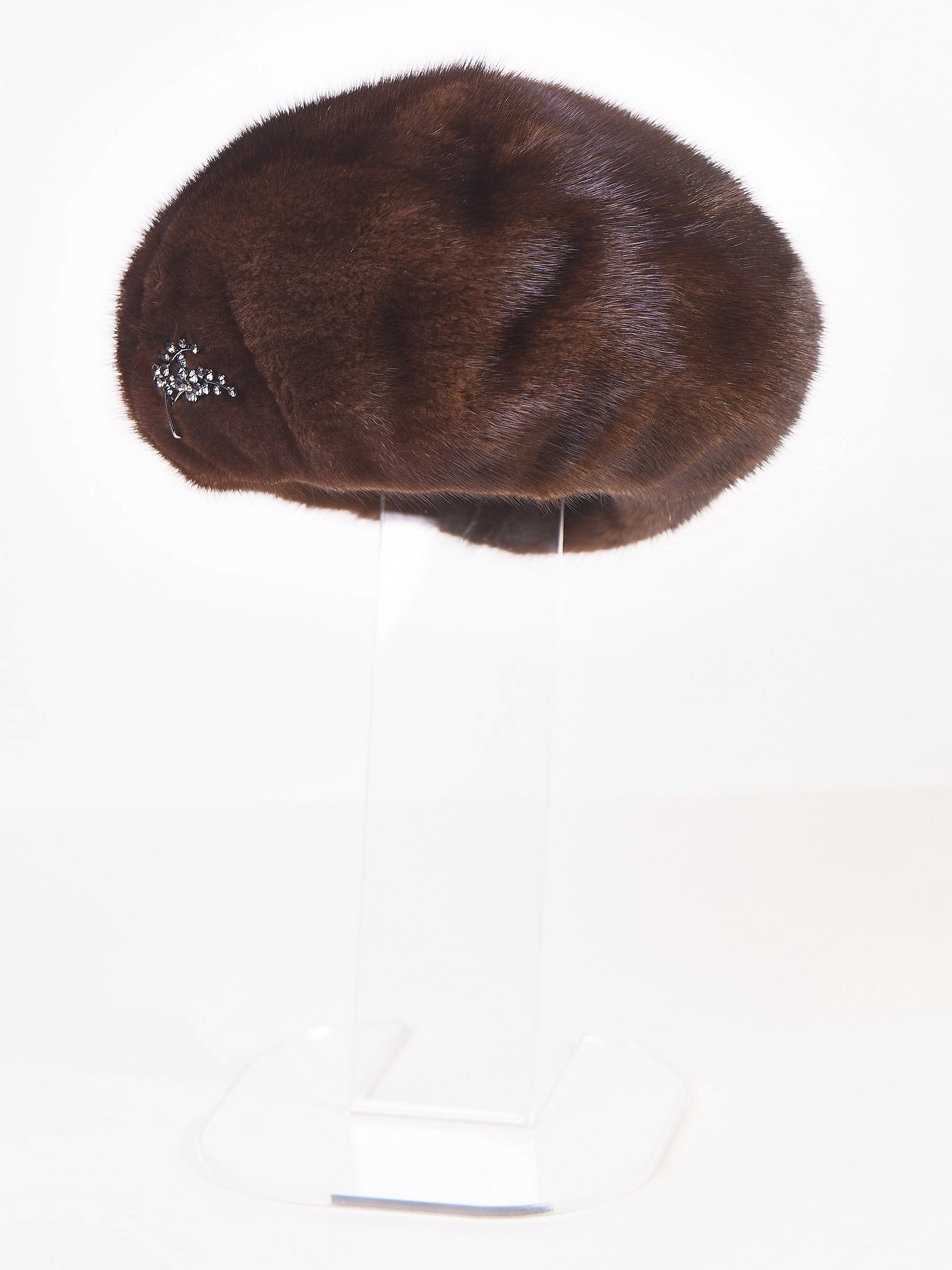 Головной убор (берет) из меха норки женский М-160, темно-коричневый, размер 58, артикул 51370
