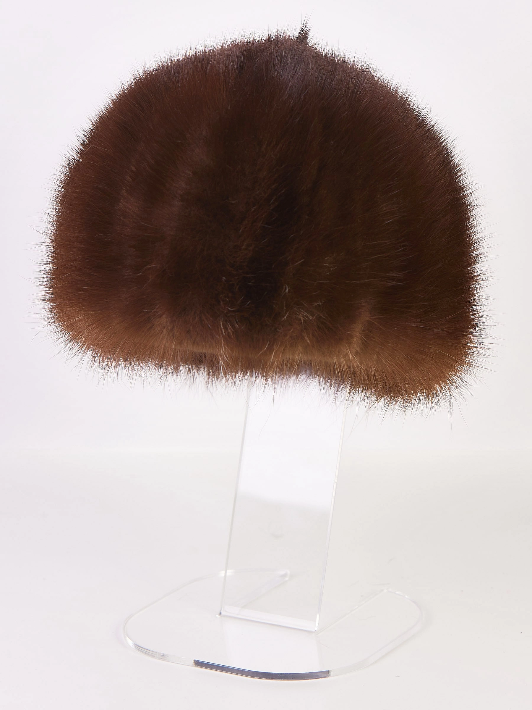 Этот женский головной убор мастера выполнили из хвостиков норки. Аксессуар получился легим и теплым. Элегантная шапочка составит компанию как шубе, так и лаконичному пальто.
