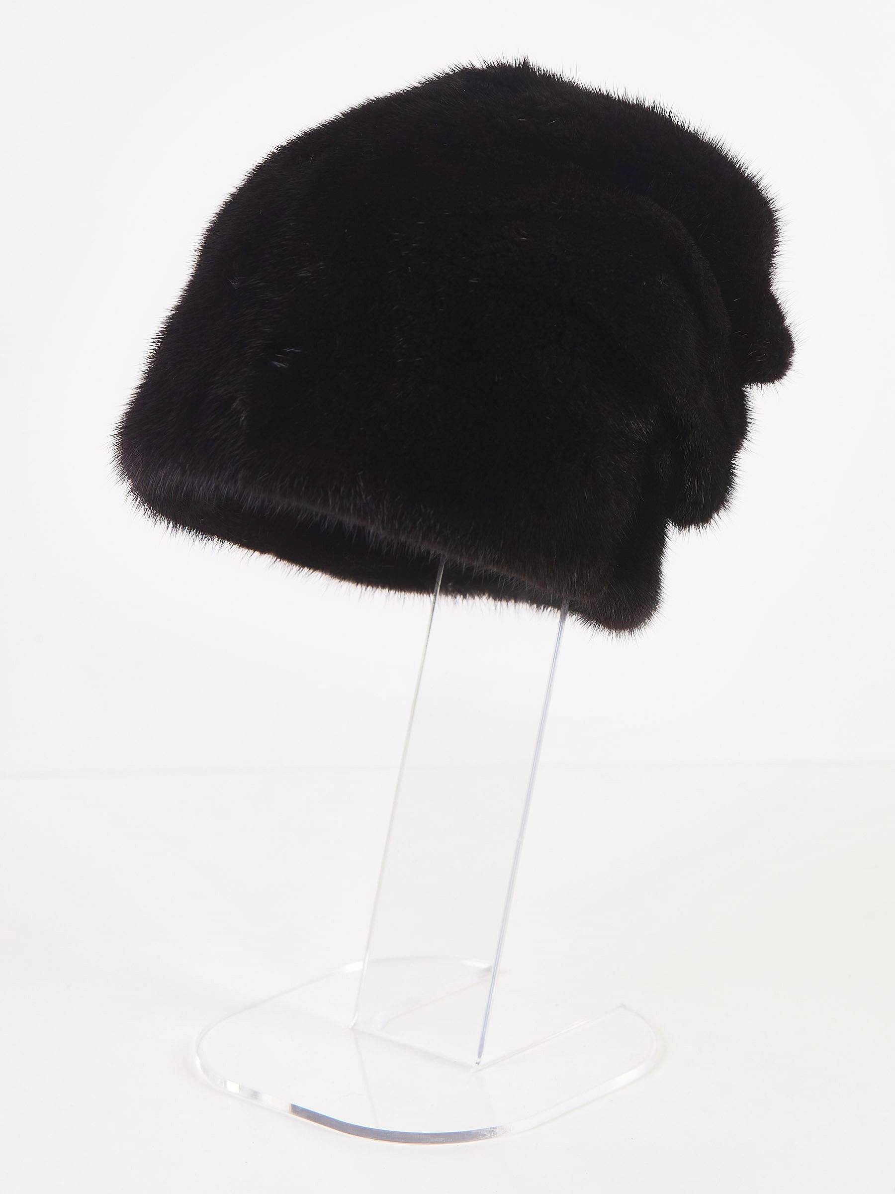 Современная и стильная модель выполнена из черной густой норки. Комфортная, глубокая посадка. Затылочная часть присборена широкими складками напоминая косынку. Великолепное сочетание с любой верхней одеждой.
