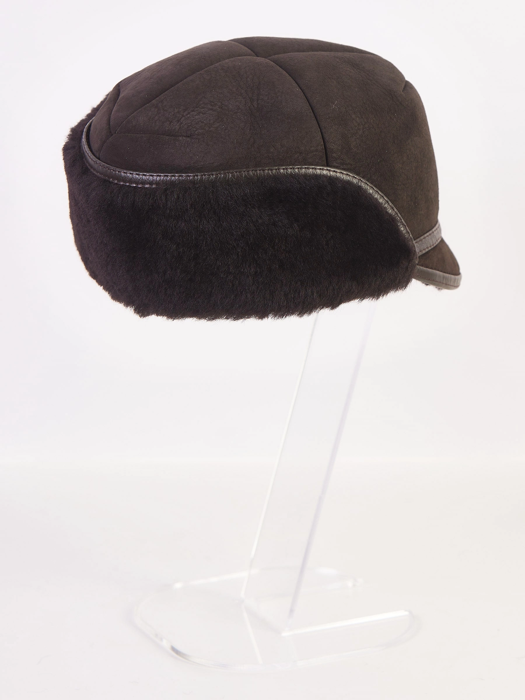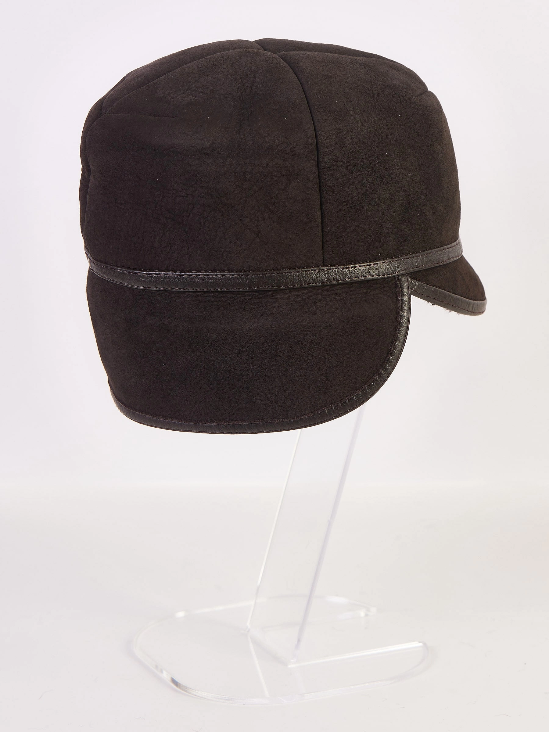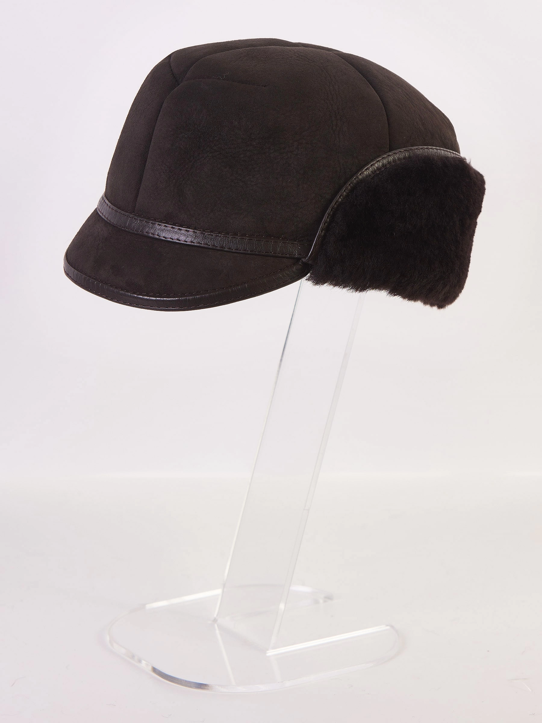 Модель с небольшим козырьком и широким меховым отворотом. Отделка из натуральной кожи. Ветрозащитный отворот при необходимости хорошо закрывает уши и шею. Подкладка - натуральная овчина. Изделие практичное, легкое и очень теплое.