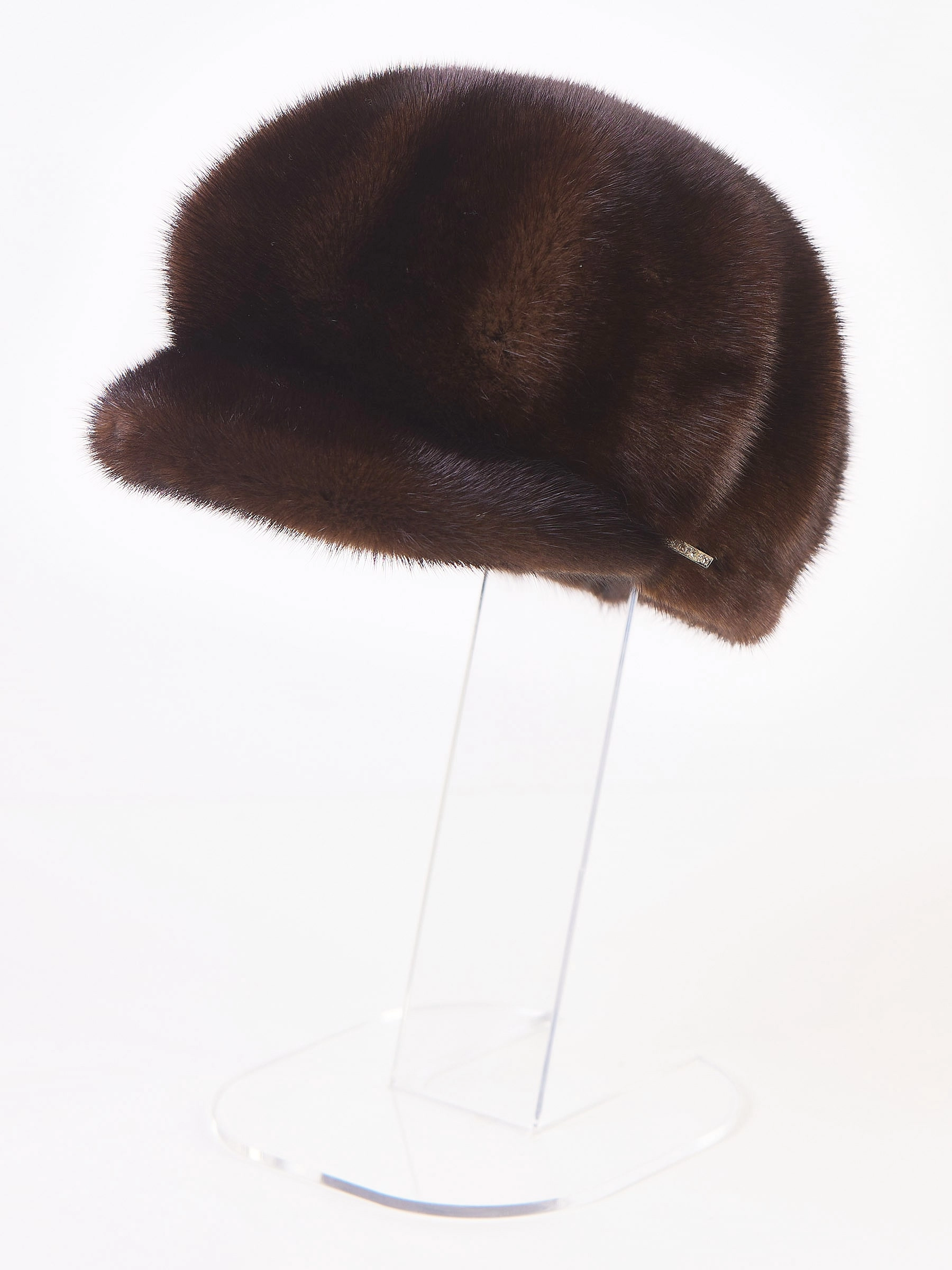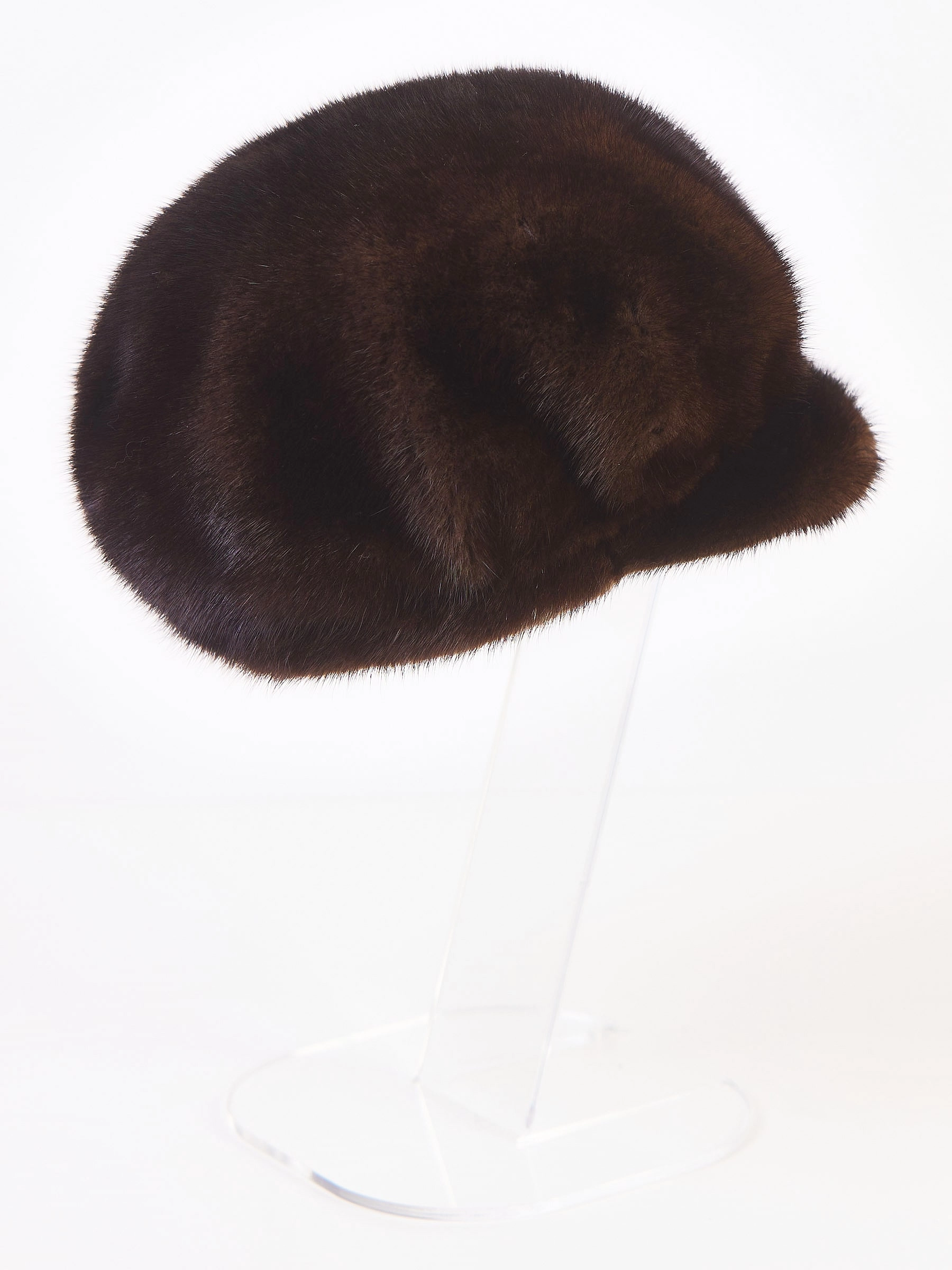 Головной убор (кепи) из меха норки женский М-128, темно-коричневый, размер 58, артикул 51630