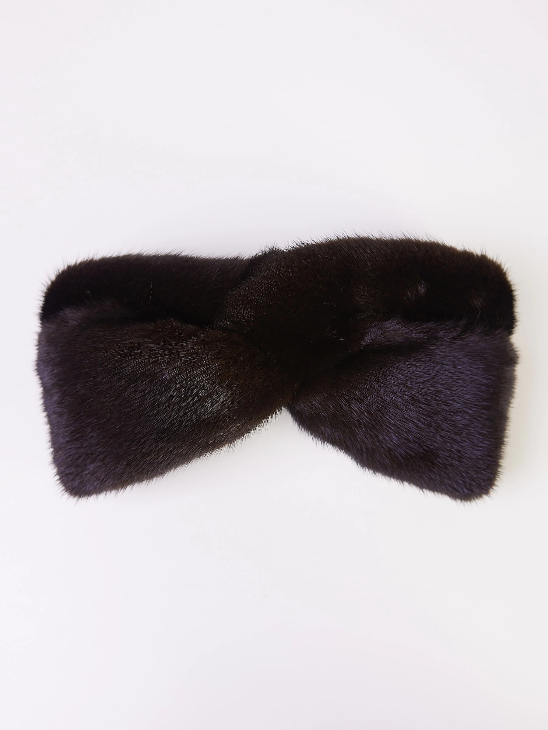 Широкая повязка на голову. Выполнена из нежной и густой норки. Внутренняя из замши. Отлично сохраняет тепло и обеспечивает комфорт в холодную погоду. Спереди модель дополнили перемычкой, создающей эффект чалмы.