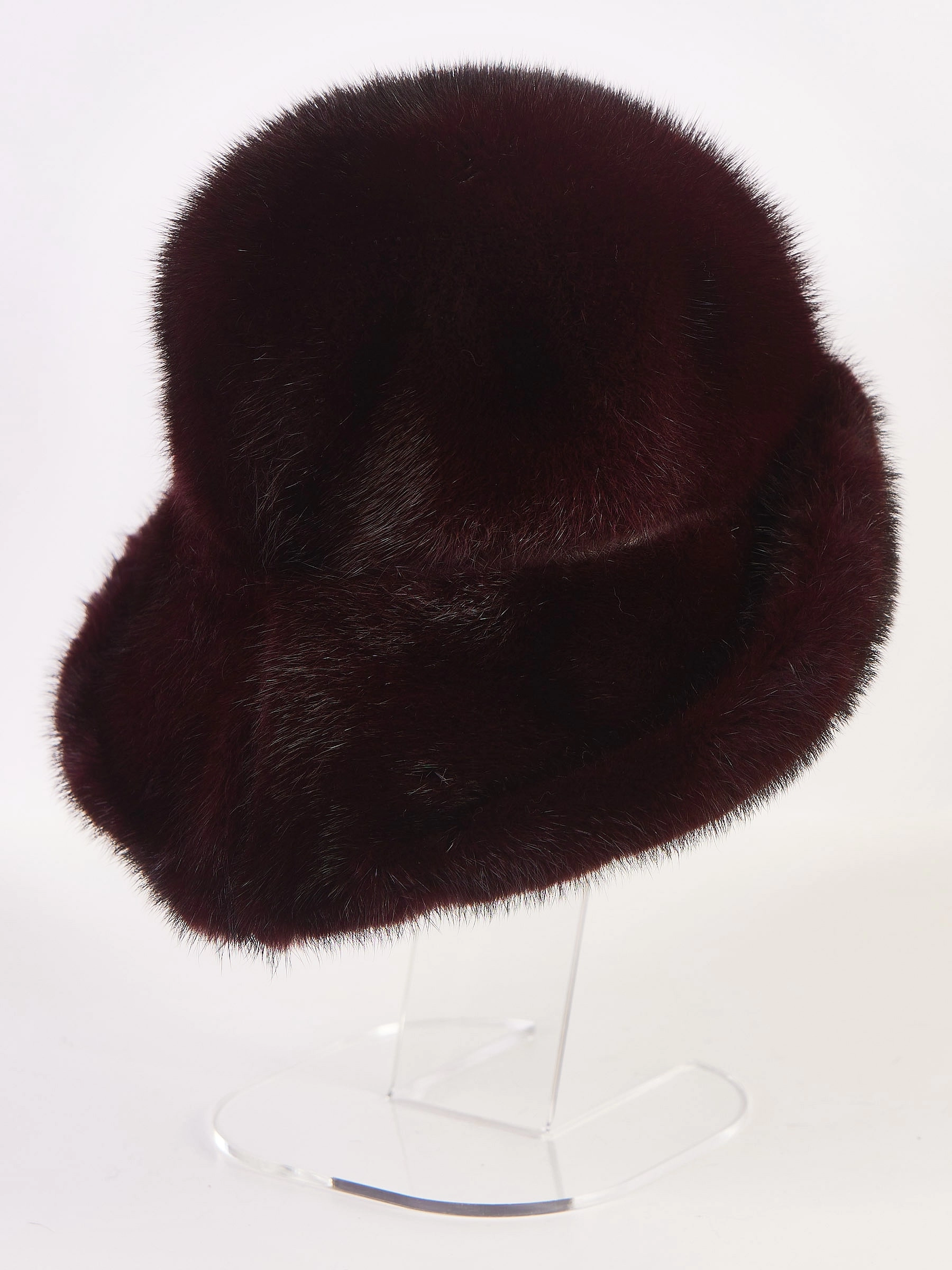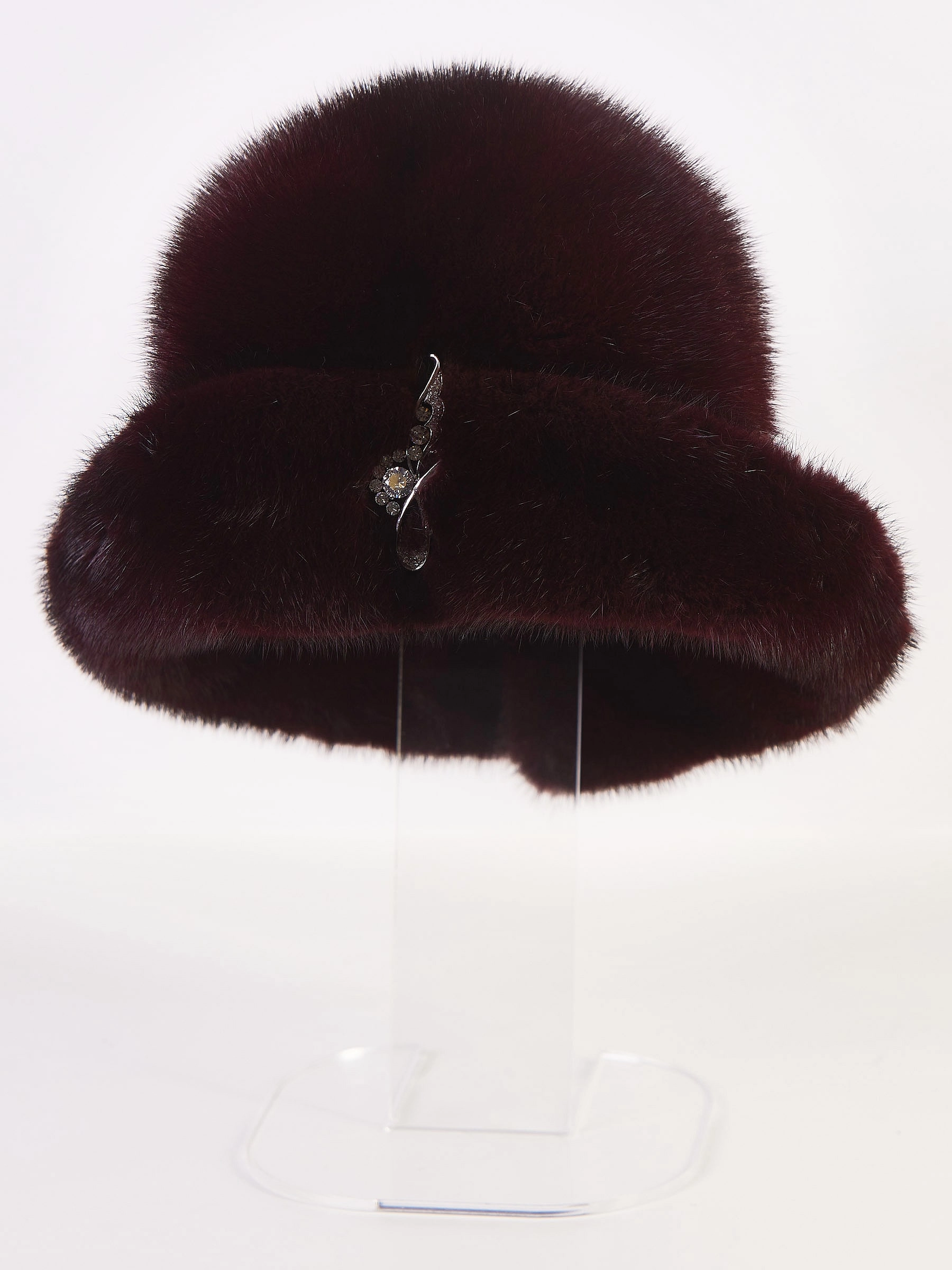 Товар головной убор (шляпа) из меха норки женский шармель, бордовый, размер 58, артикул 51605 выполнен из норка крашенной. Рассчитан на сезон: зима.