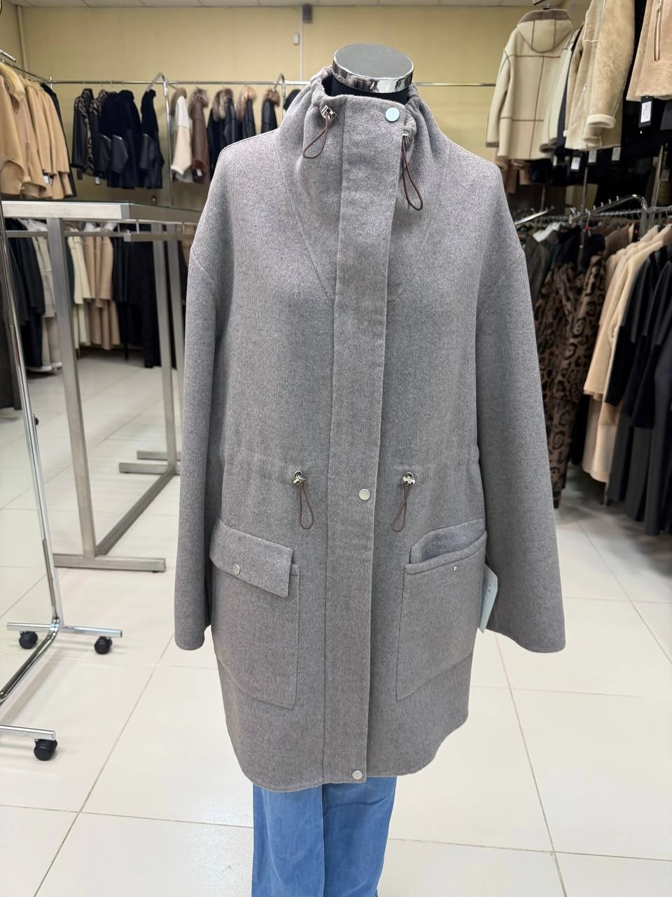 Товар кашемировое женское полупальто 1133-95, серо-коричневое, размер 46, артикул 92580.