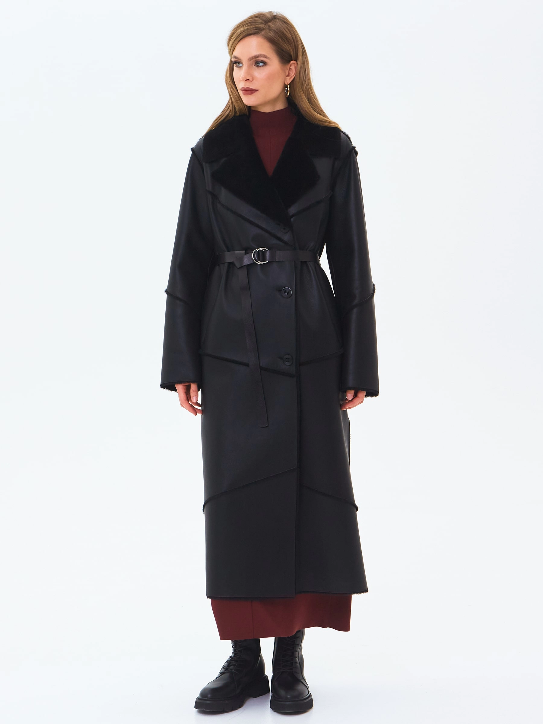 Товар классическое женское пальто из натуральной овчины премиум класса 2054, черное, размер 48, артикул 64390 выполнен из овчина "мерино" с застежкой пояс. Рассчитан на сезон: осень-зима. Длина изделия 125 см, силуэт прямой.