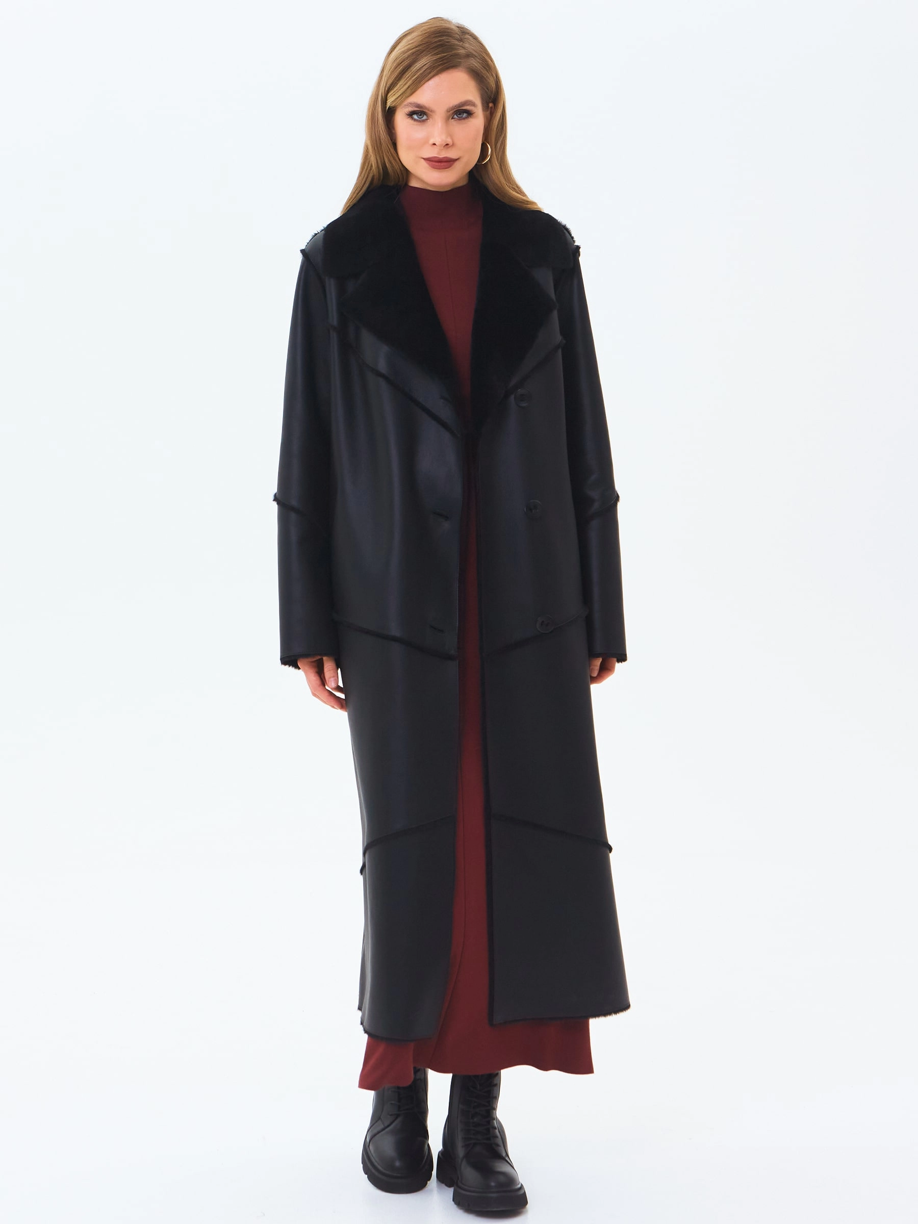 Классическое женское пальто из натуральной овчины премиум класса 2054, черное, размер 48, артикул 64390