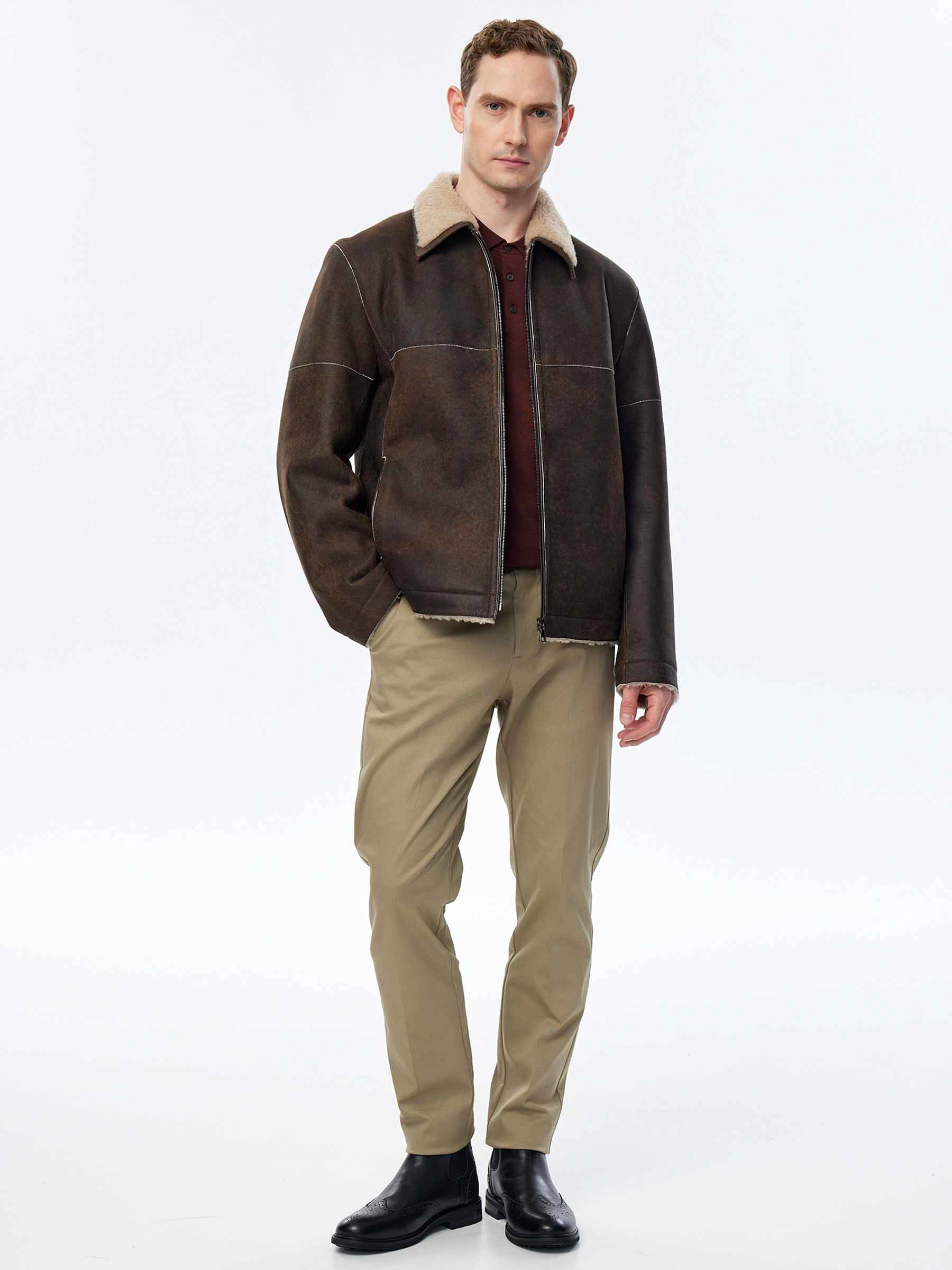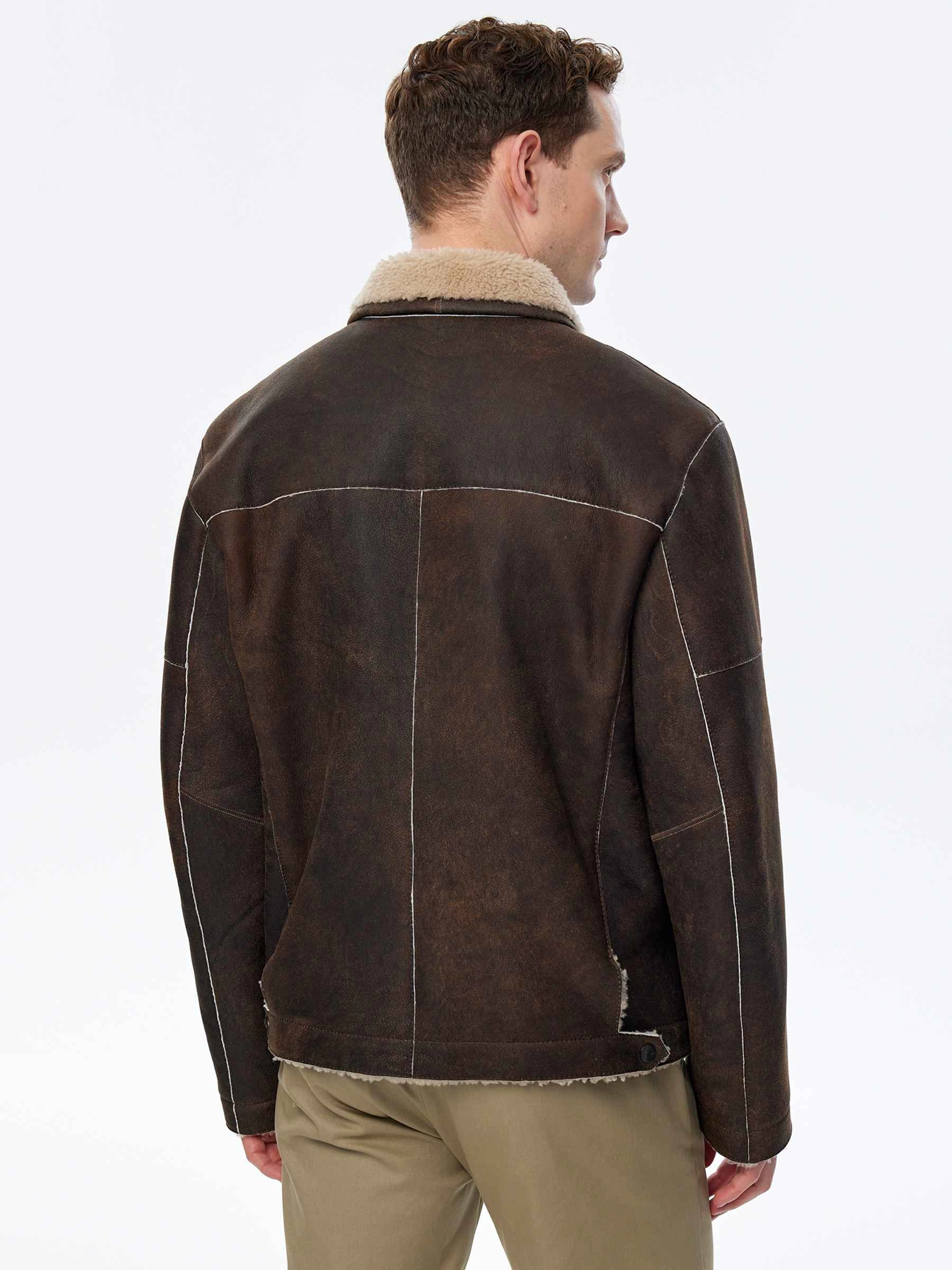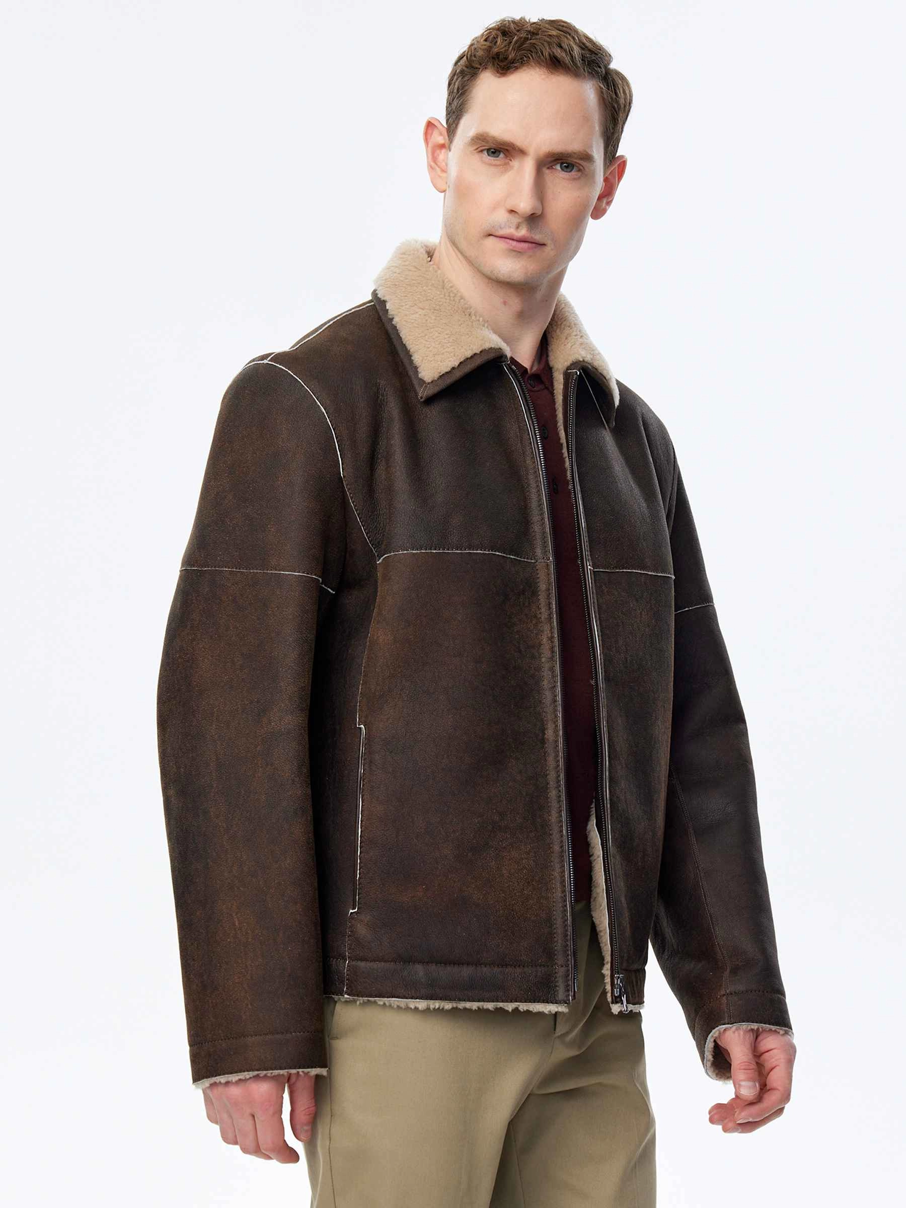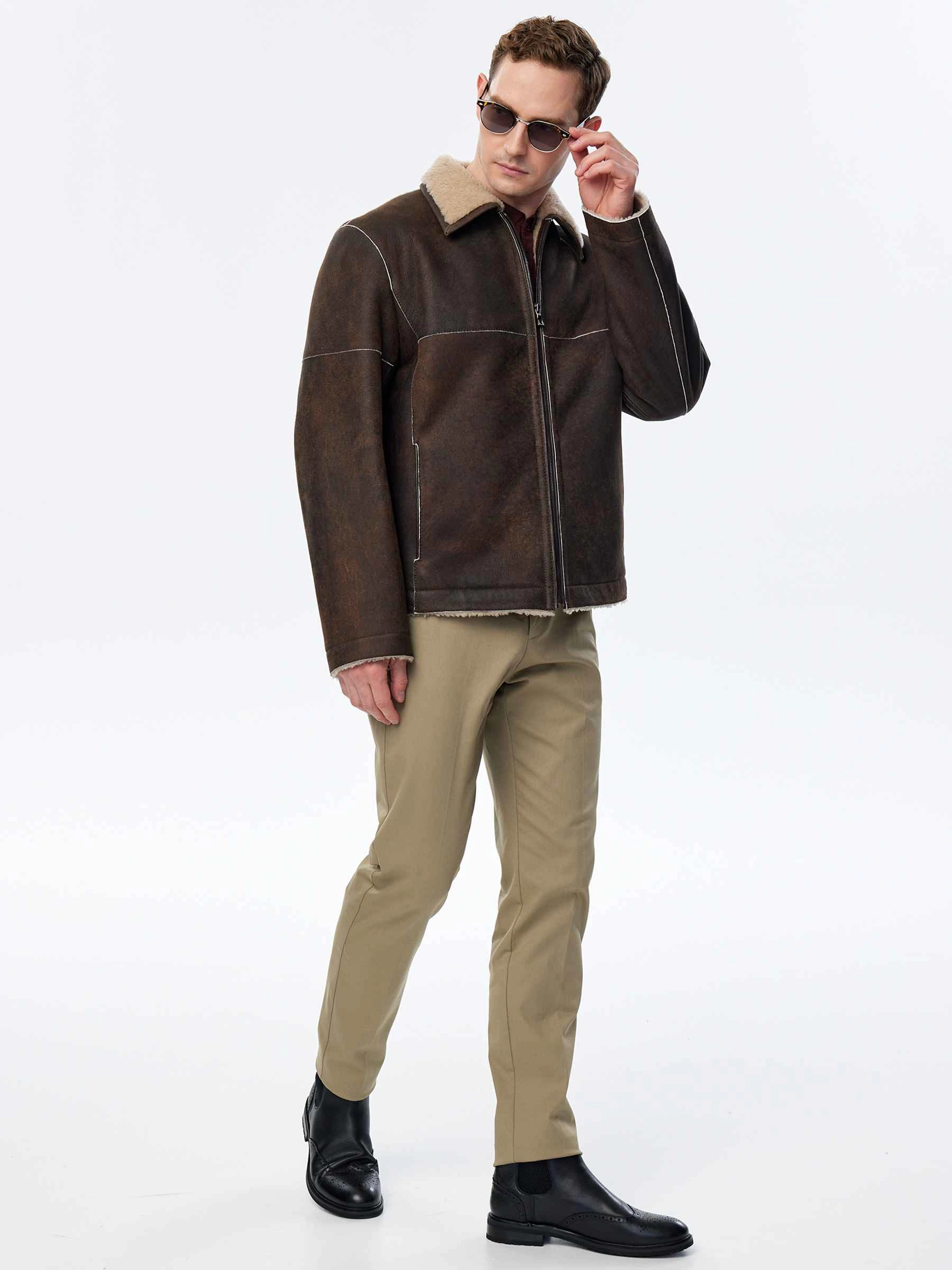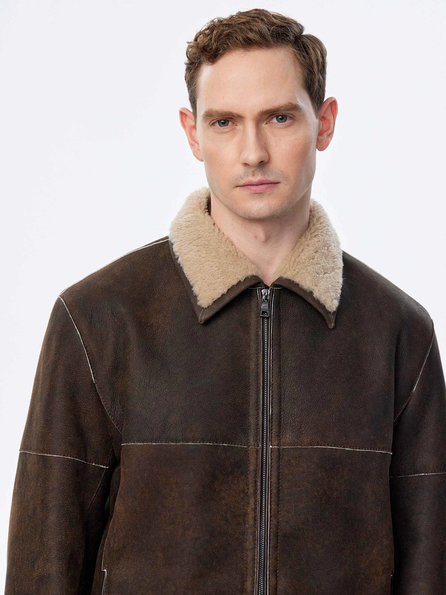 Товар короткая дубленка из овчины керли премиум класса для мужчин 140, коричневая, размер 52, артикул 71510 выполнен из овчина "керли" с застежкой молния. Рассчитан на сезон: осень-зима. Длина изделия 70 см, силуэт прямой.