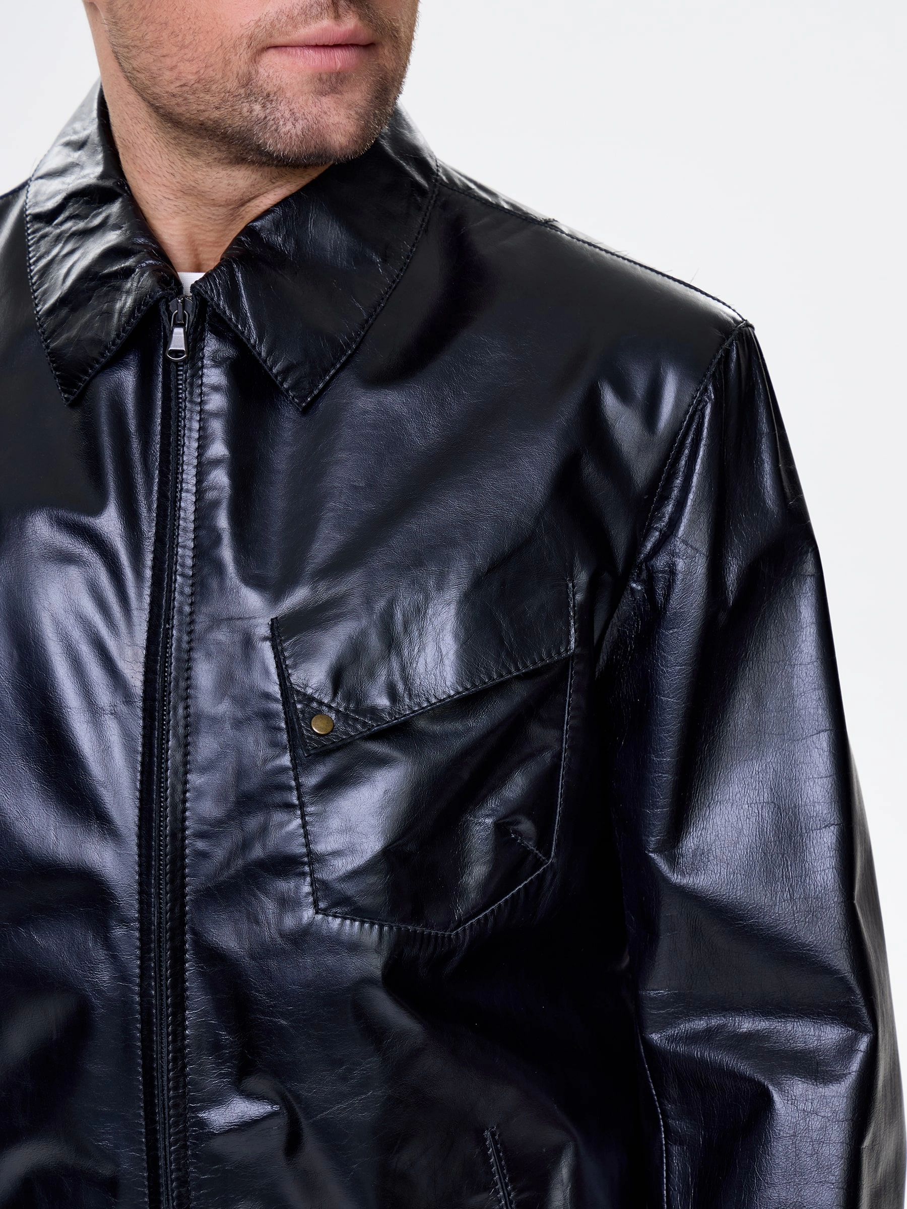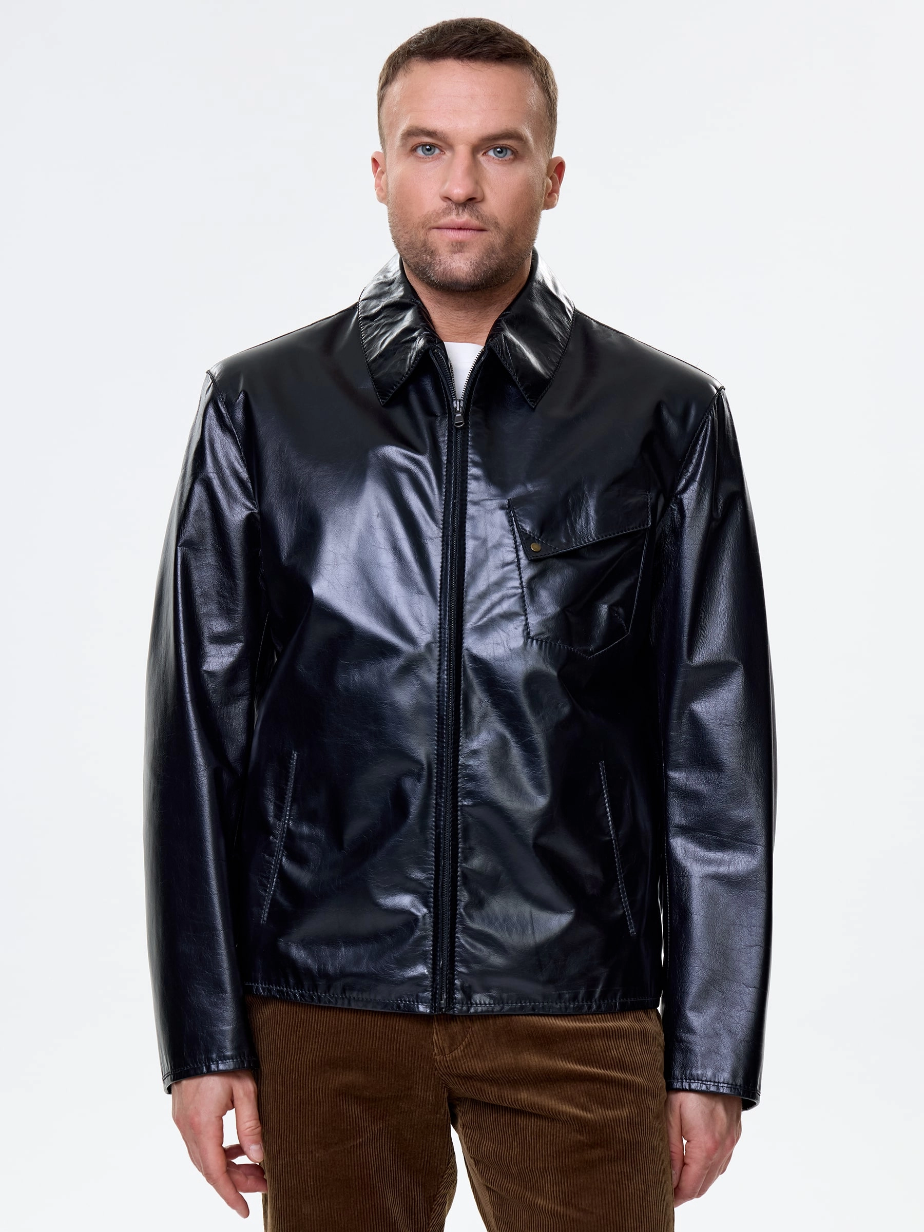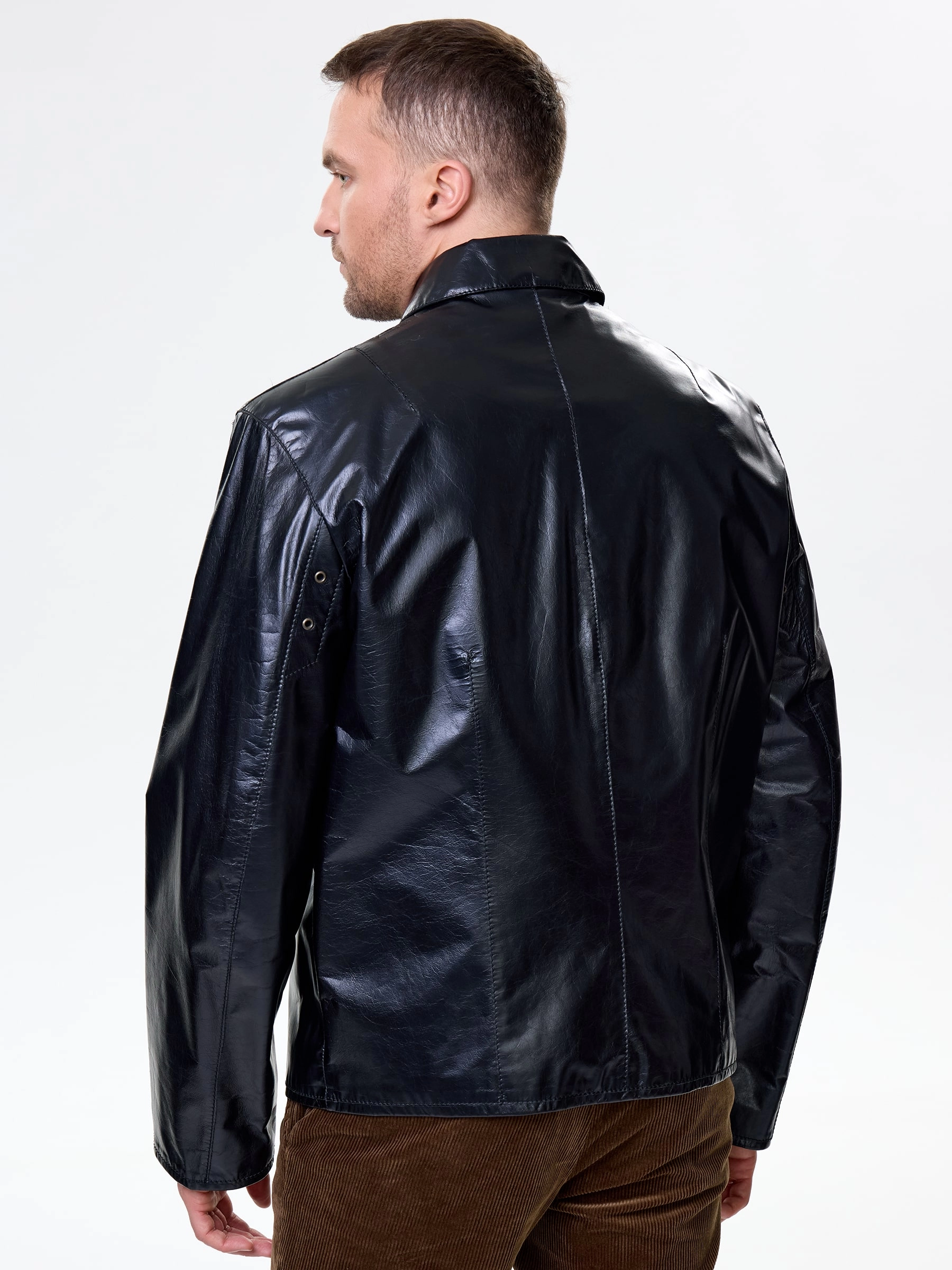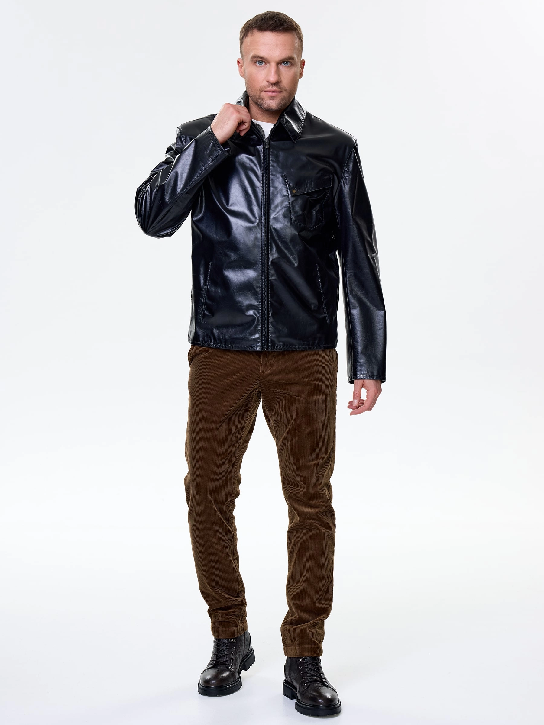 Короткая мужская кожаная куртка 19, черная, размер 50, артикул 41150