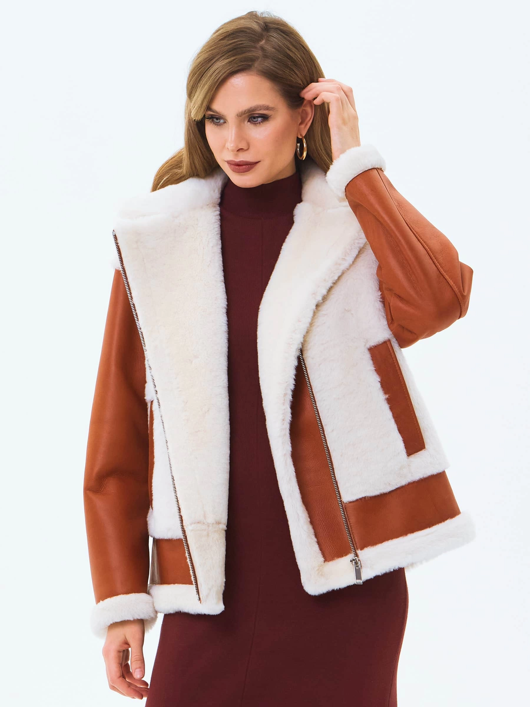 Товар короткая женская дубленка из натуральной овчины премиум класса 2066, виски, размер 44, артикул 64710 выполнен из овчина "мерино" с застежкой молния. Рассчитан на сезон: зима. Длина изделия 67 см, силуэт свободный.